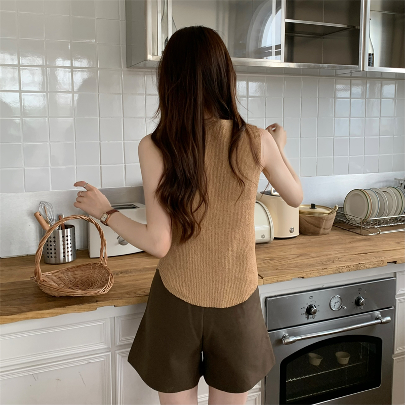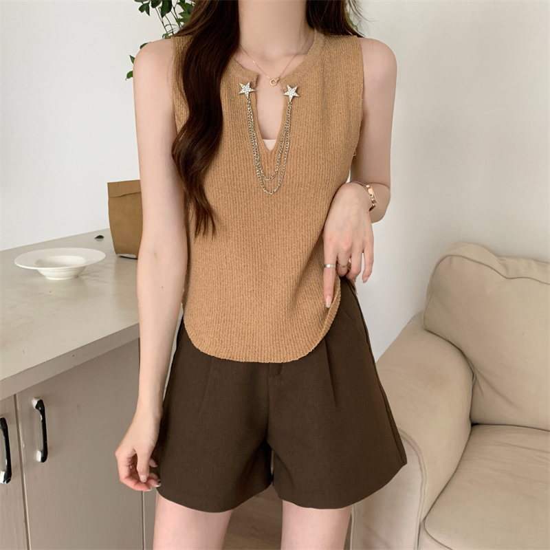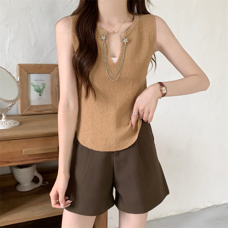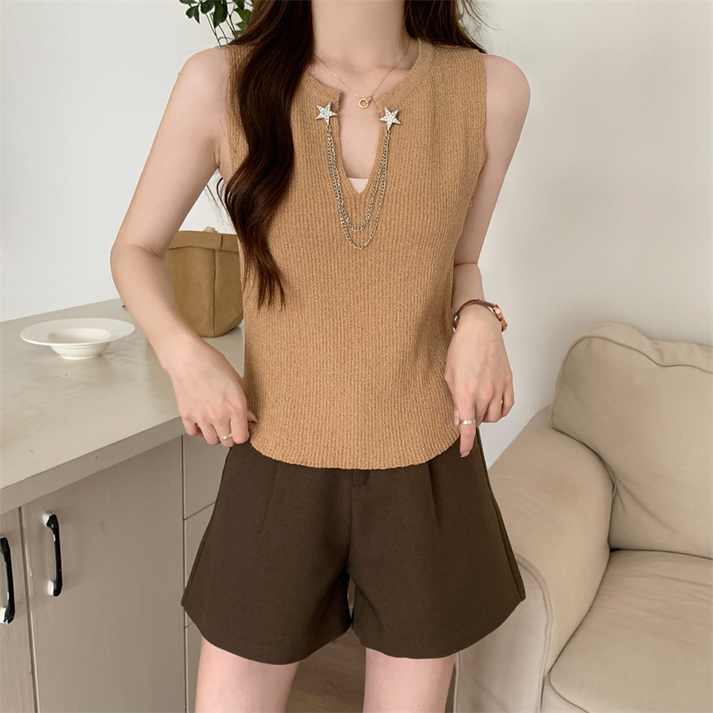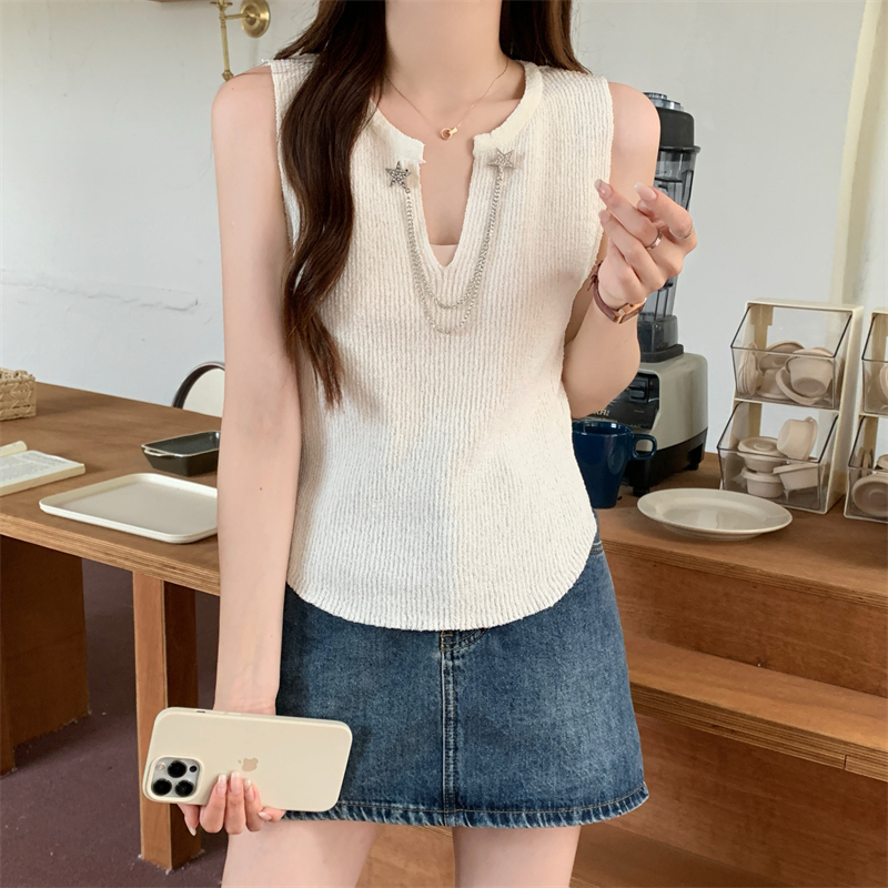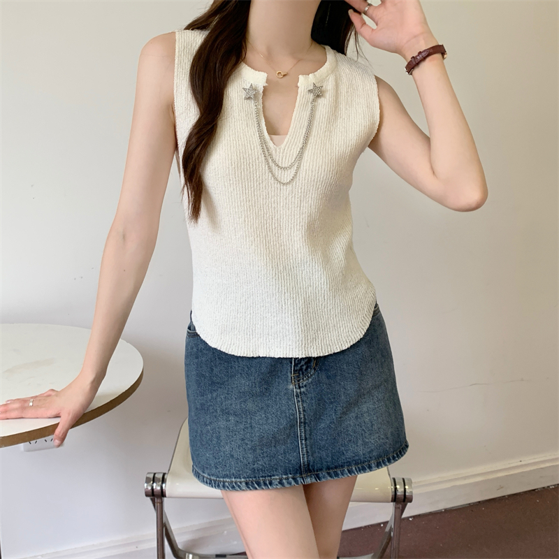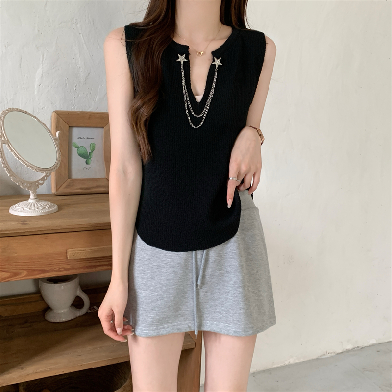 PF969#韩版小众链条设计感休闲纯色无袖背心短款针织上衣女