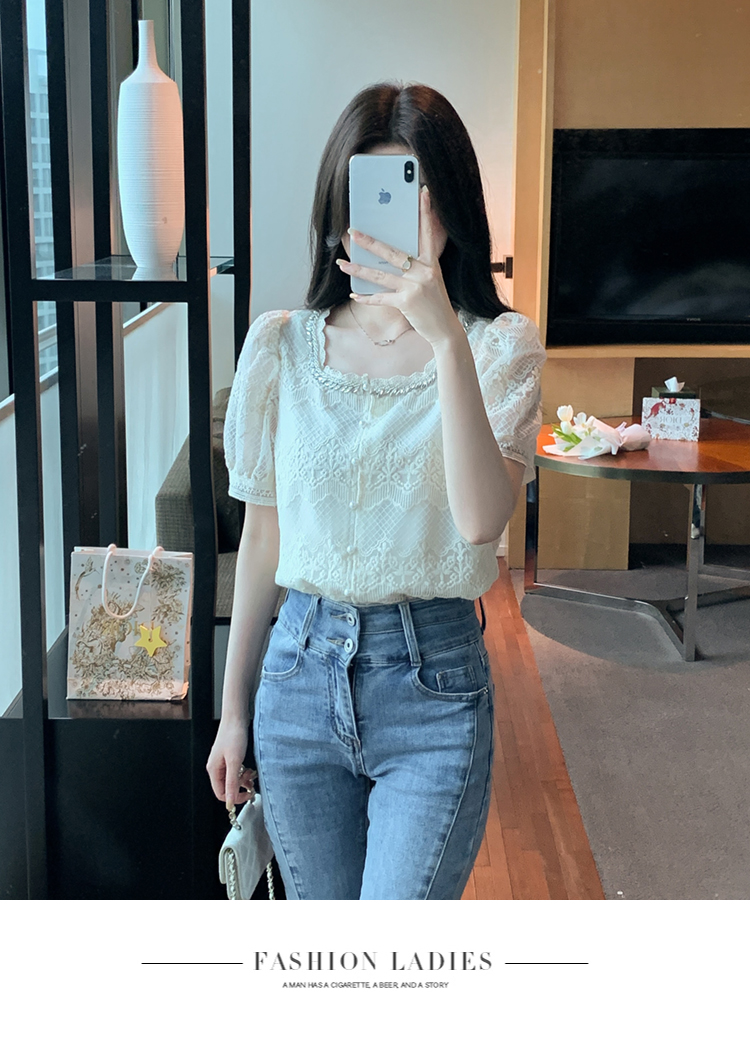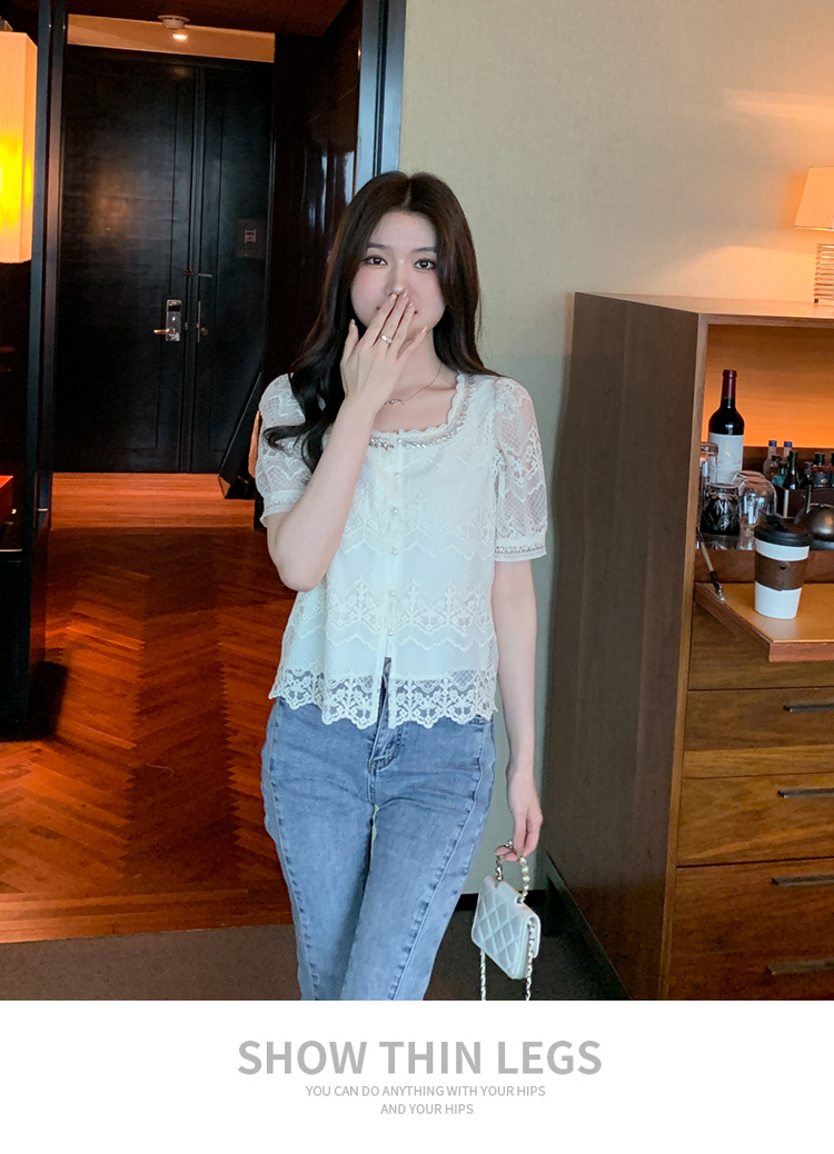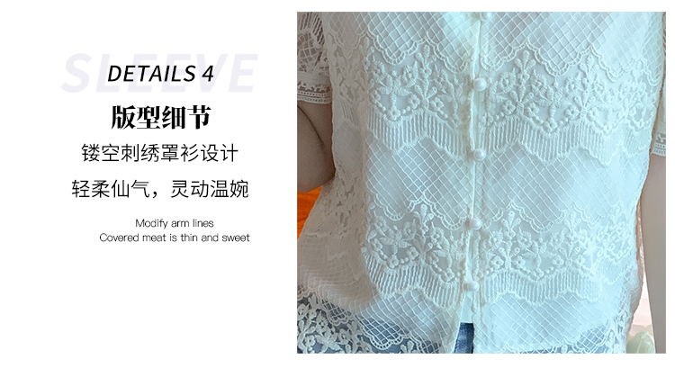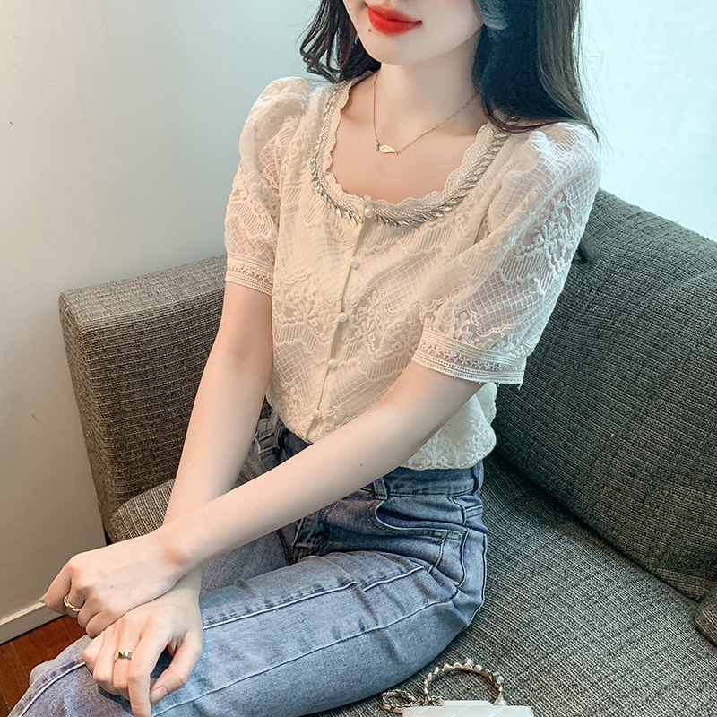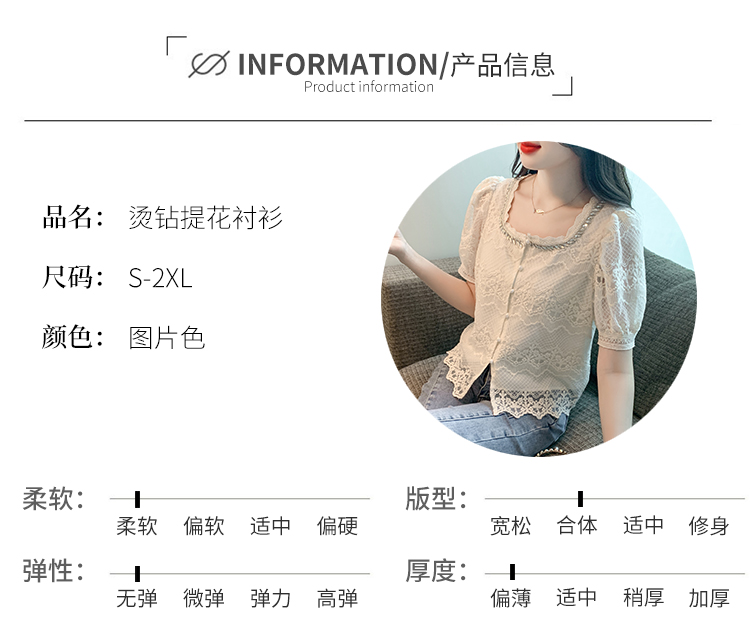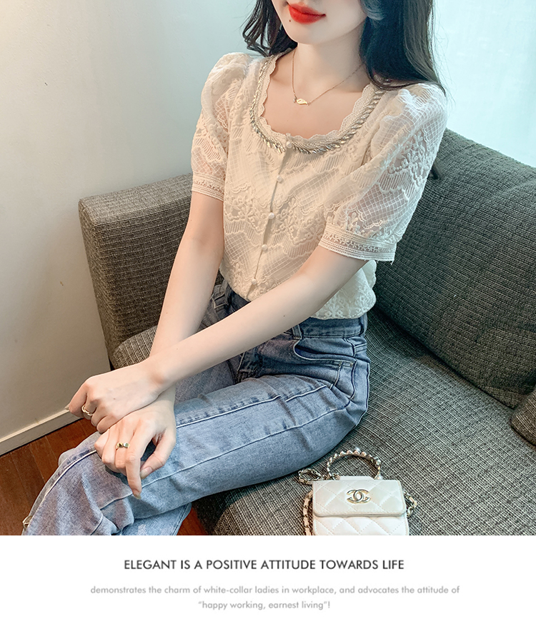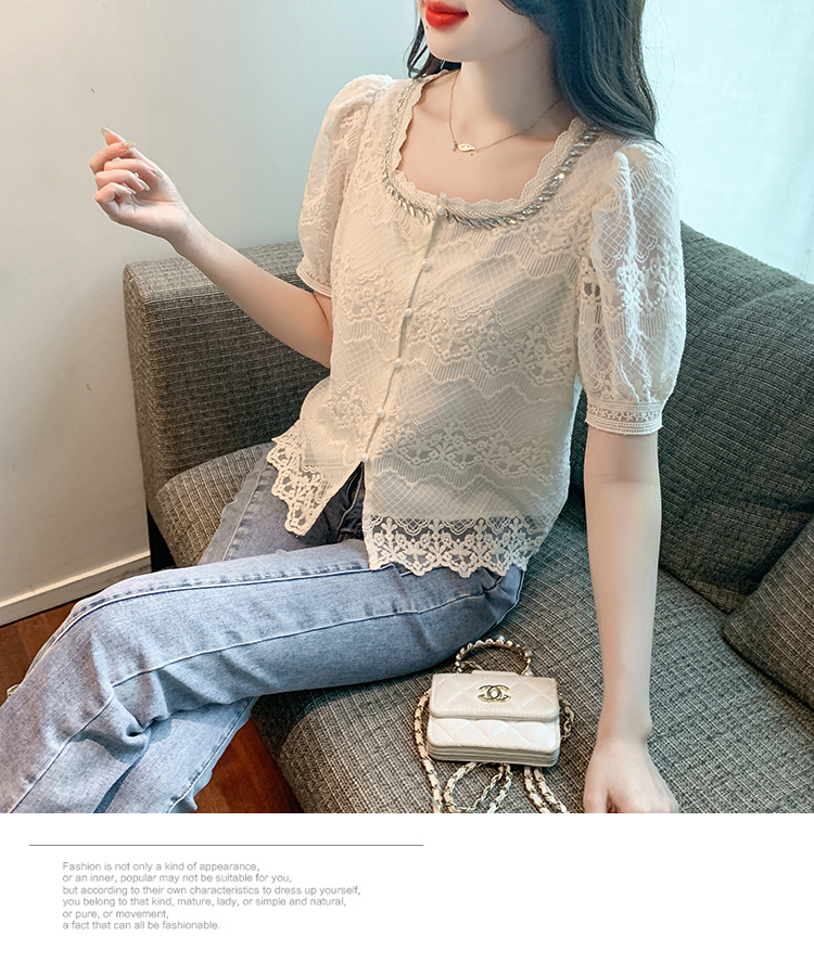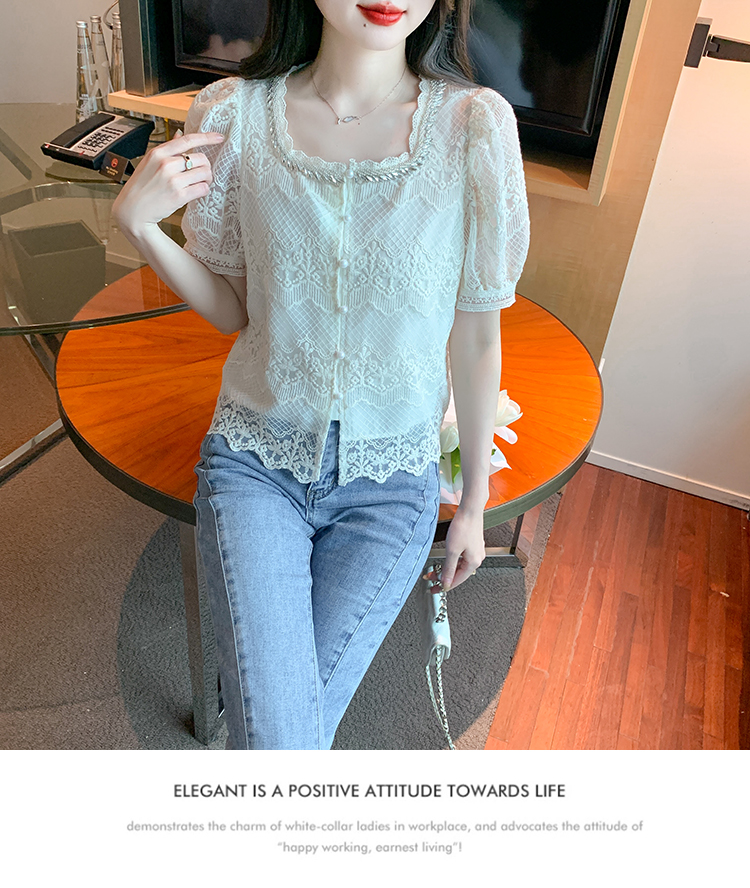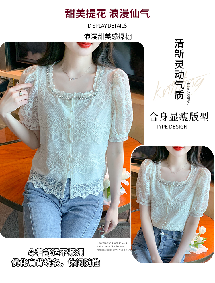 PF1001#夏季新款单排扣淑女蕾丝衫/衫标准方领短袖H型雪纺蕾丝衫/