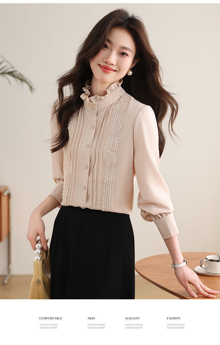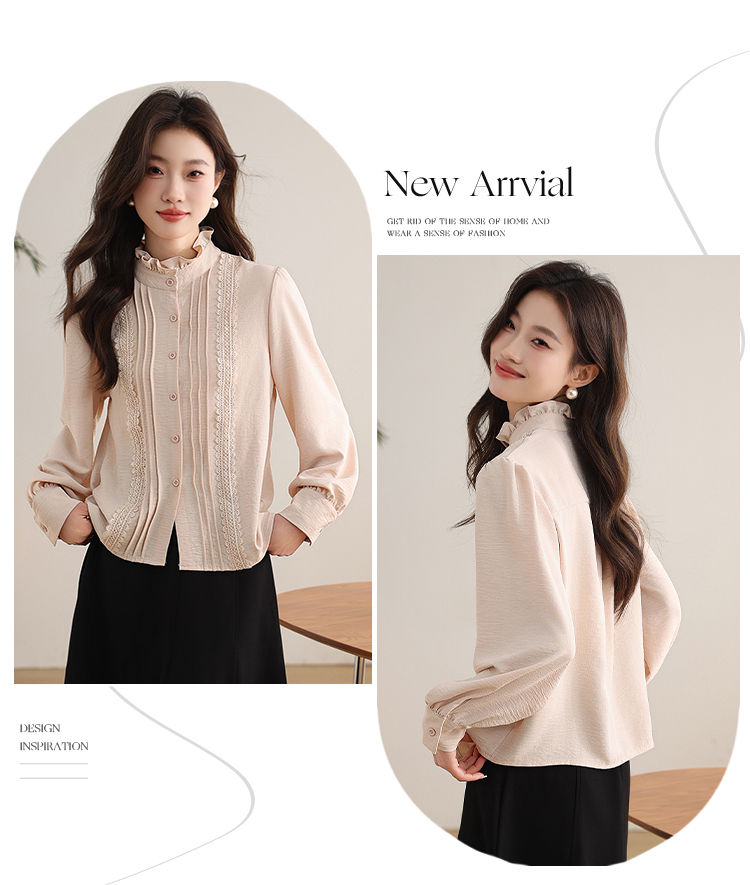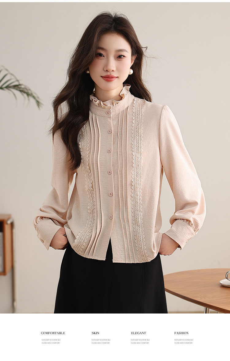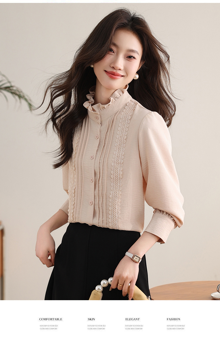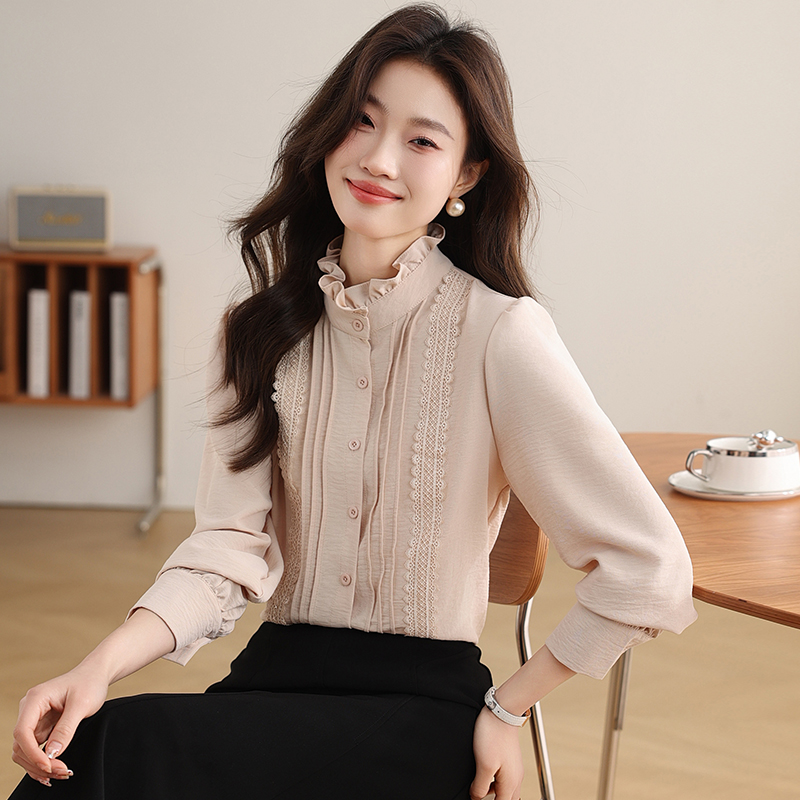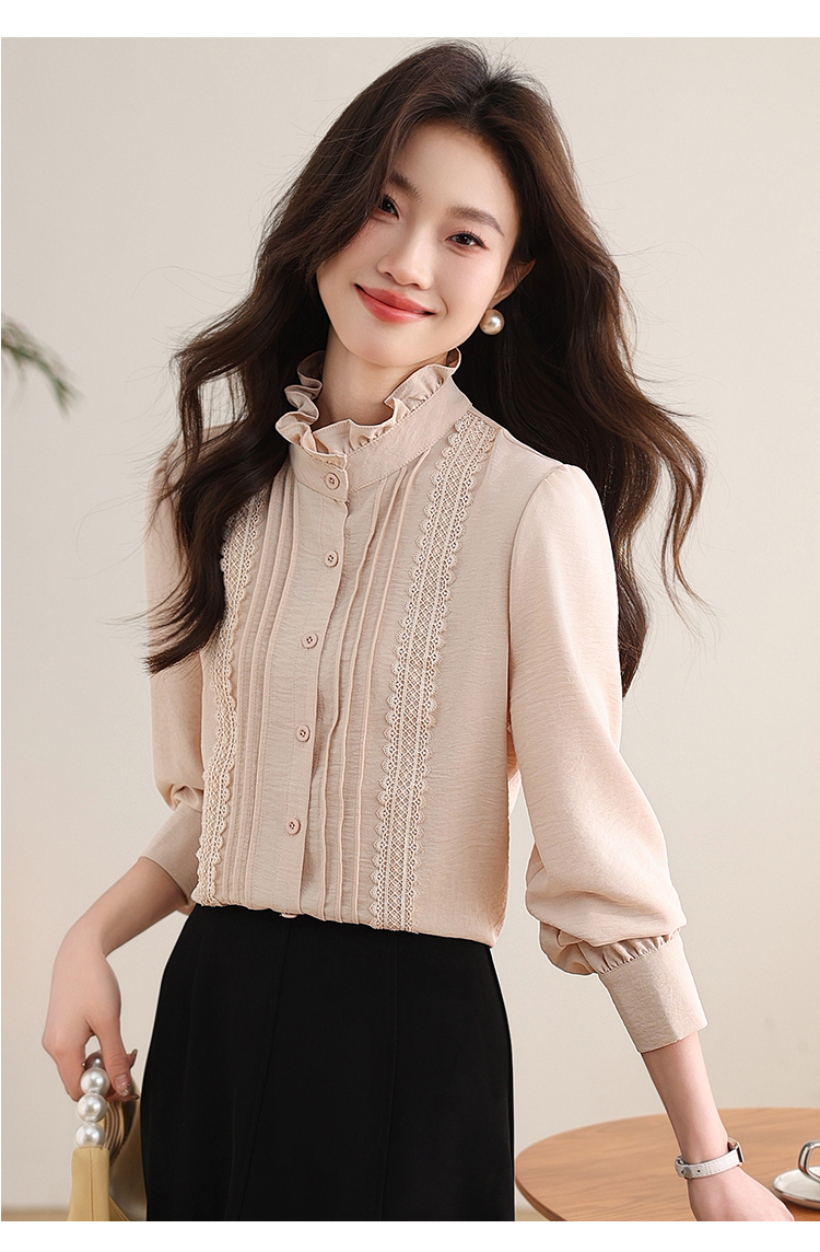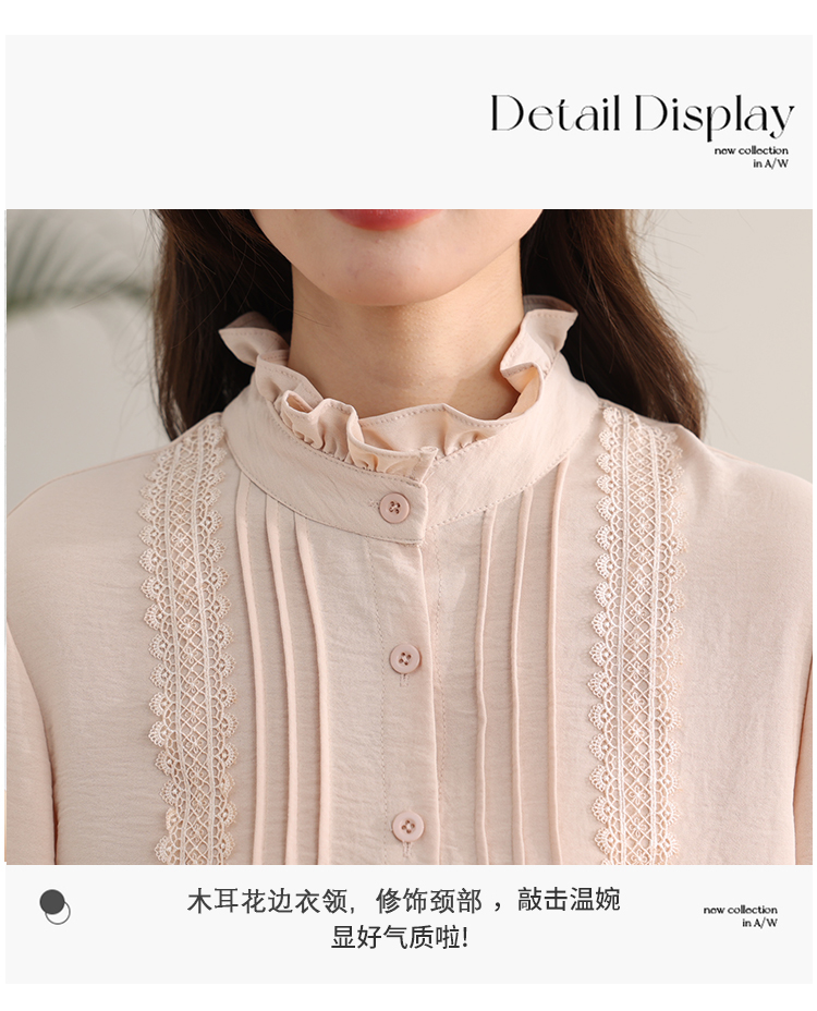 PF1016#木耳边复古宫廷风衬衫女 新款优雅气质简约上衣