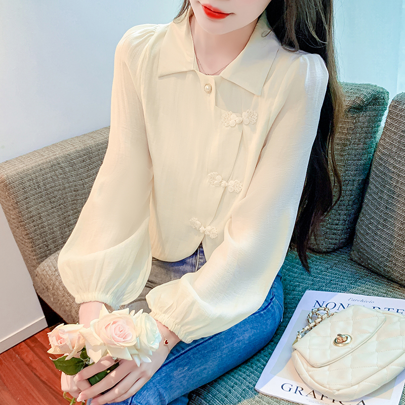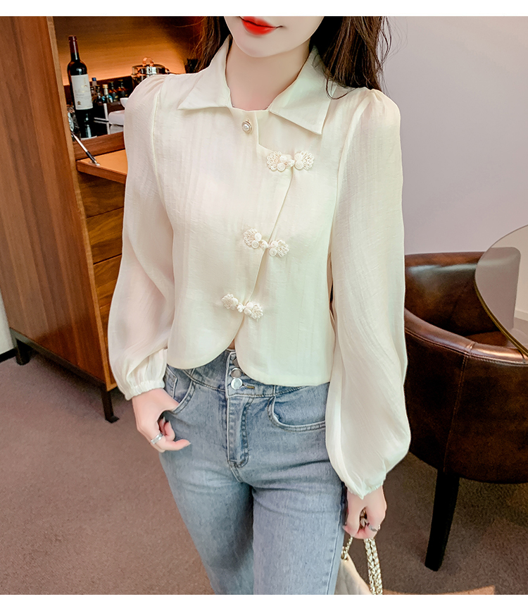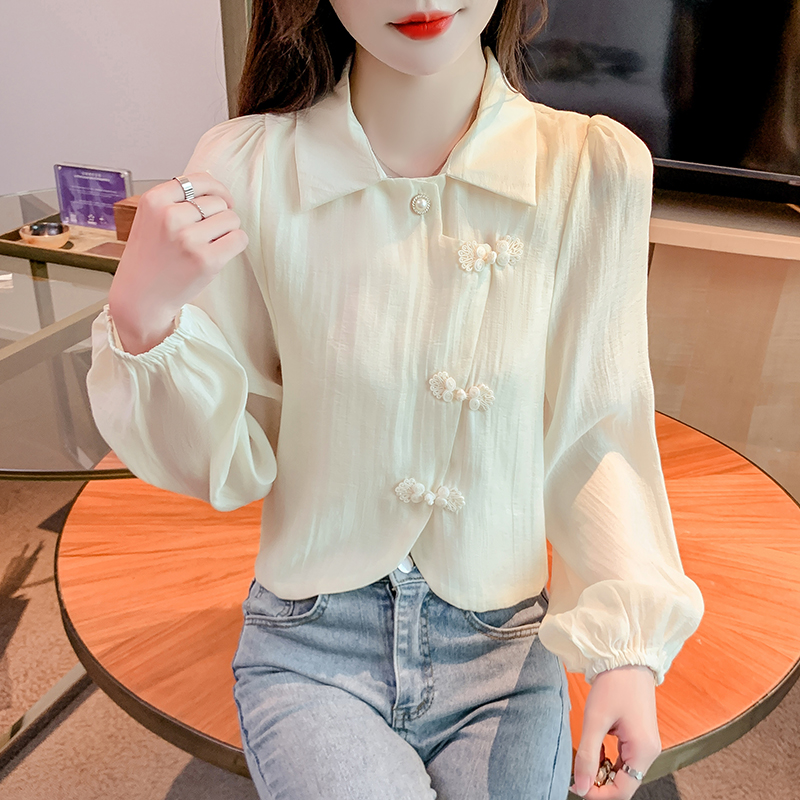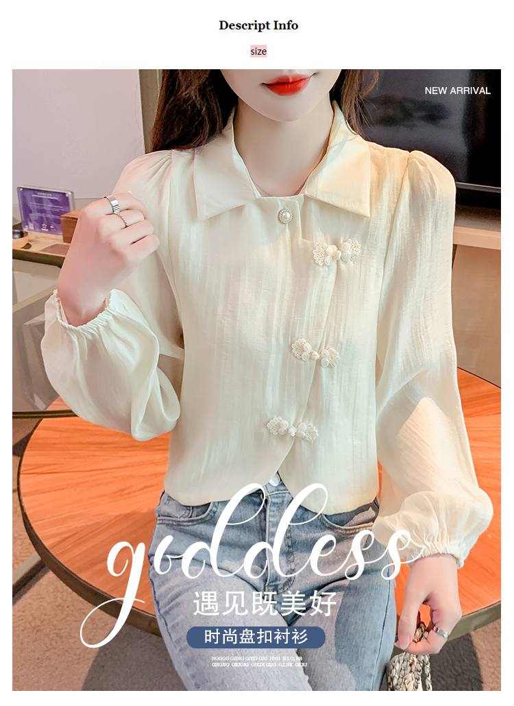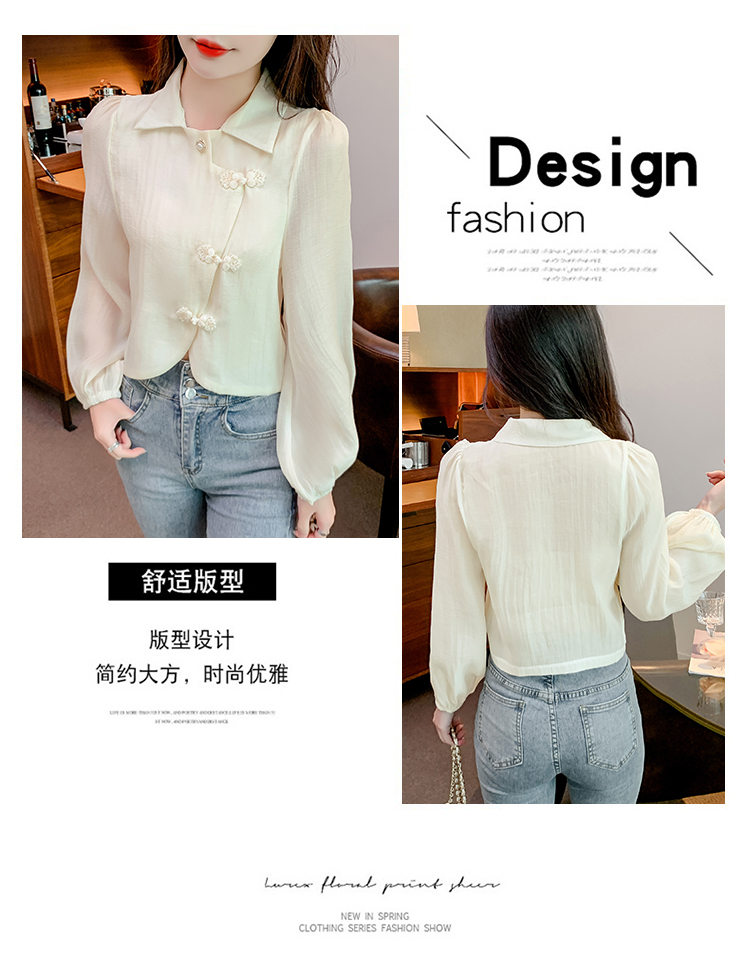 PF1071#新中式盘扣衬衫春装女2024年新款女国风小衫别致漂亮长袖春季上衣