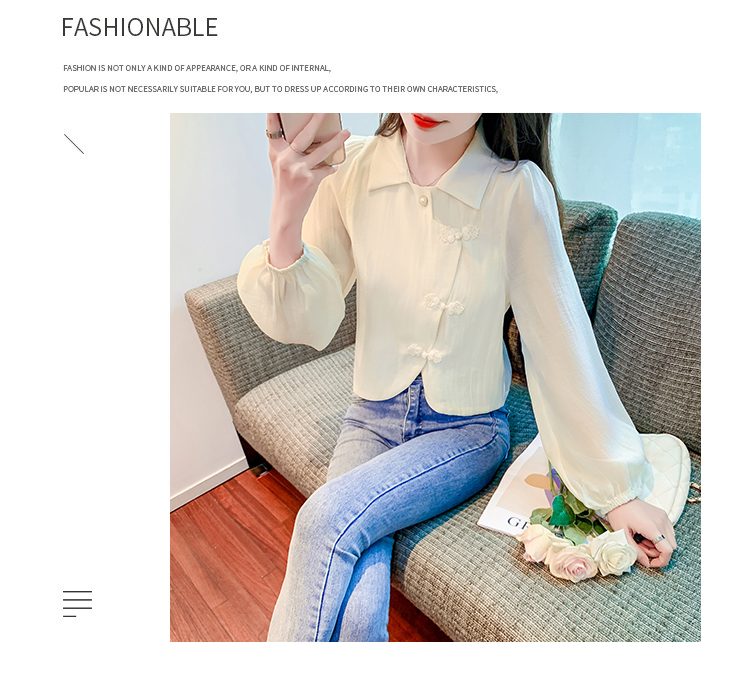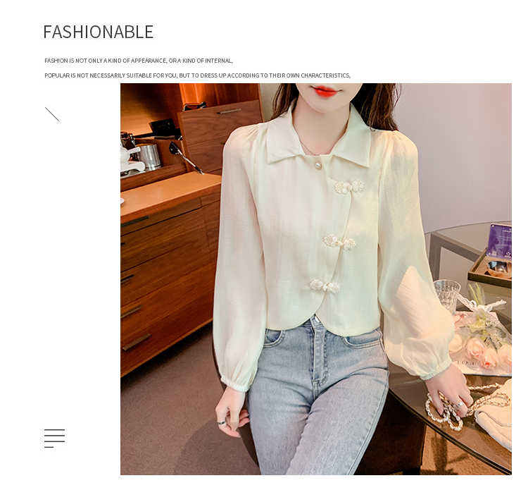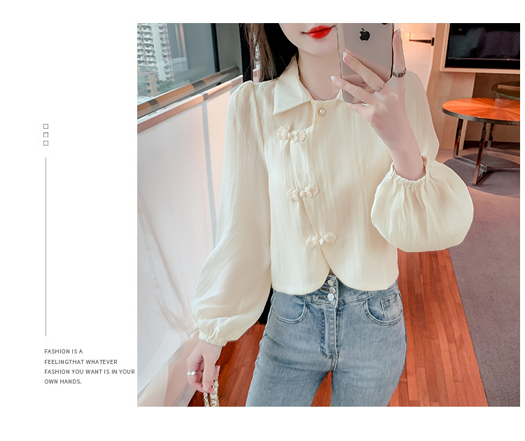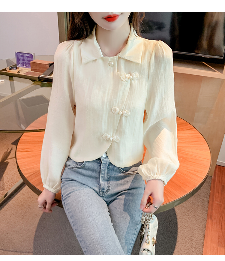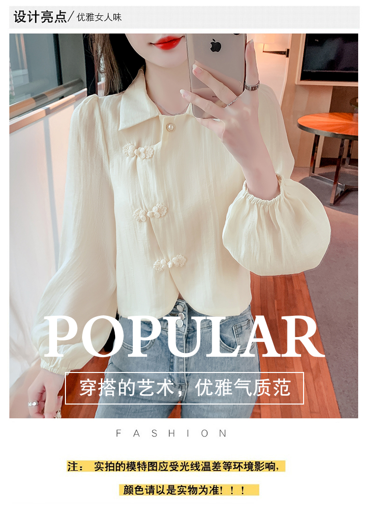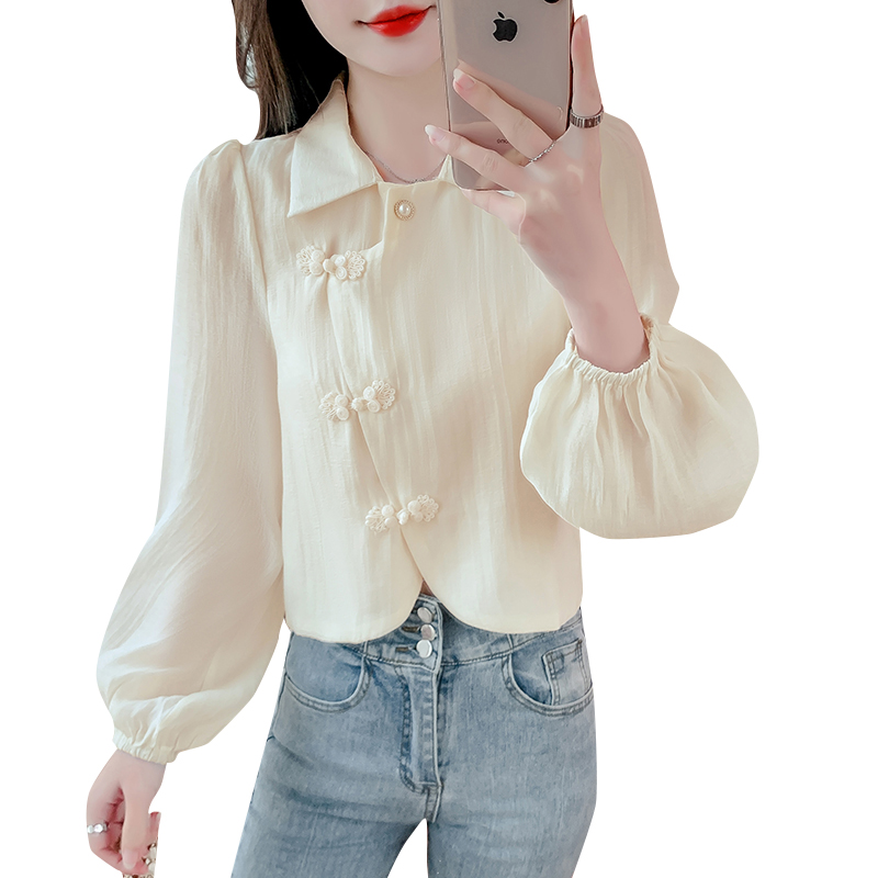 PF1071#新中式盘扣衬衫春装女2024年新款女国风小衫别致漂亮长袖春季上衣