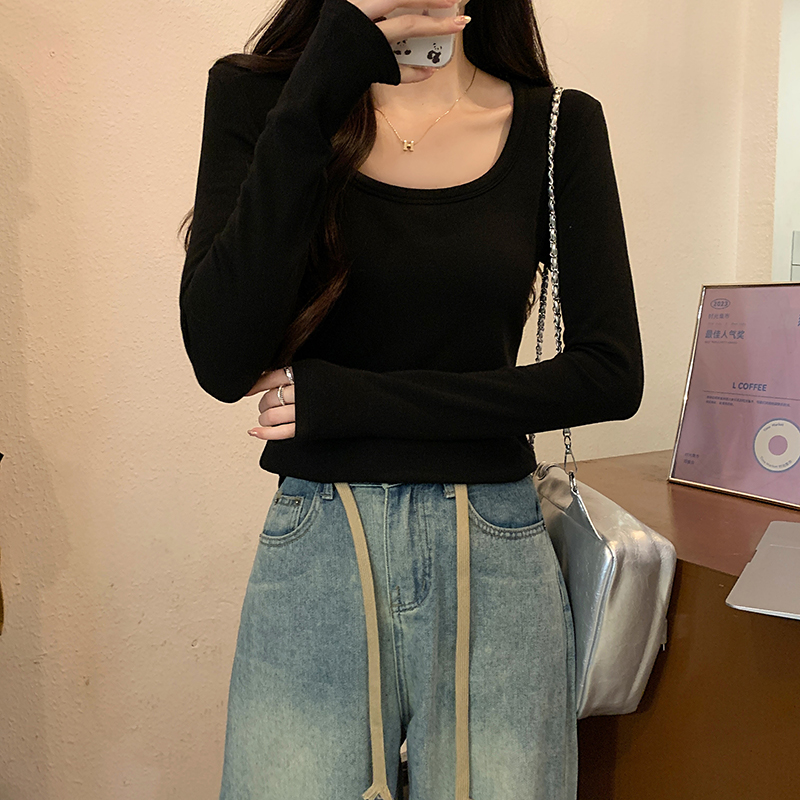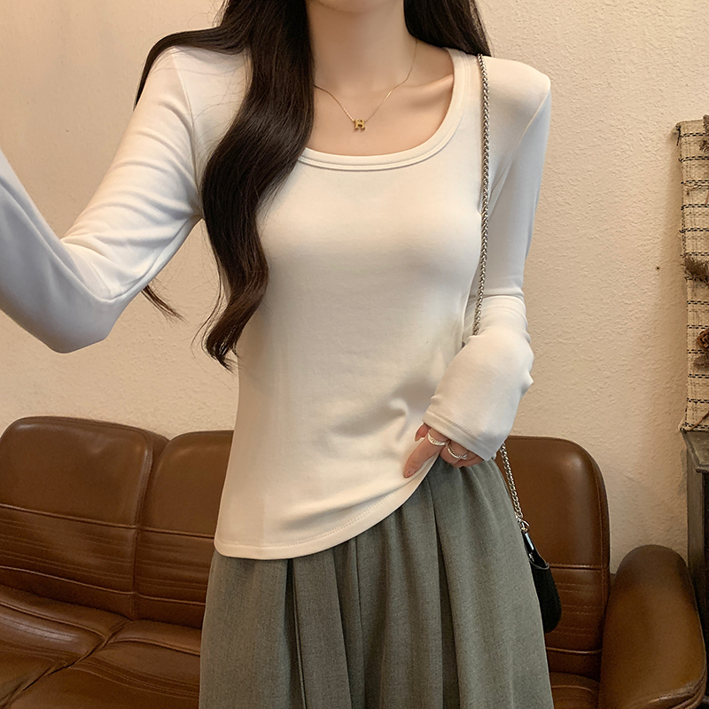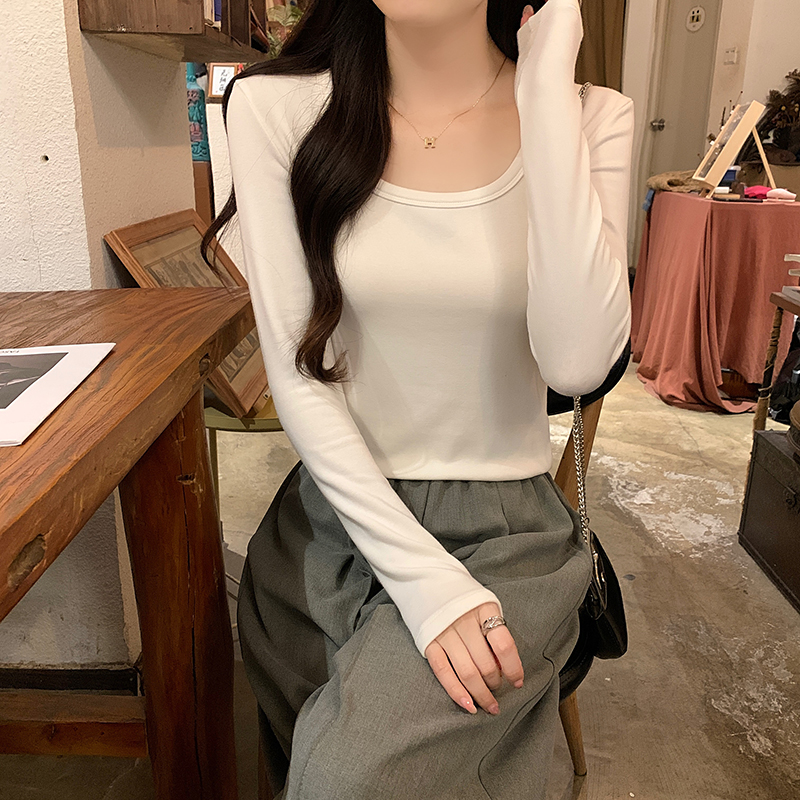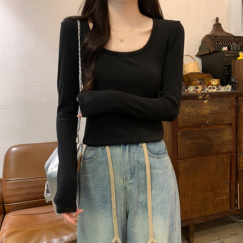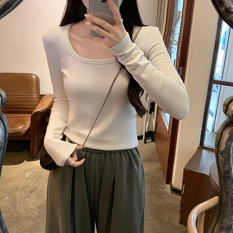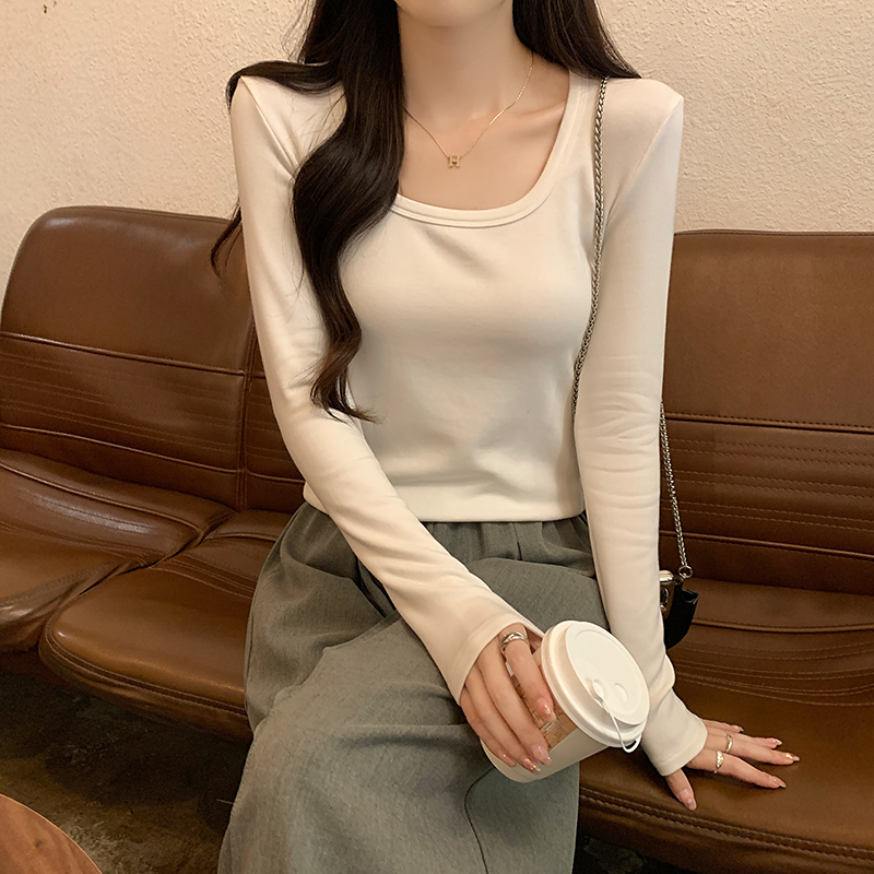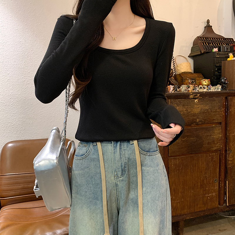 PF1092#长袖t恤女春秋薄款圆领纯色打底衫上衣大码女装