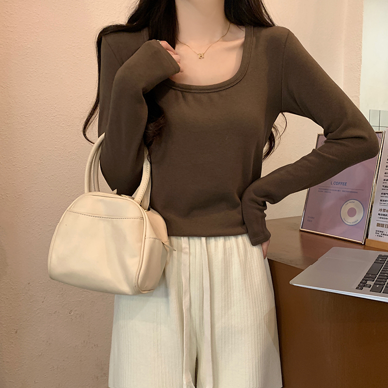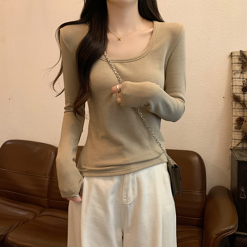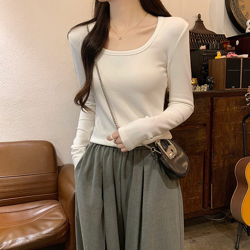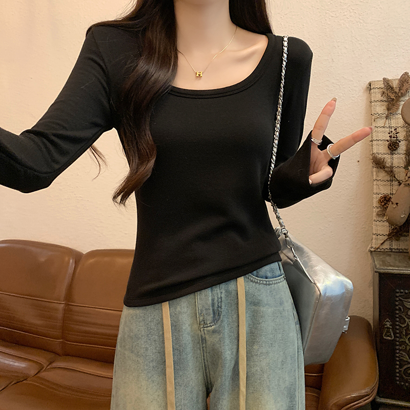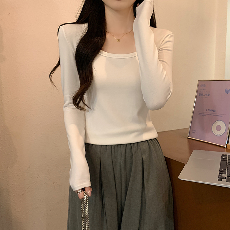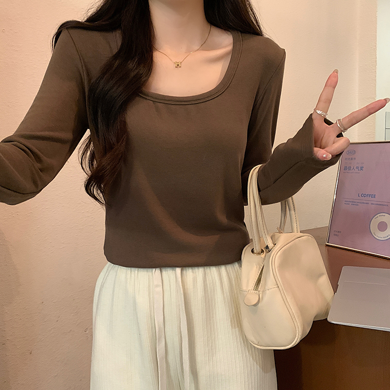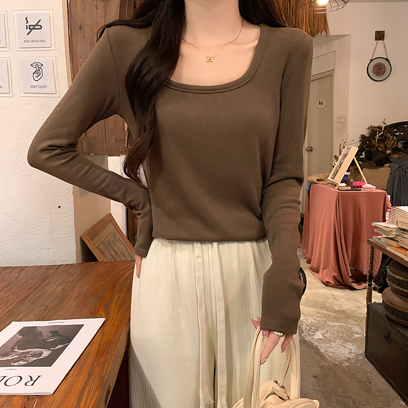PF1092#长袖t恤女春秋薄款圆领纯色打底衫上衣大码女装