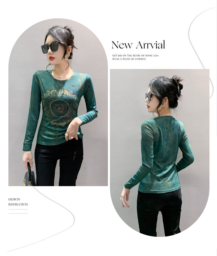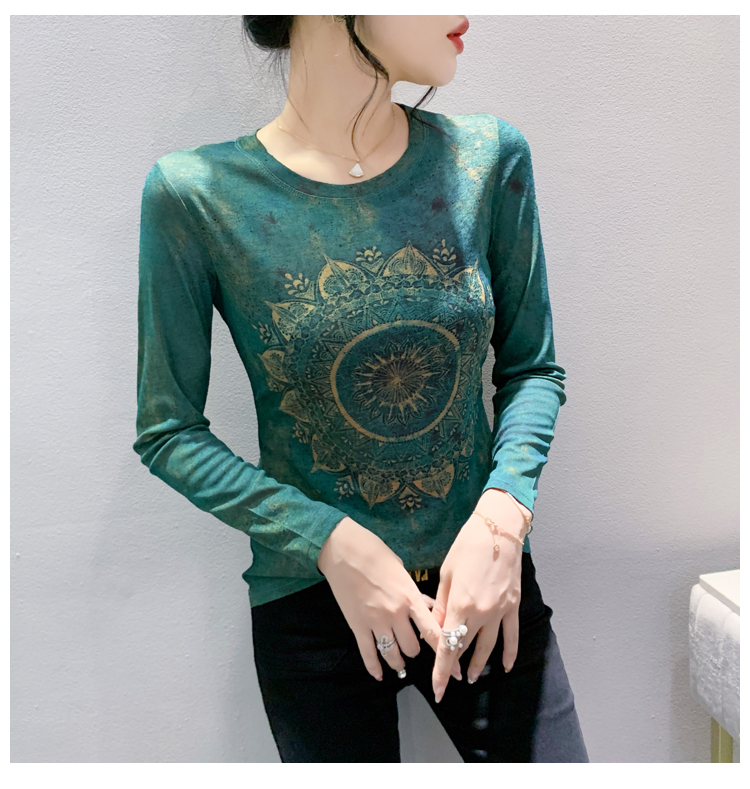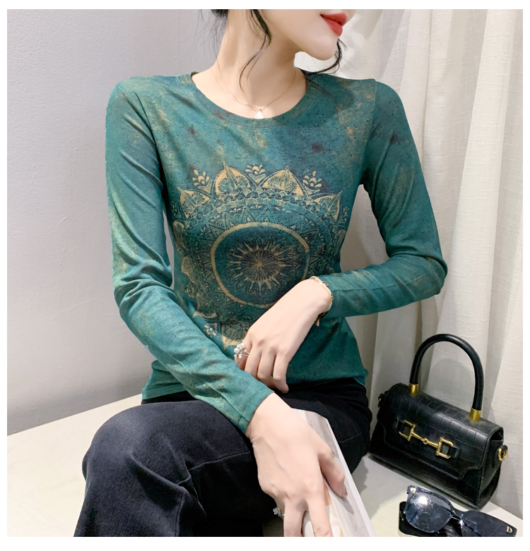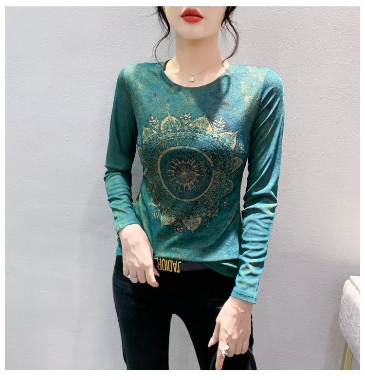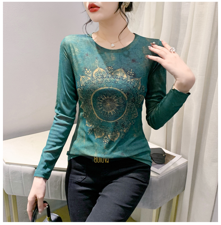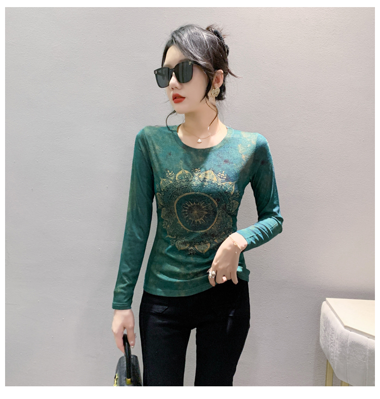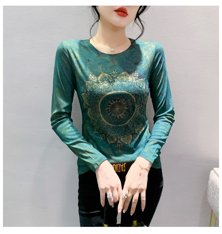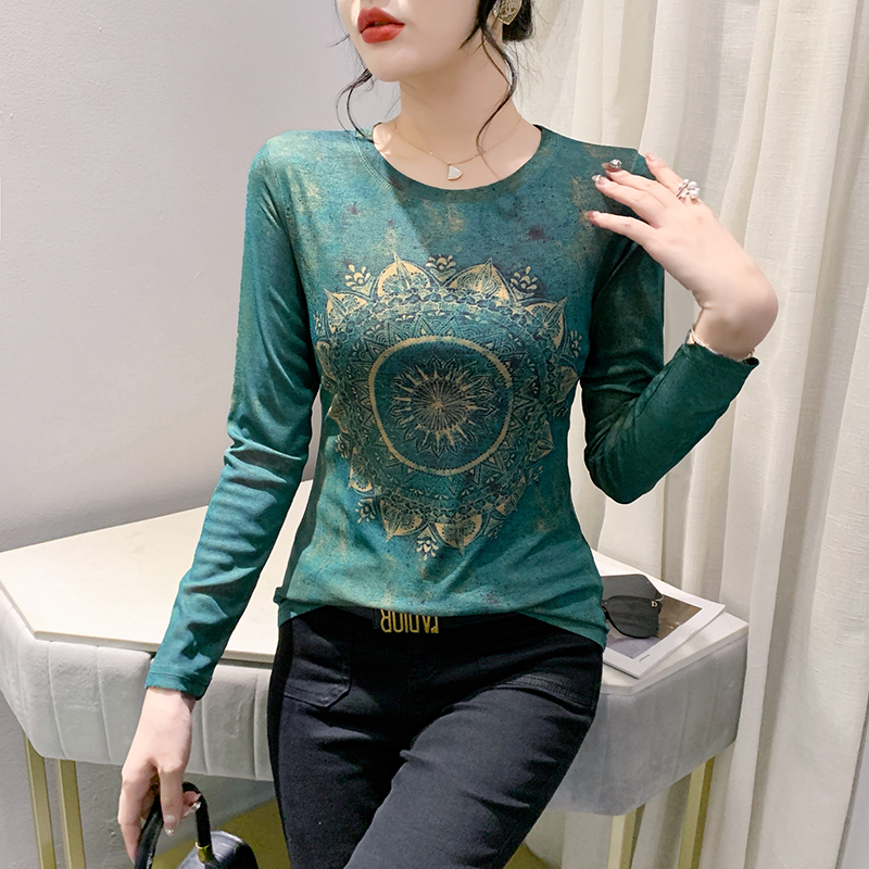 PF1243#新款时尚印花长袖T恤百搭洋气上衣打底衫女