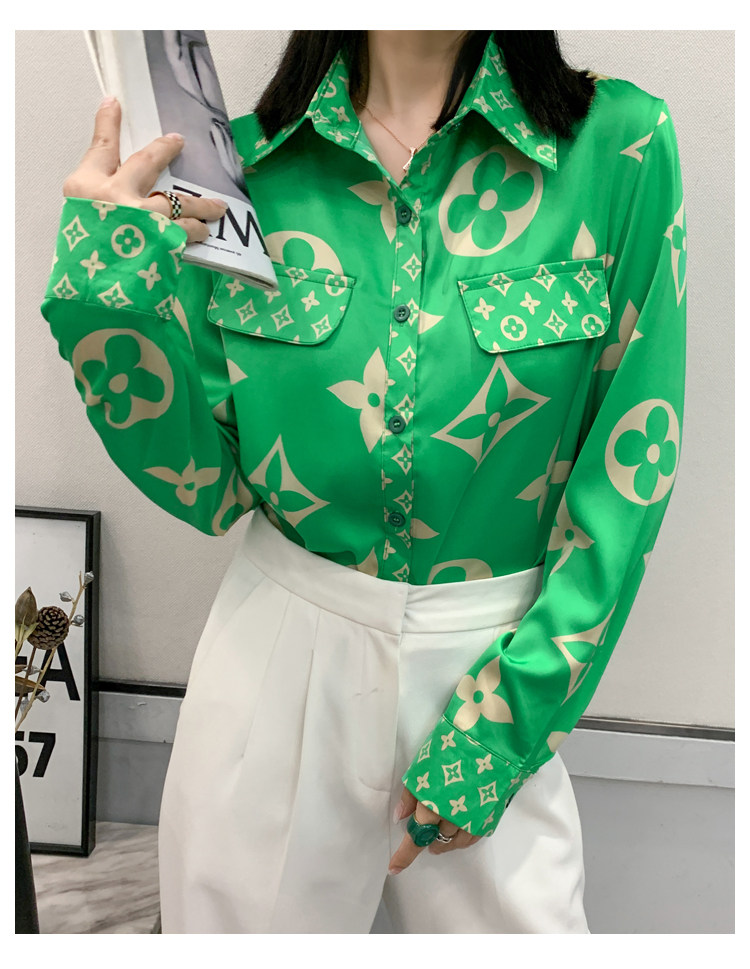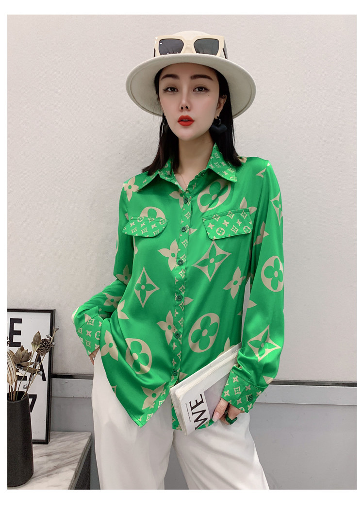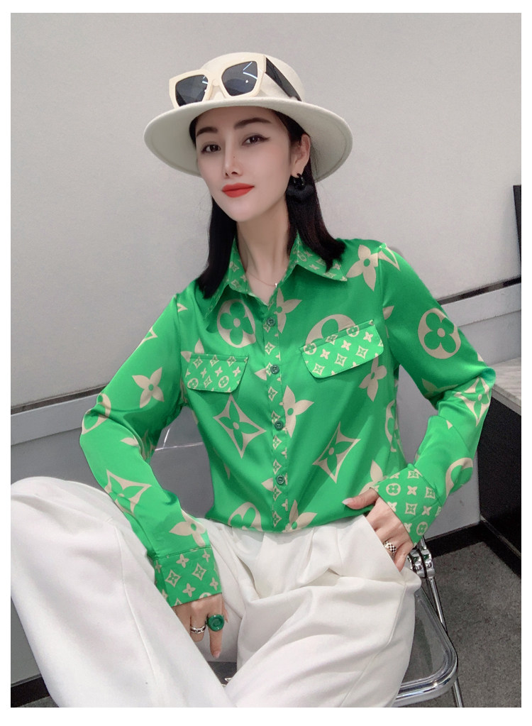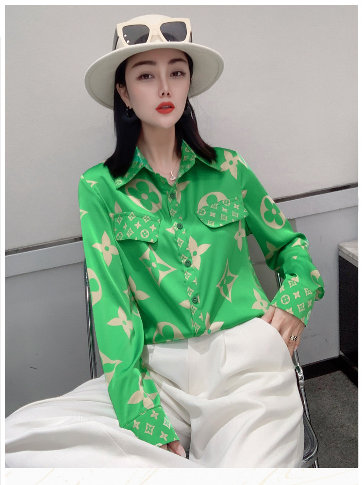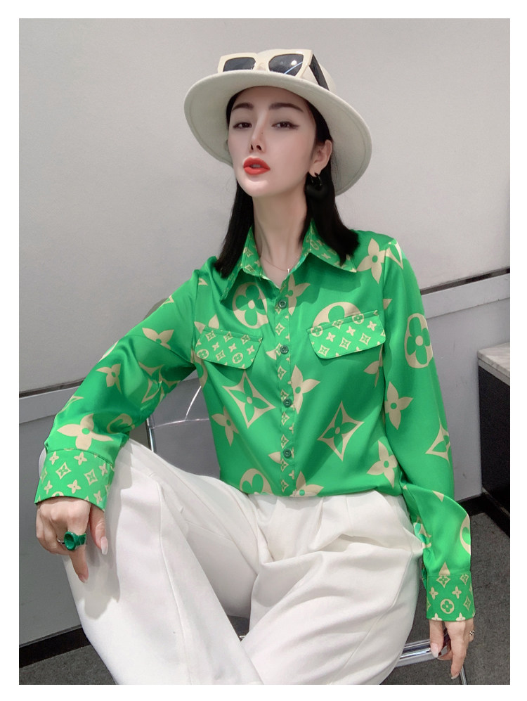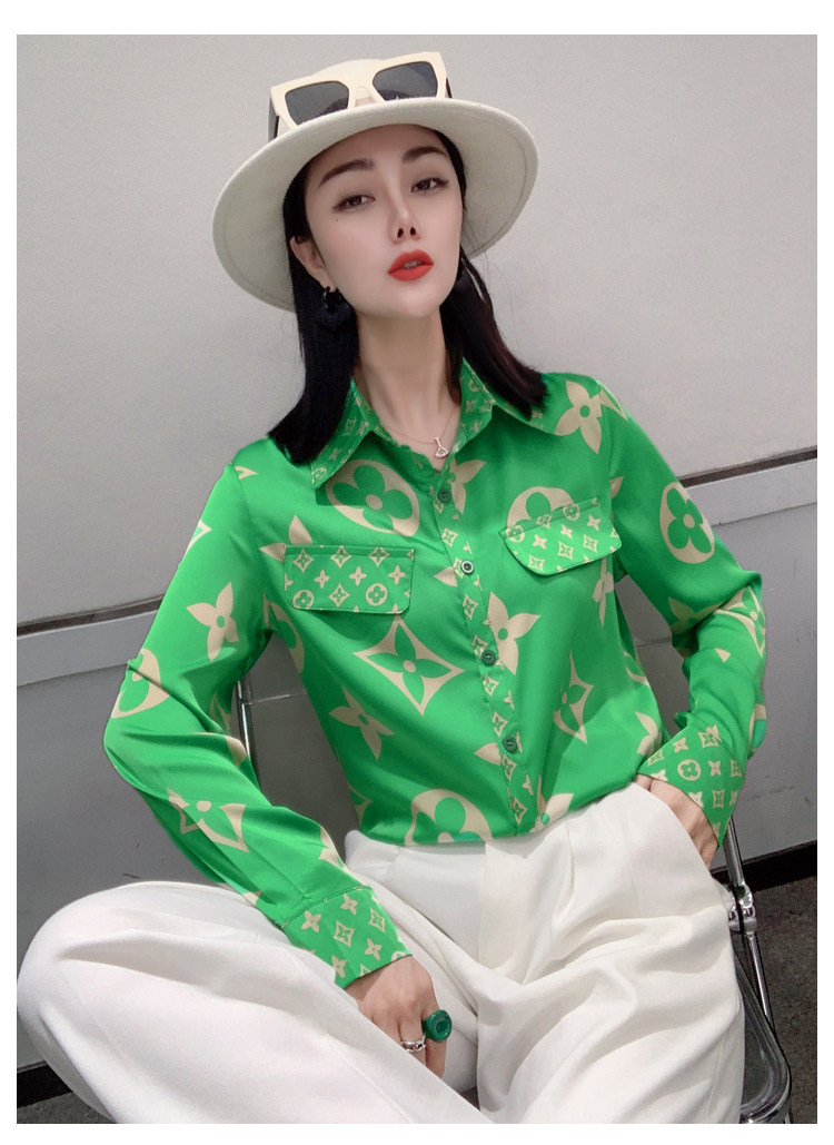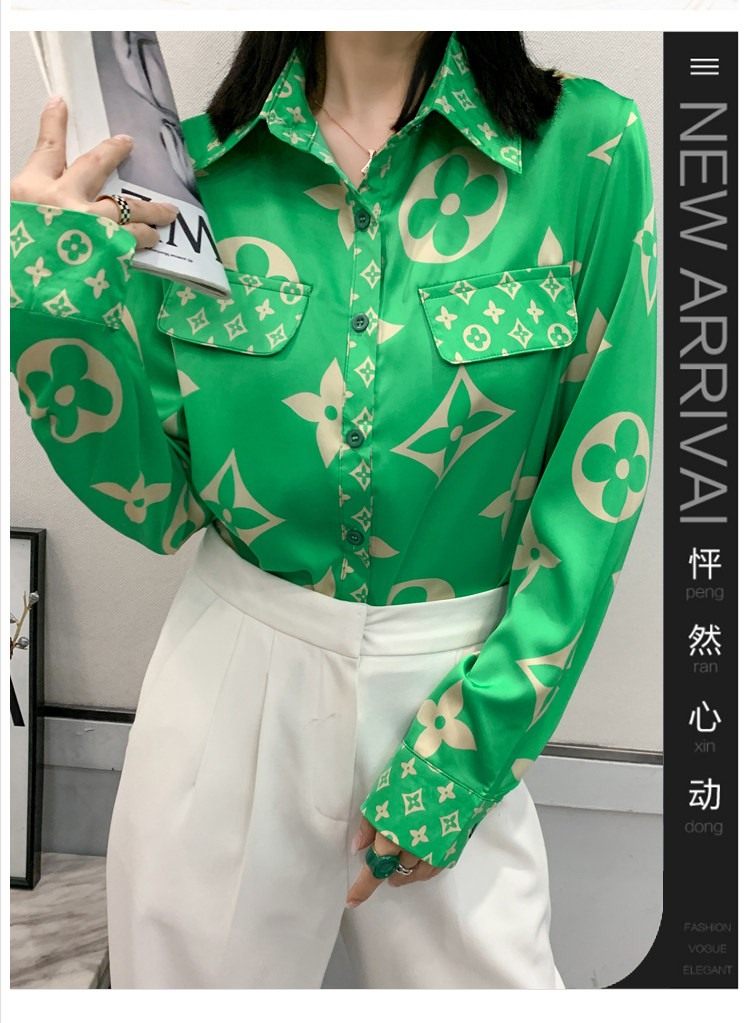 PF1244#新款印花衬衫高品质时尚打底单穿单排扣长袖衬衣女