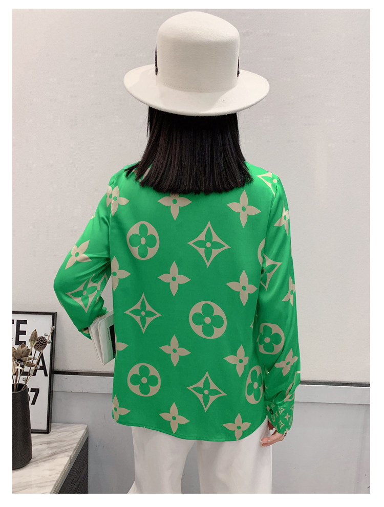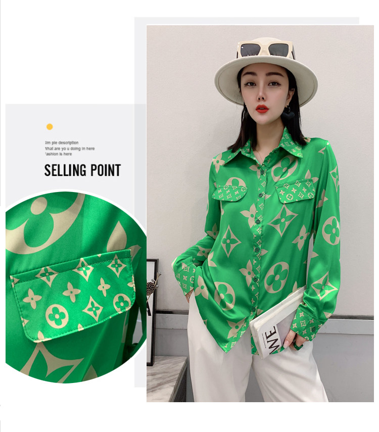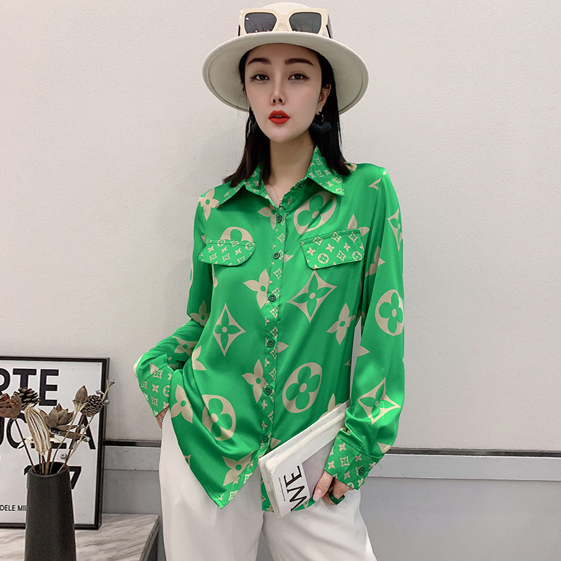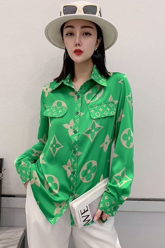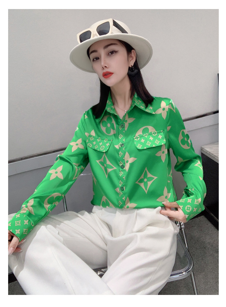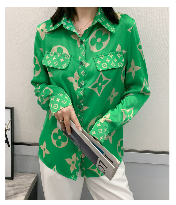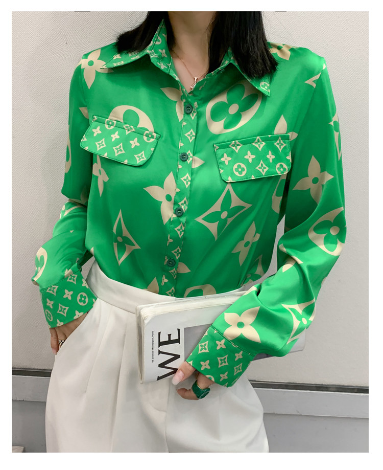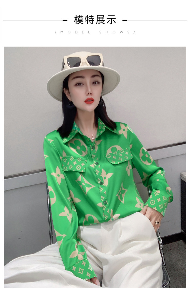 PF1244#新款印花衬衫高品质时尚打底单穿单排扣长袖衬衣女