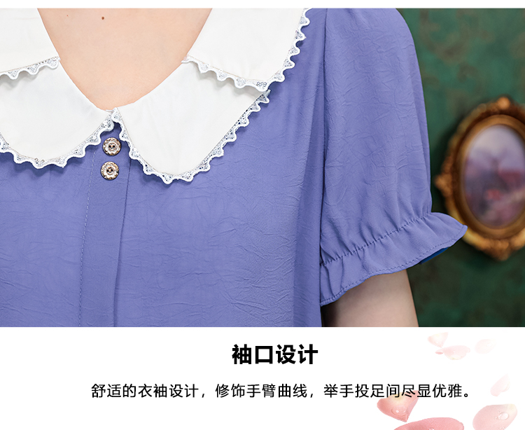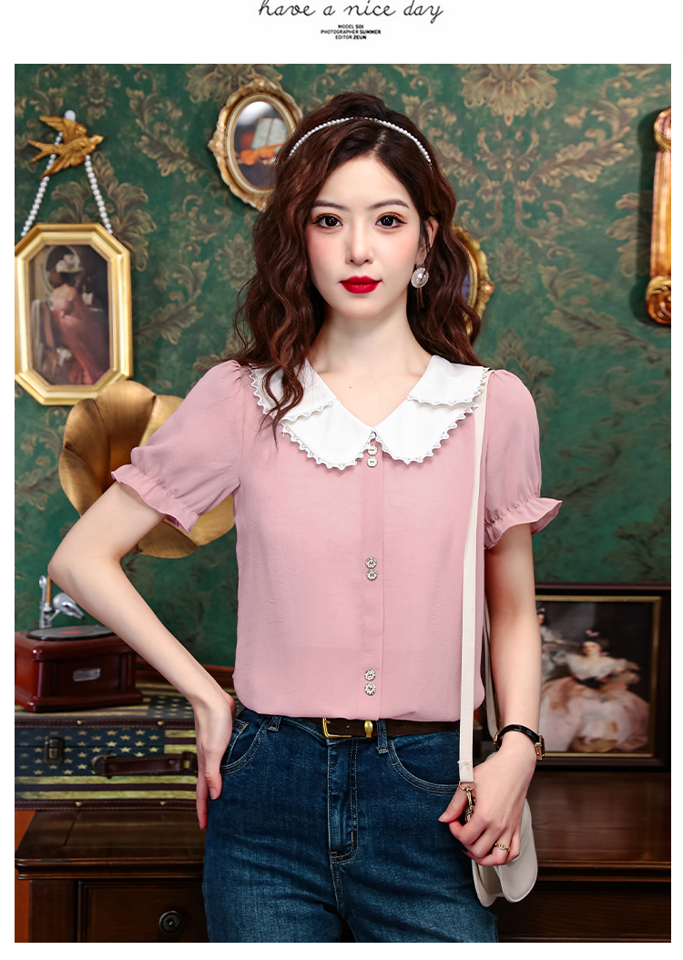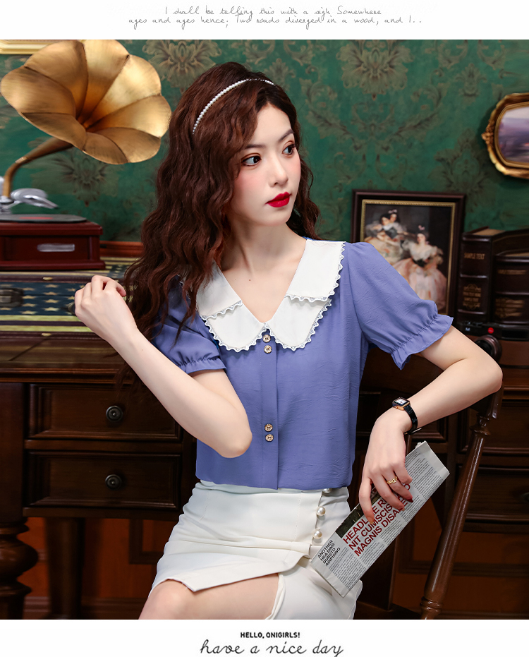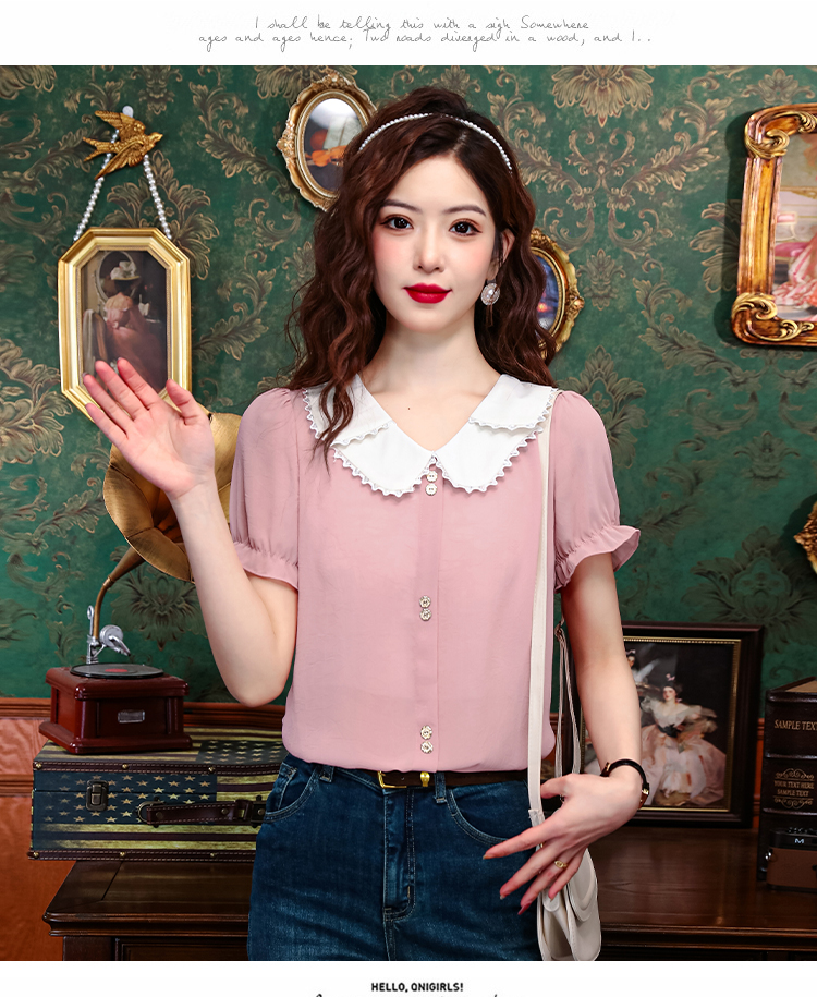 PF1248#夏季薄款法式小衫女装 新款潮雪纺短袖甜美减龄上衣撞色T恤