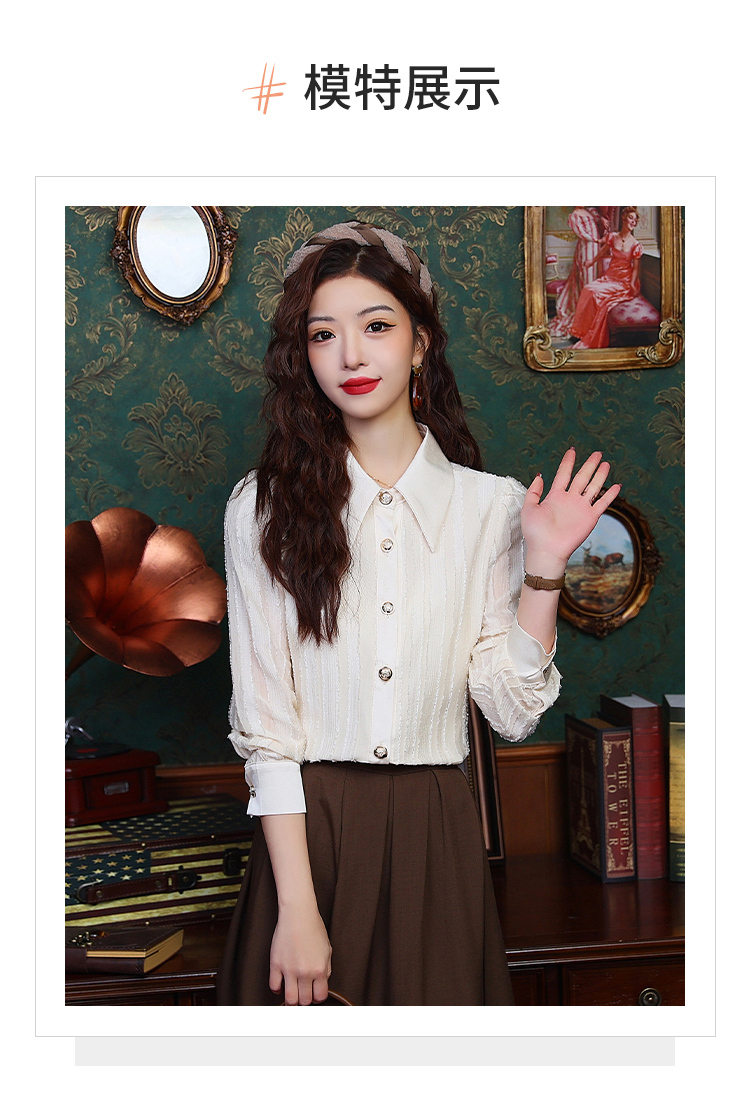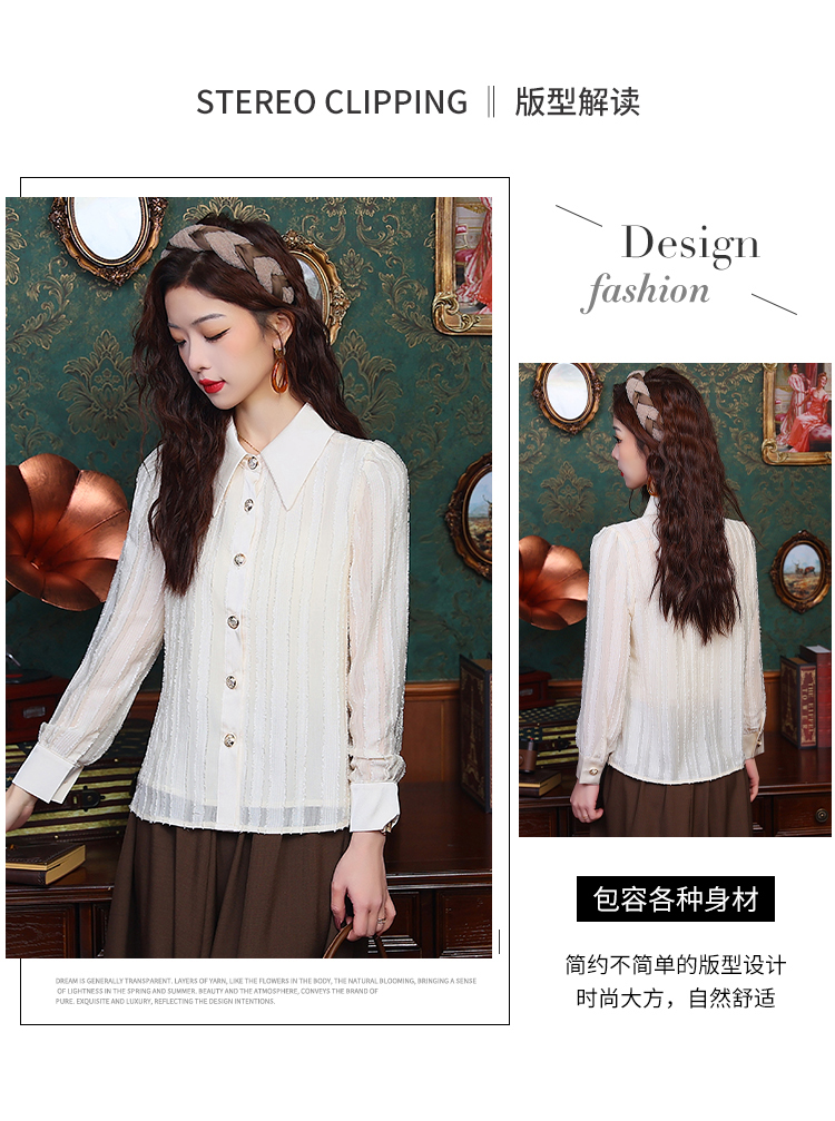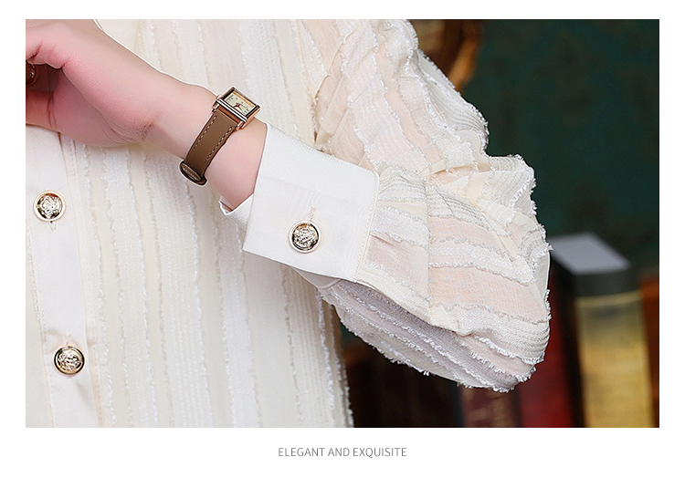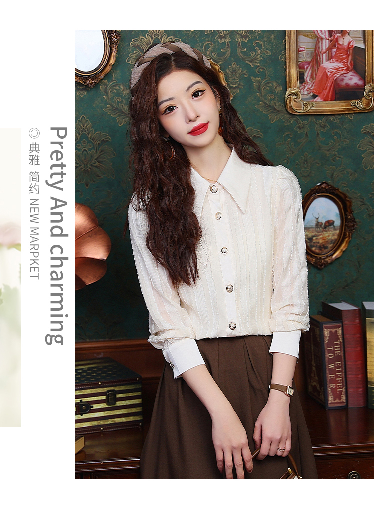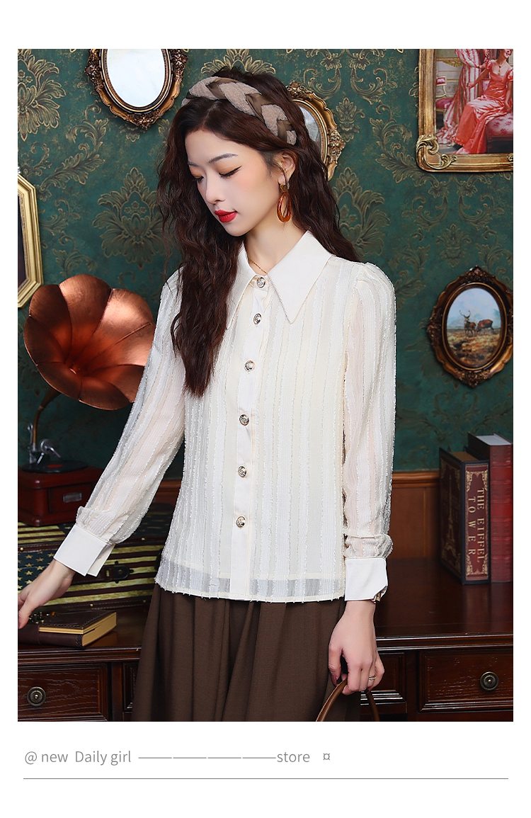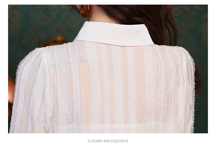 PF1250#蕾丝打底衫 新款翻领白色高级感衬衫女百搭上衣