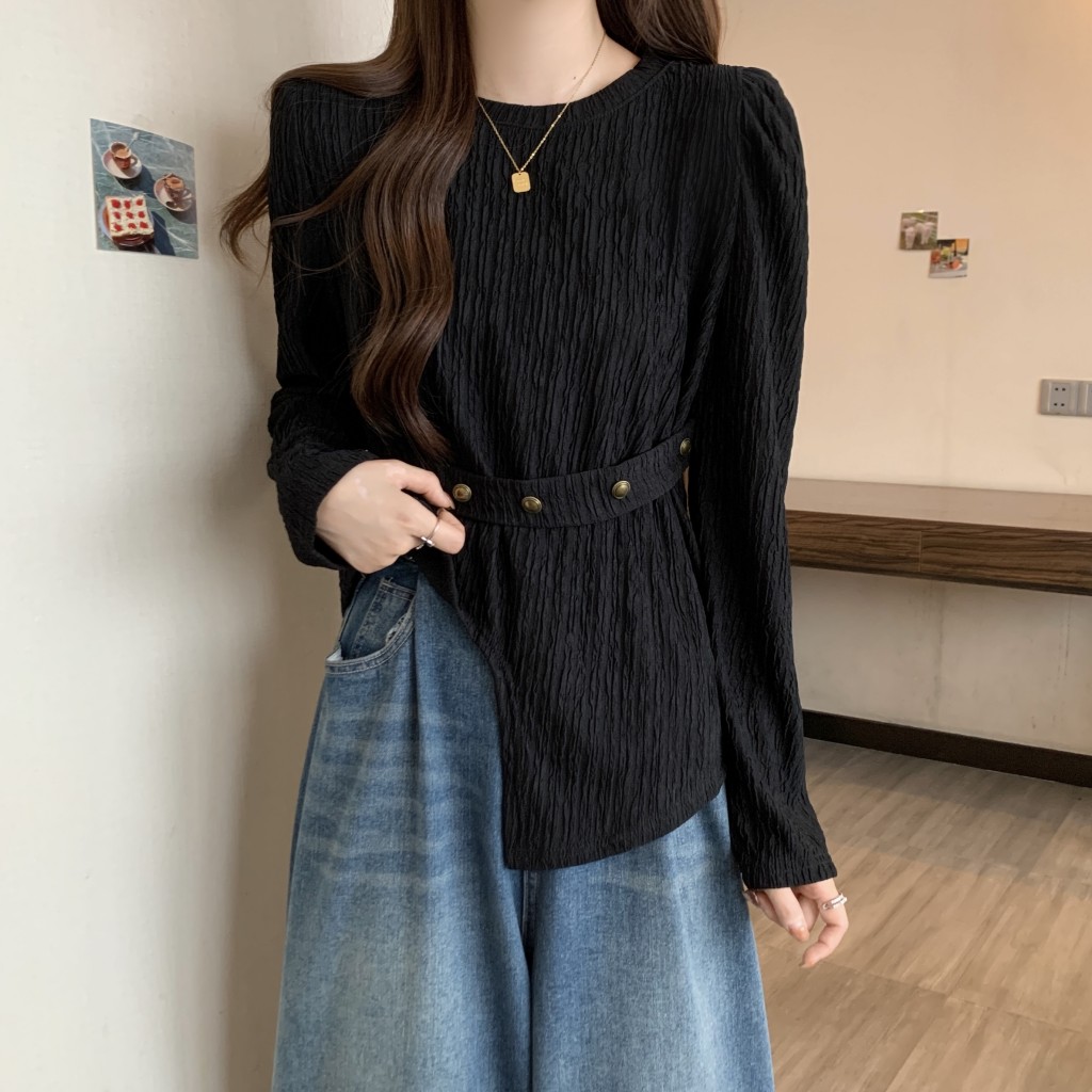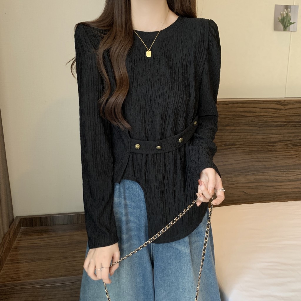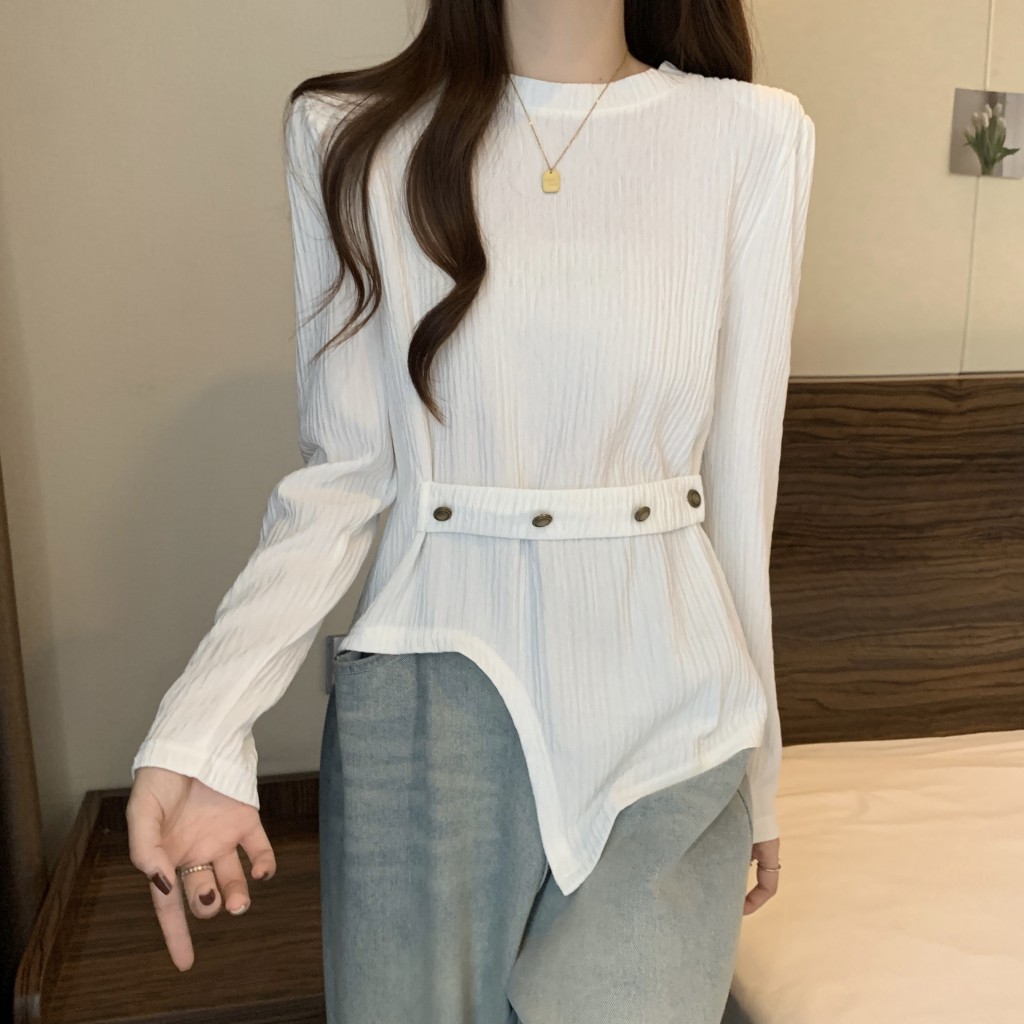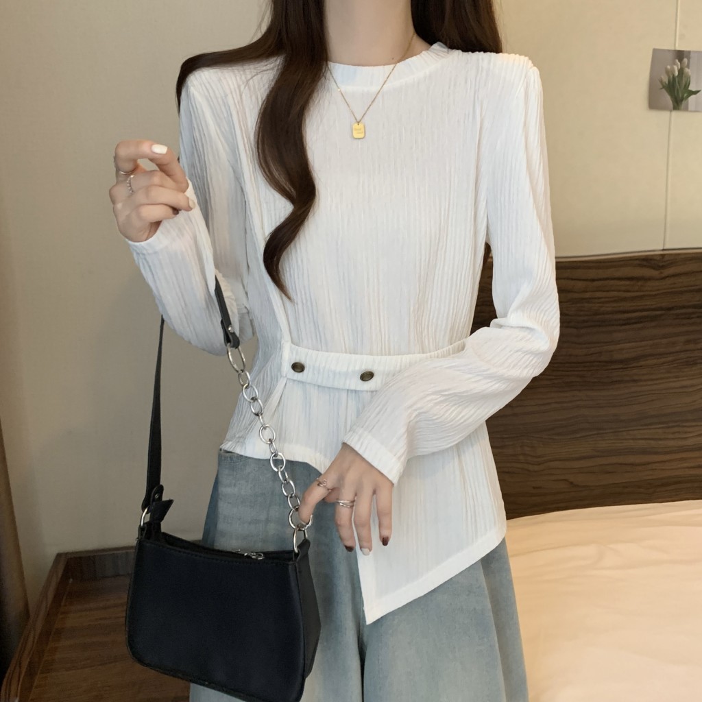 PF1257#大码~春装新款不规则长袖t恤女宽松独特别致上衣设计感小众女