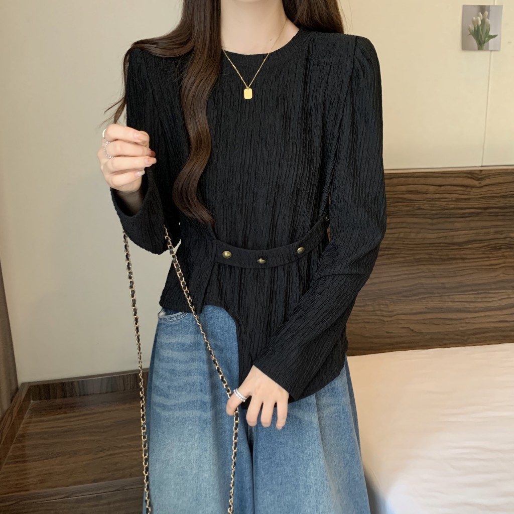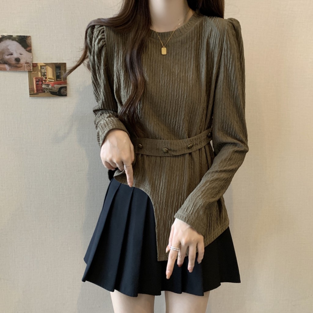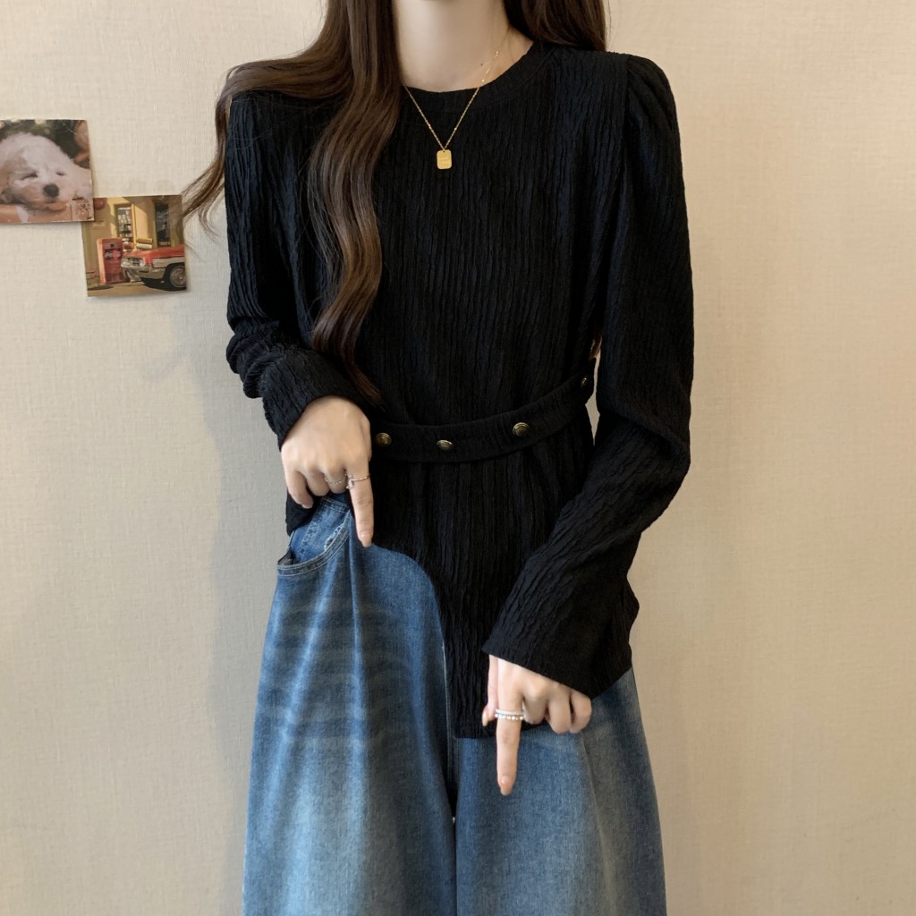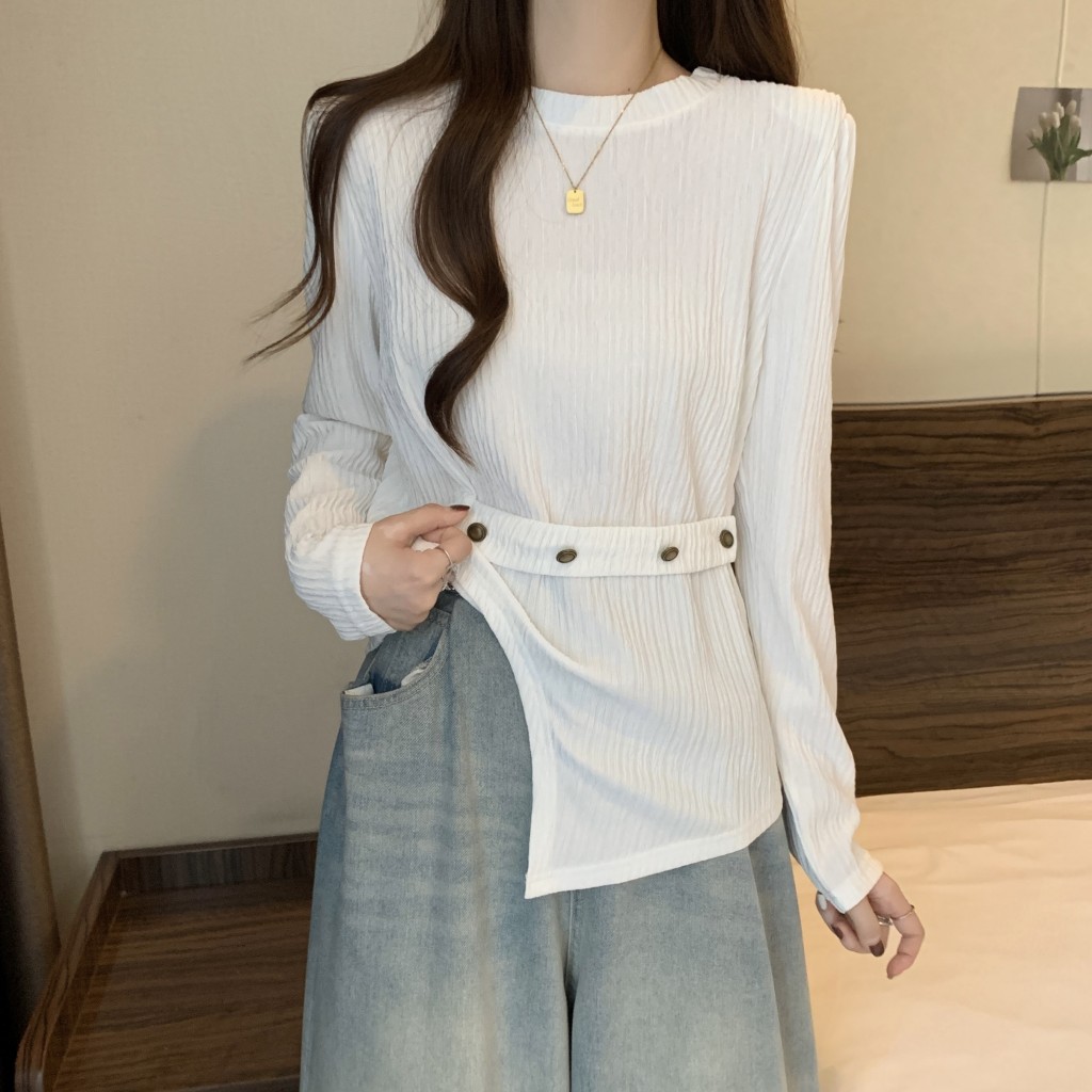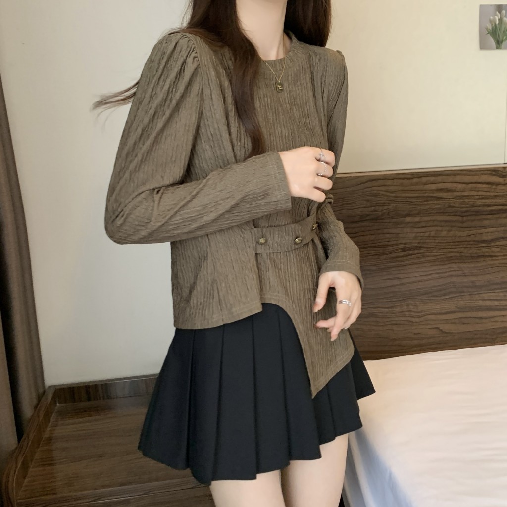 PF1257#大码~春装新款不规则长袖t恤女宽松独特别致上衣设计感小众女
