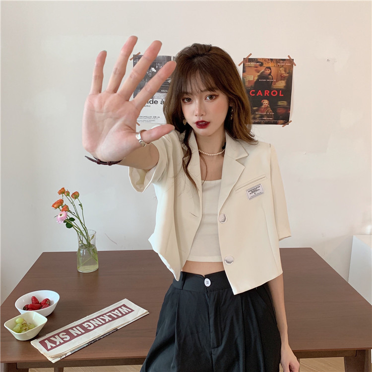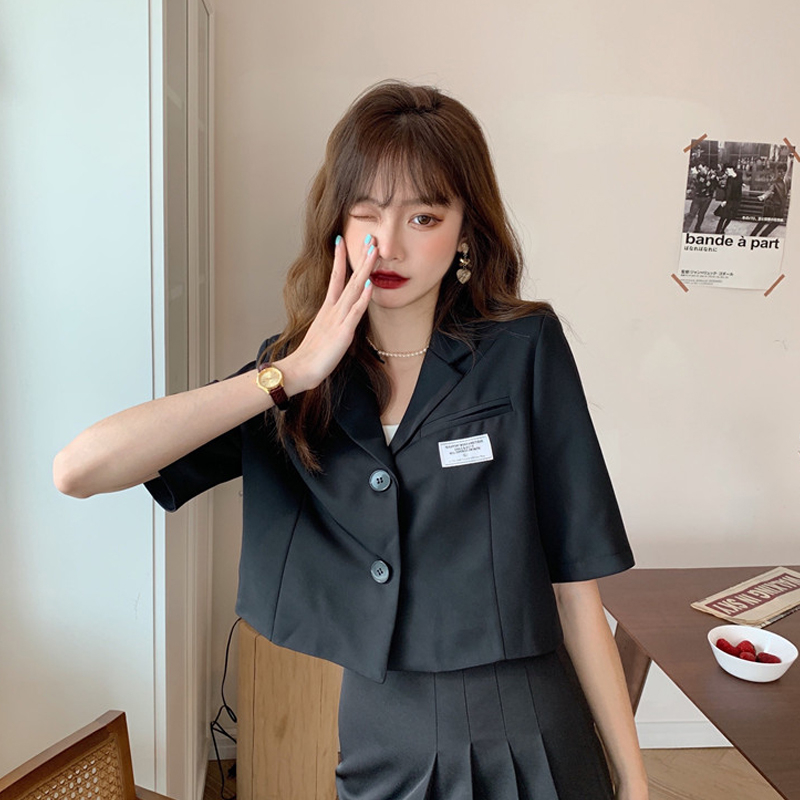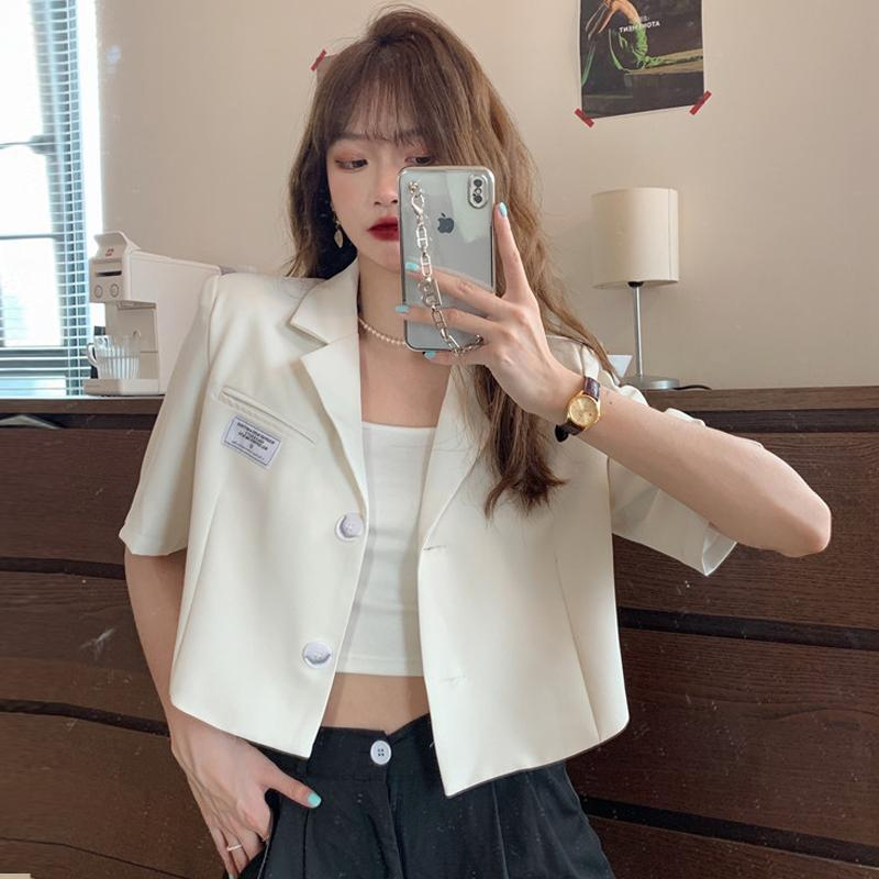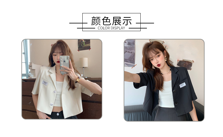 PF1372#短袖小西装外套女夏季薄款2024新款网红炸街设计感小个子短款西服
