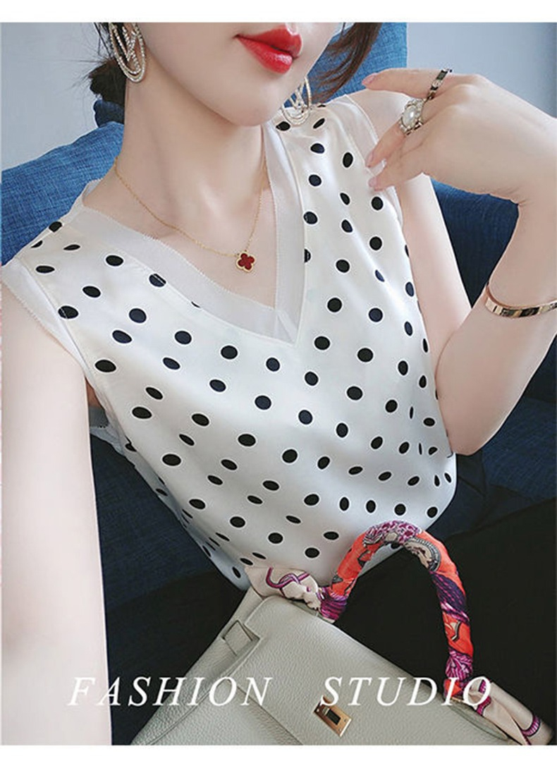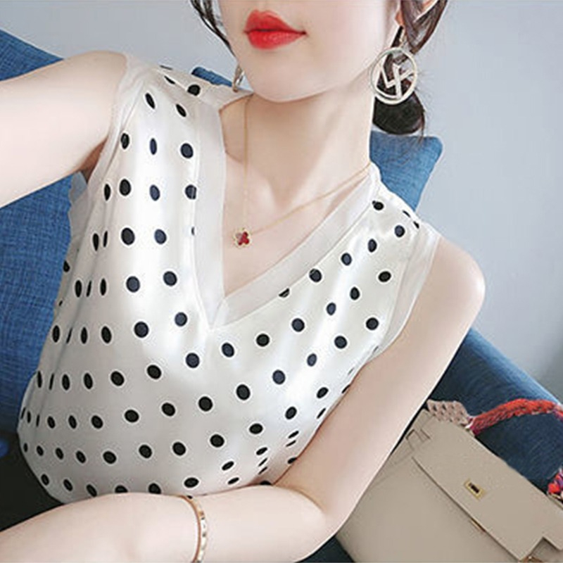 PF1391#欧洲站高级感时尚波点吊带背心 时尚女装无袖洋气打底上衣