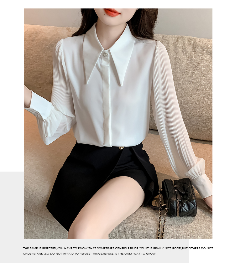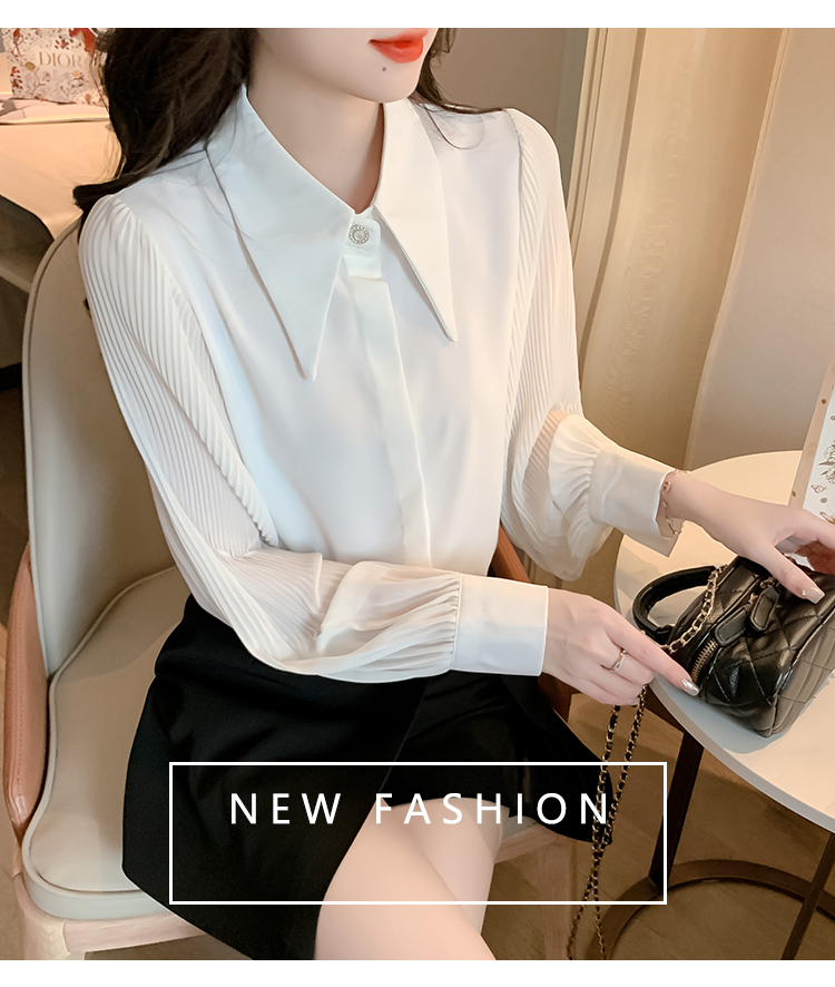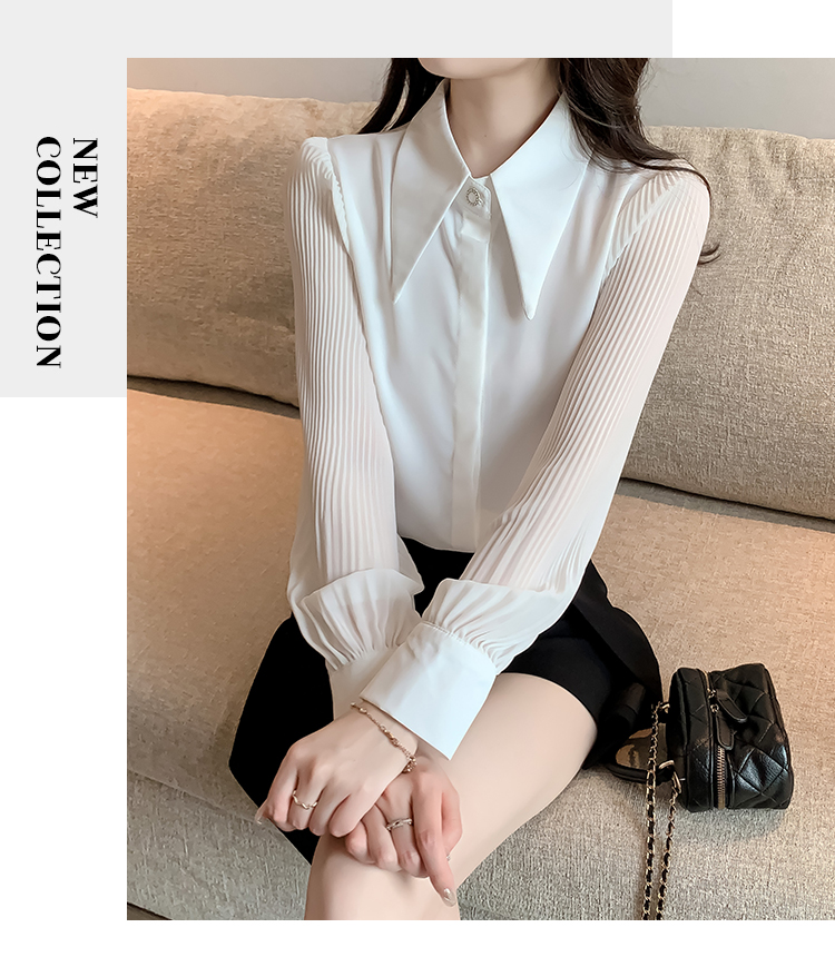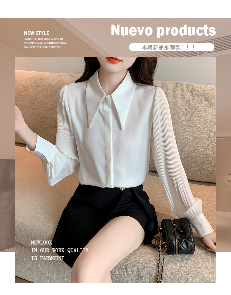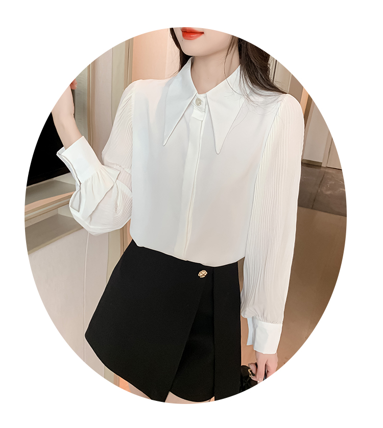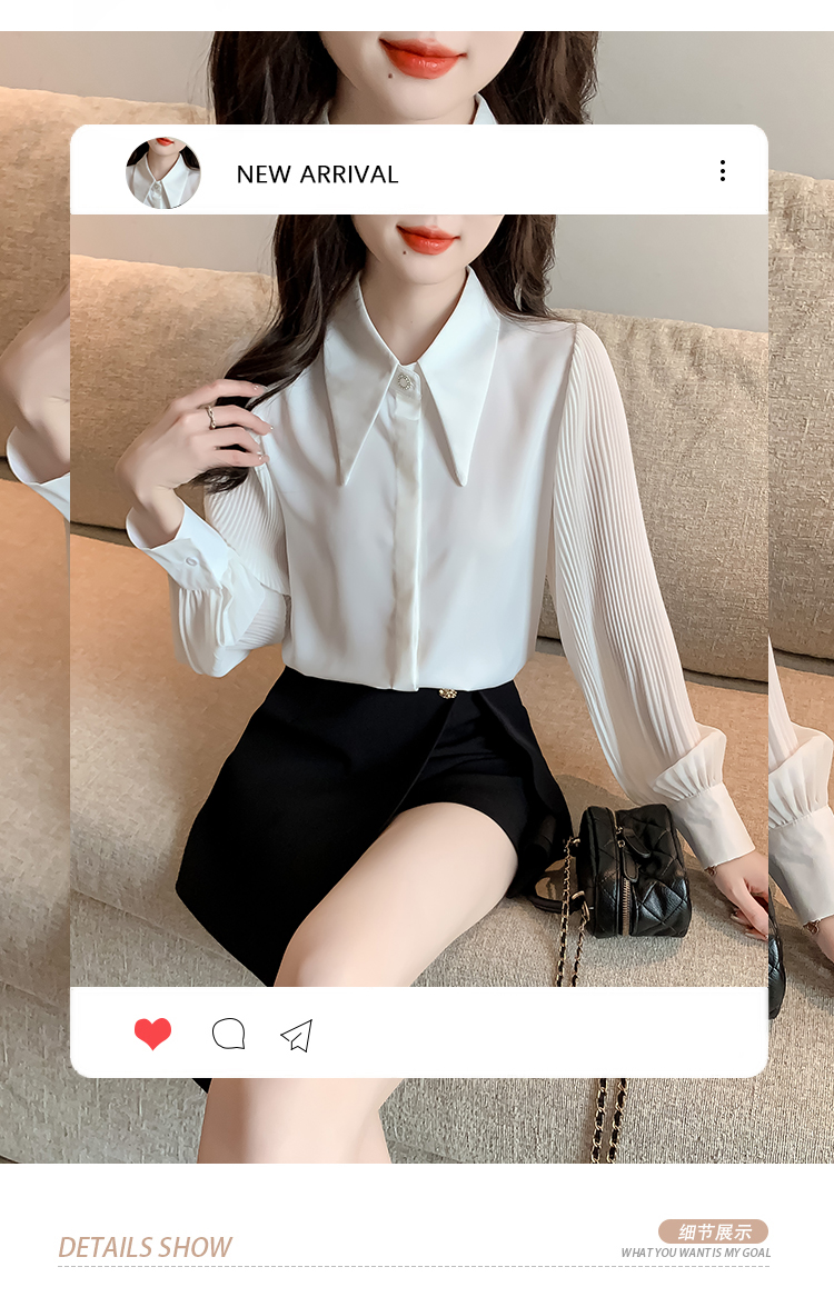 PF1419#白色衬衫女设计感小众高端通勤叠穿尖领法式高级感衬衣