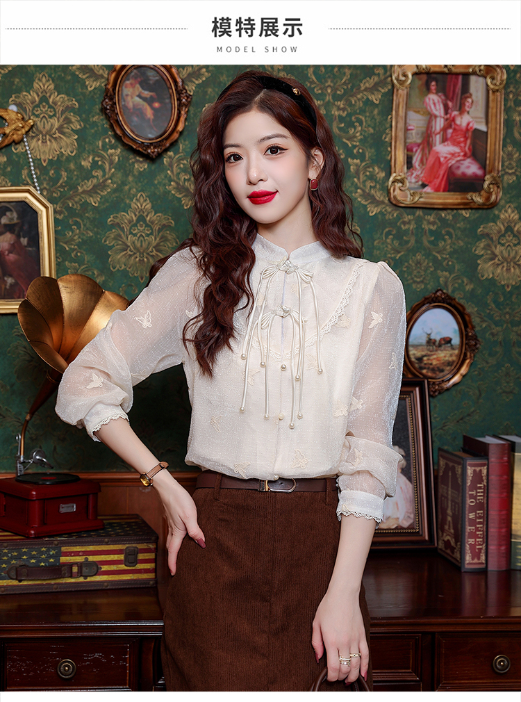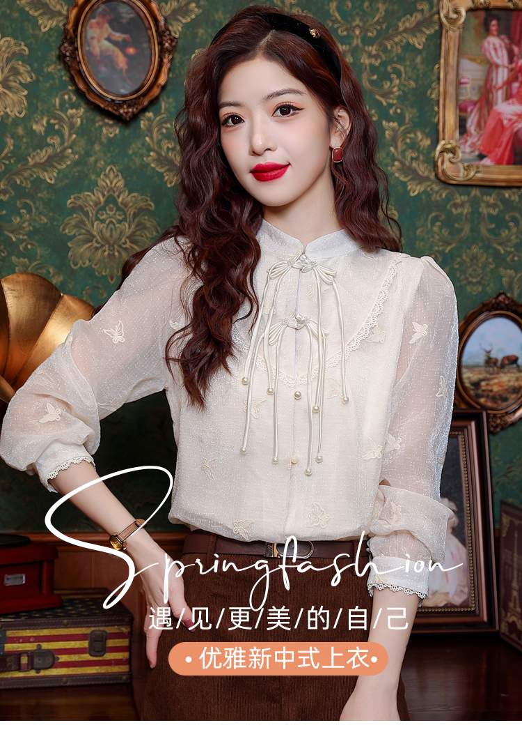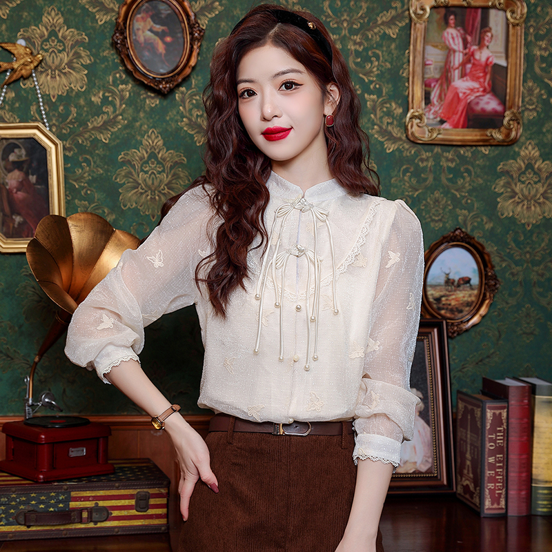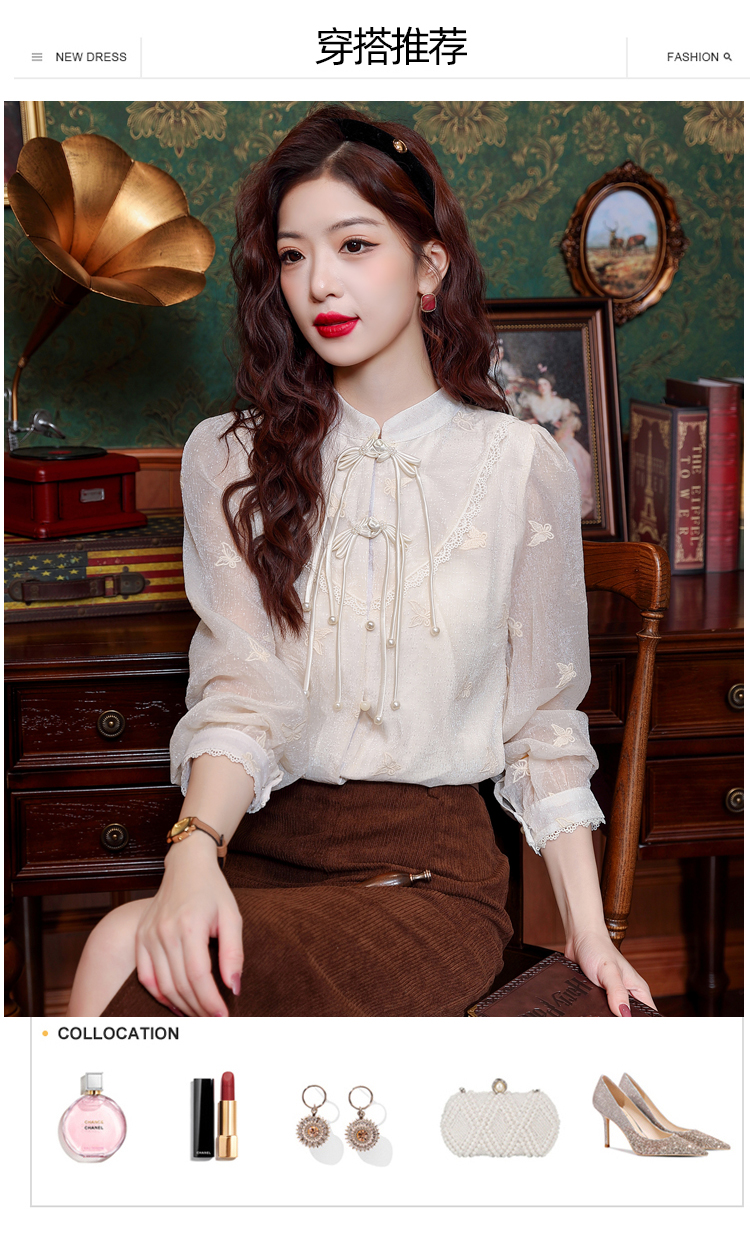 PF1437#刺绣新中式国风流苏衬衫女 新款复古设计感盘扣上衣