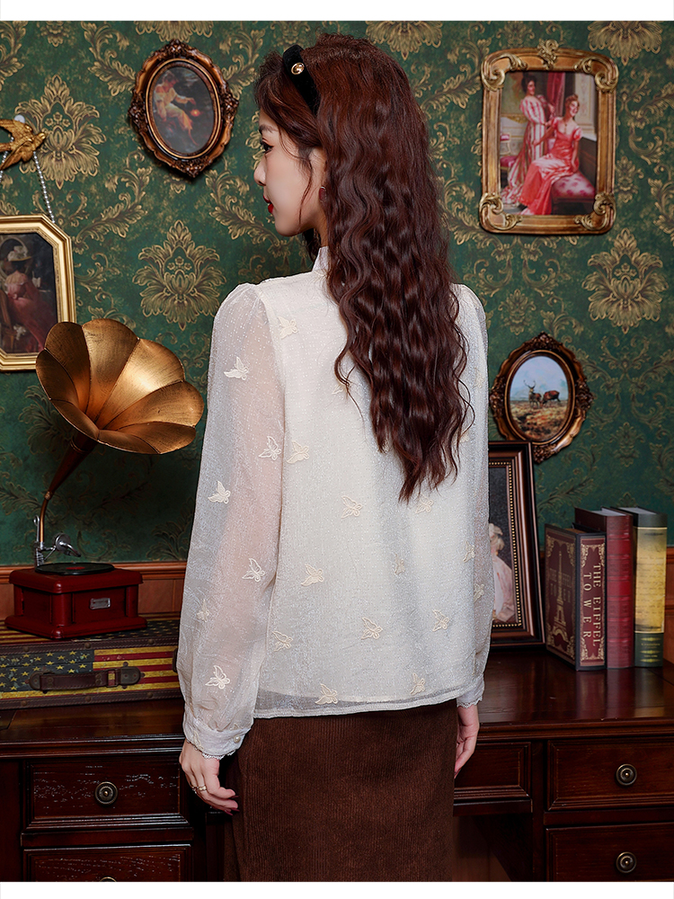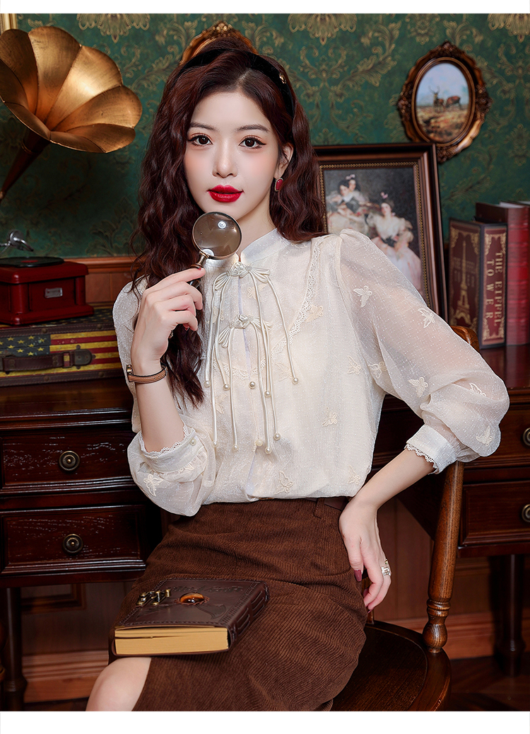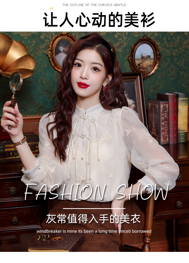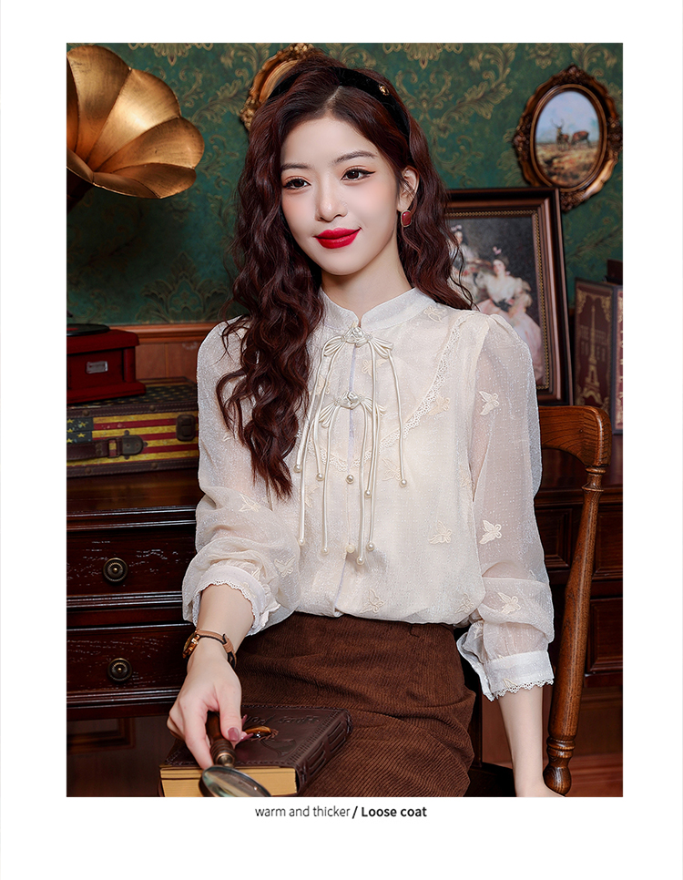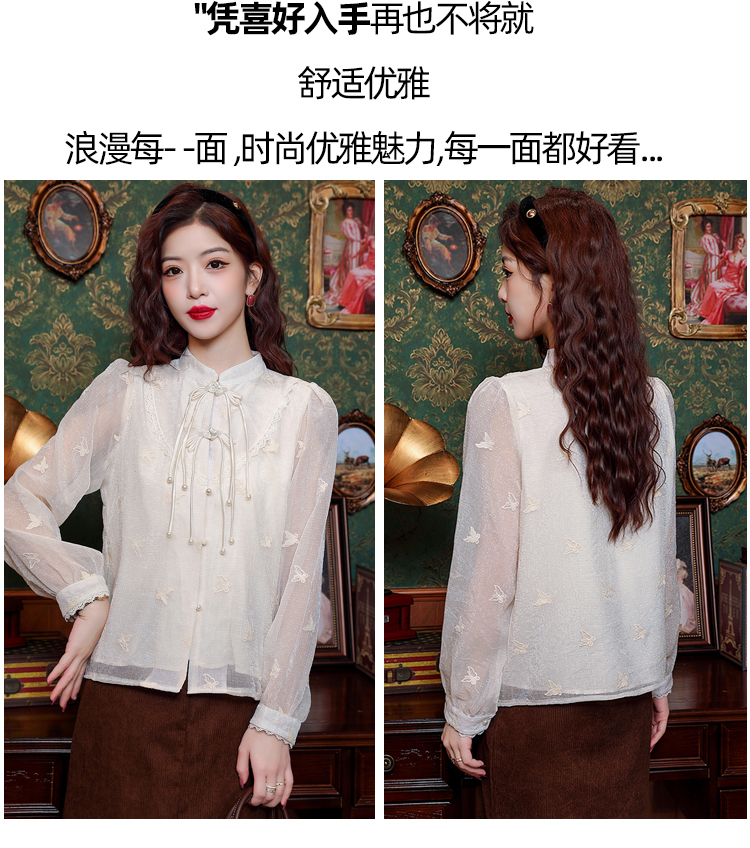 PF1437#刺绣新中式国风流苏衬衫女 新款复古设计感盘扣上衣