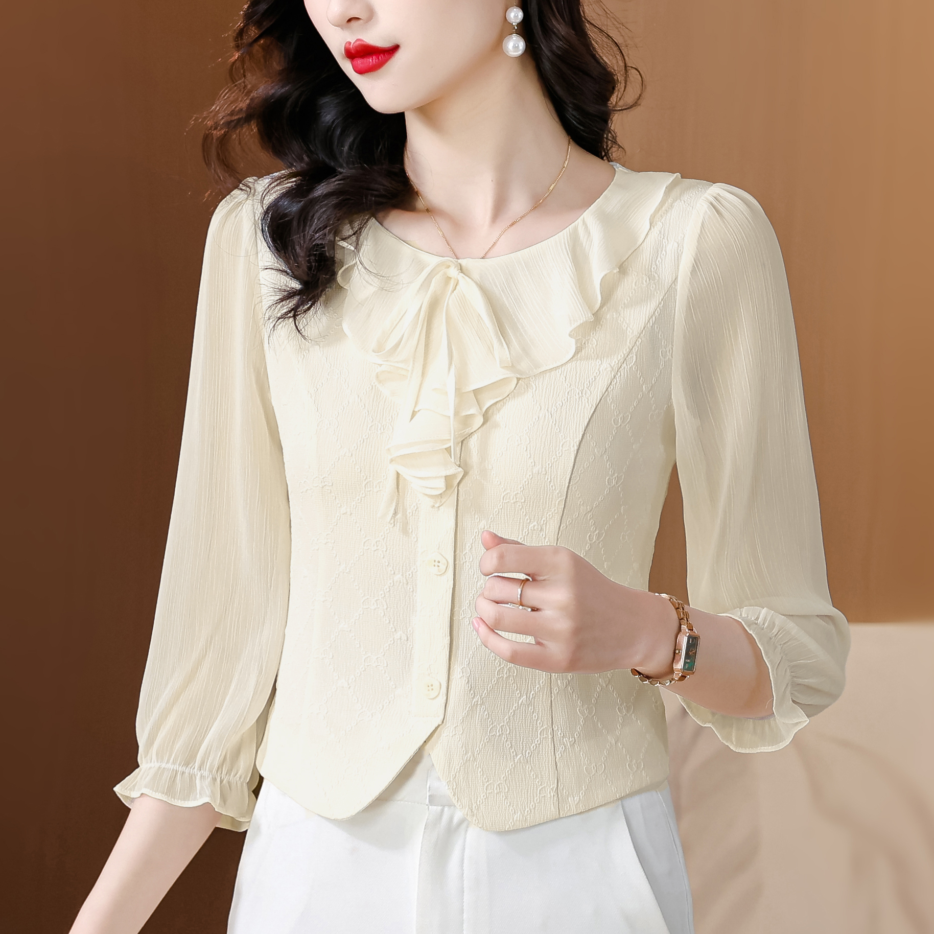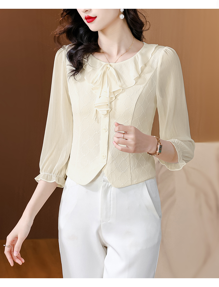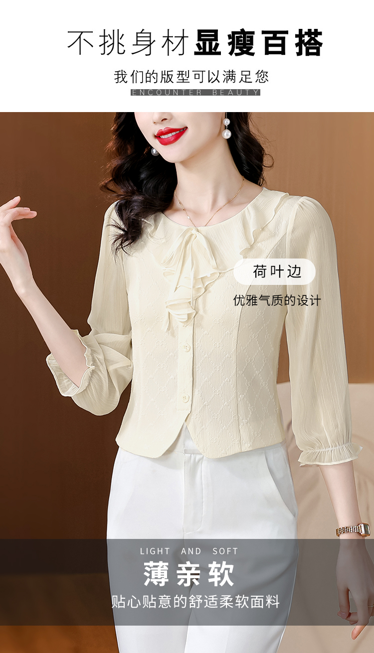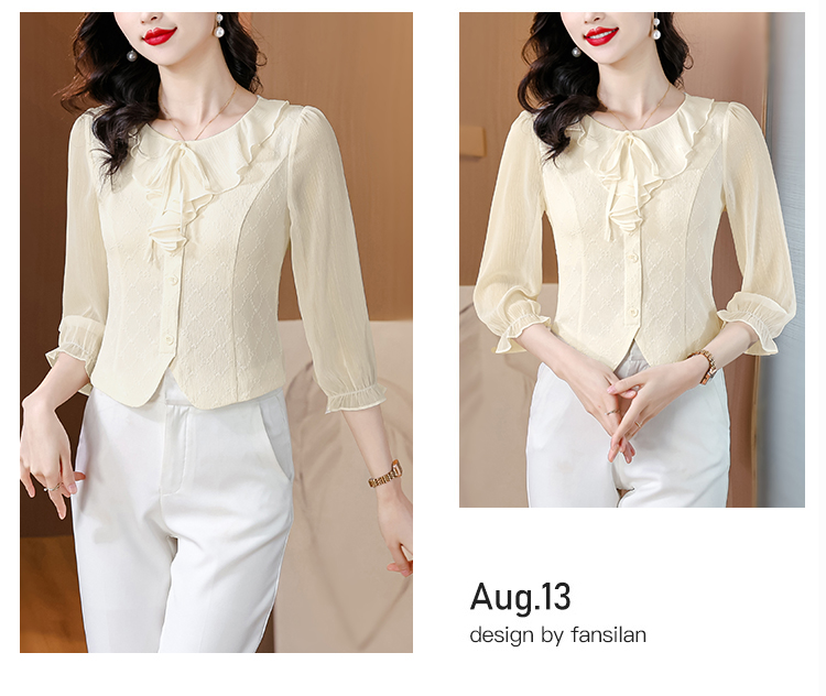 PF1460#法式荷叶边七分袖雪纺衫女别致漂亮显瘦短款上衣