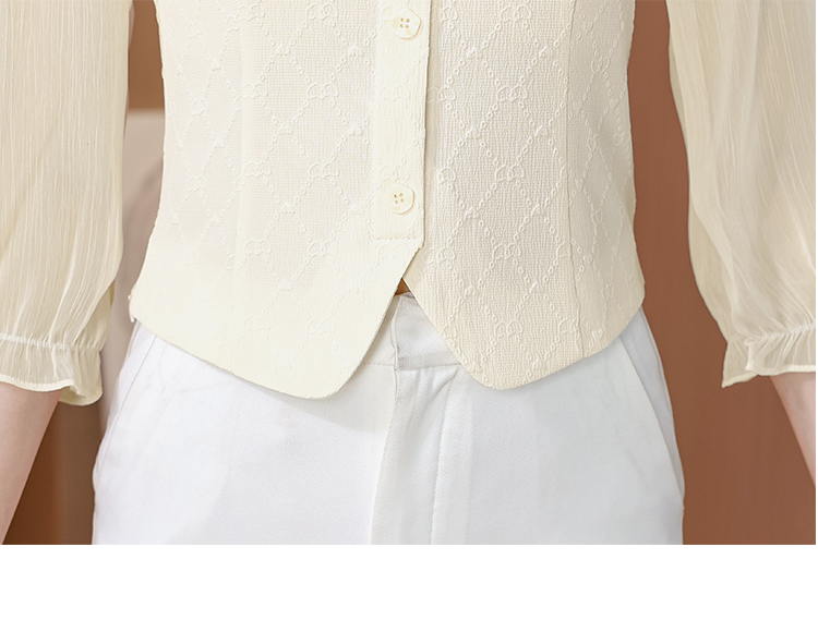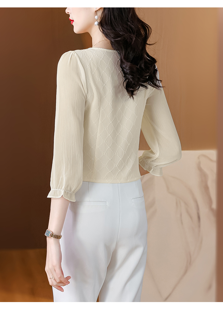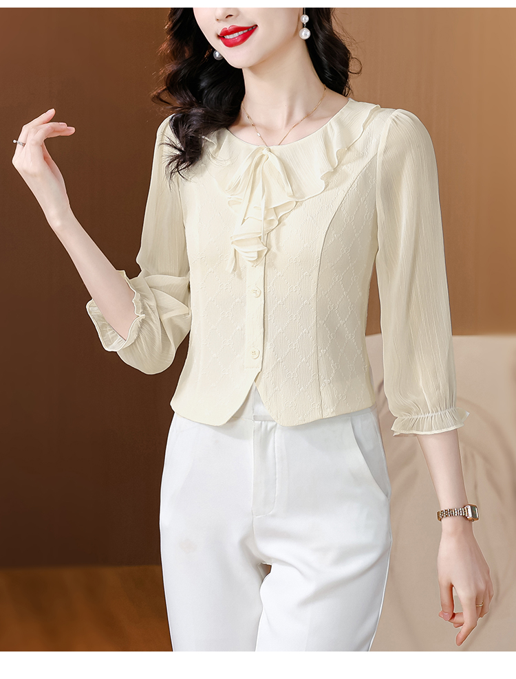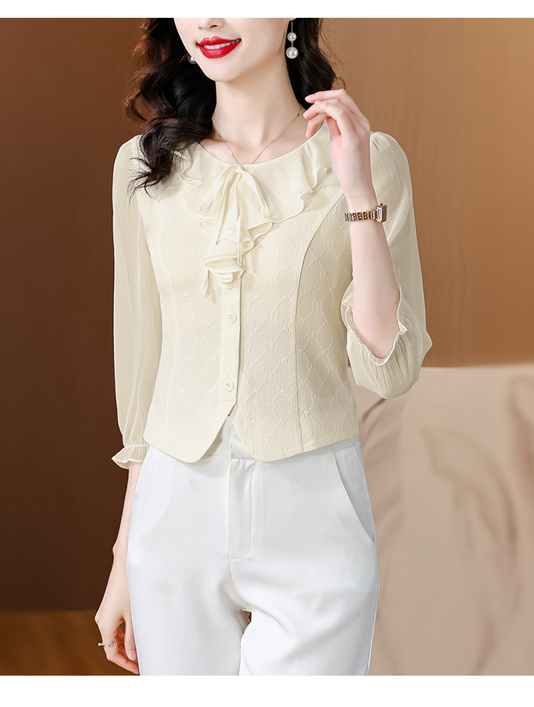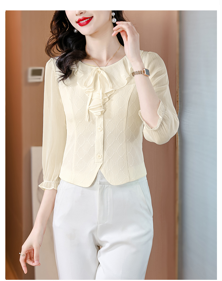 PF1460#法式荷叶边七分袖雪纺衫女别致漂亮显瘦短款上衣