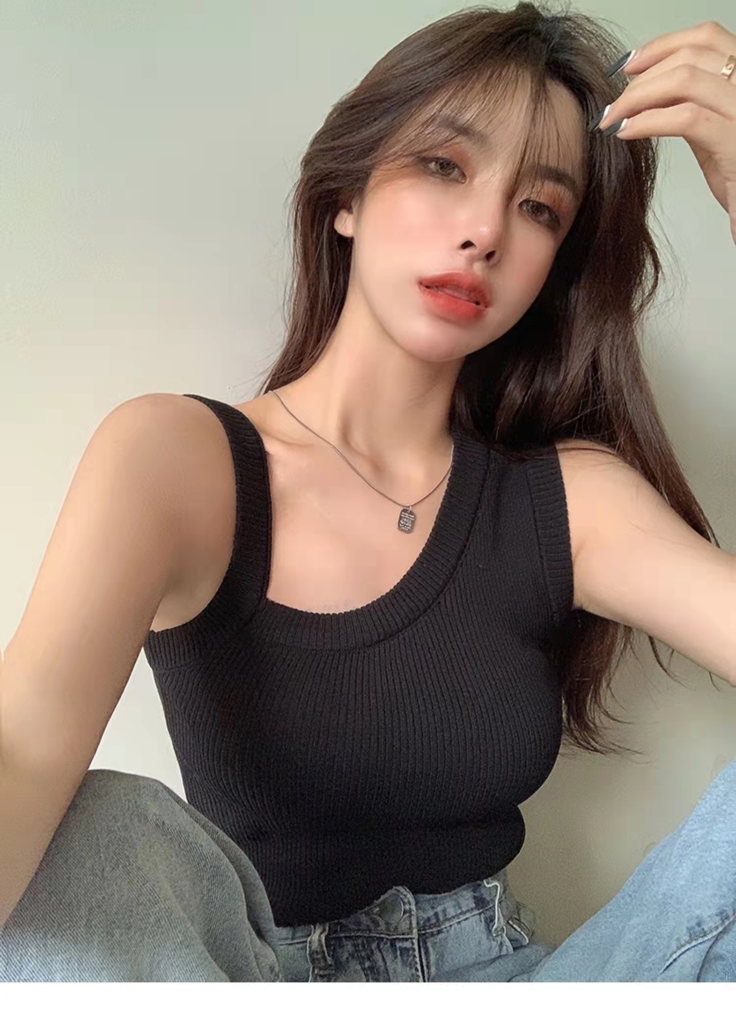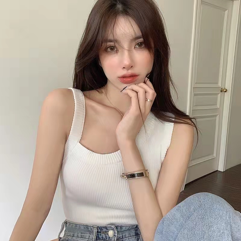 PF1487#设计感小众不规则吊带背心女夏外穿针织内搭打底露肩辣妹无袖上衣