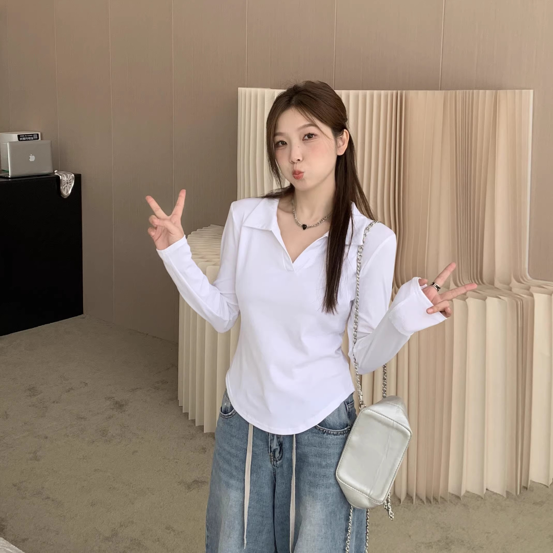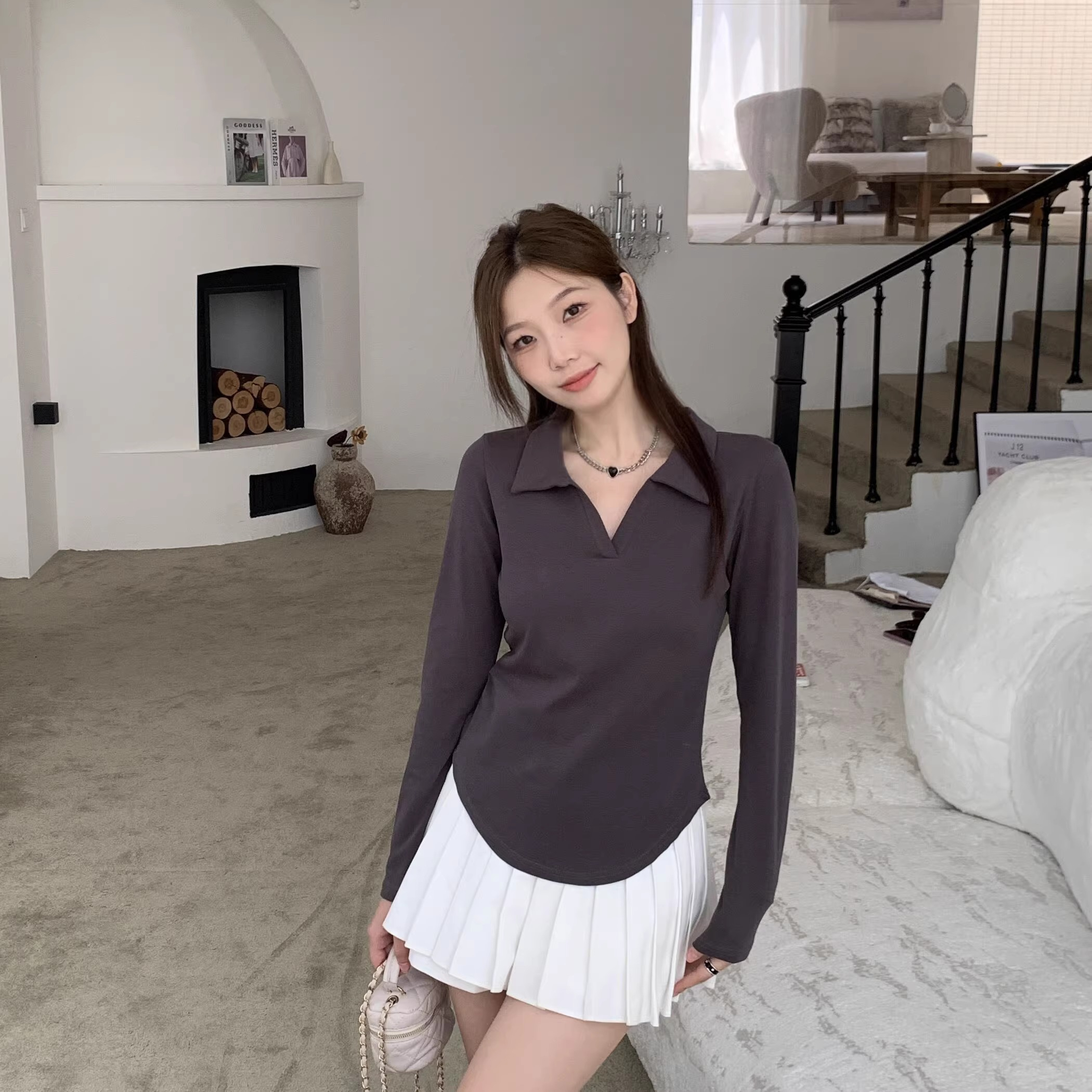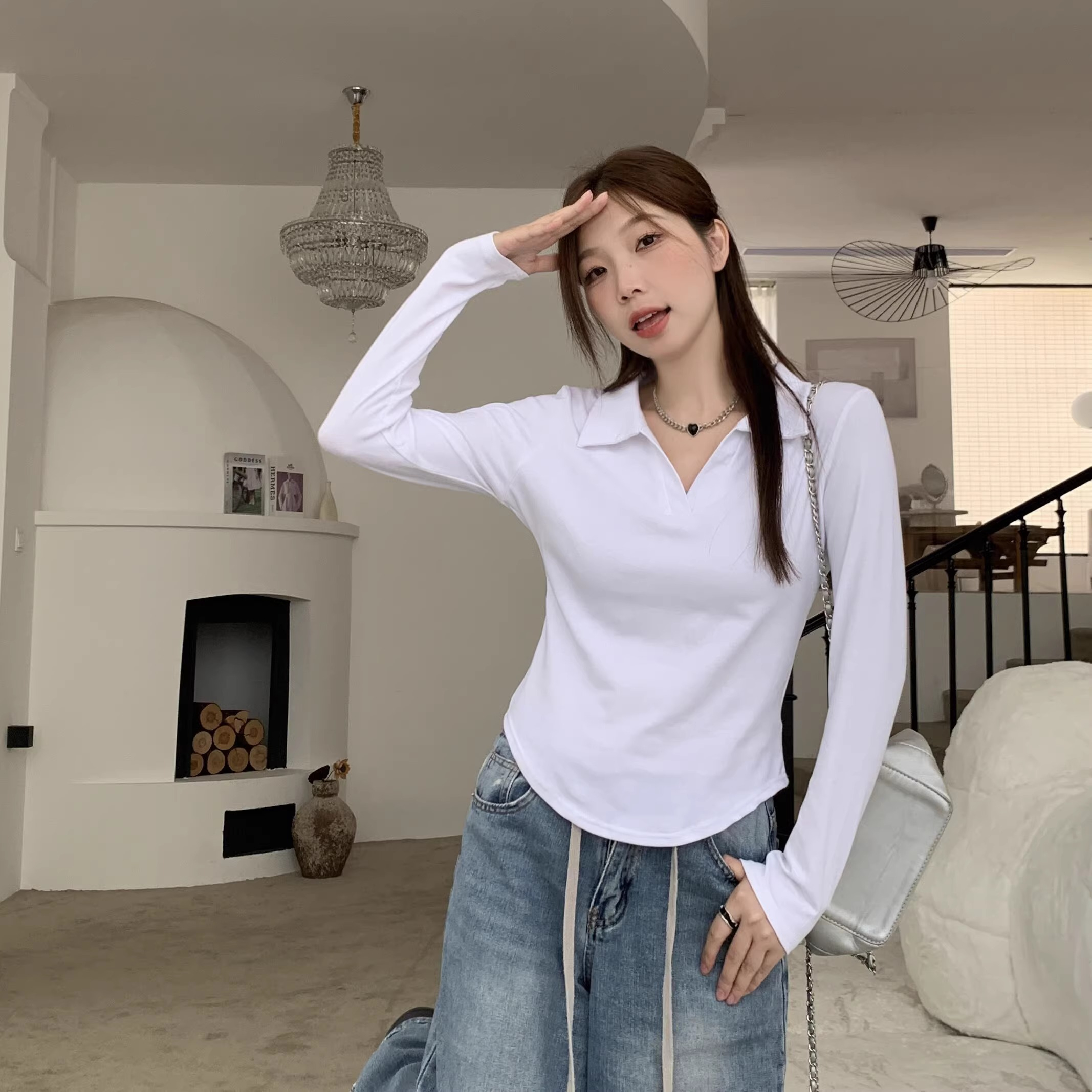 PF1518#大码胖mm 女t恤百搭修身多巴胺正肩打底长袖遮肉显瘦上衣