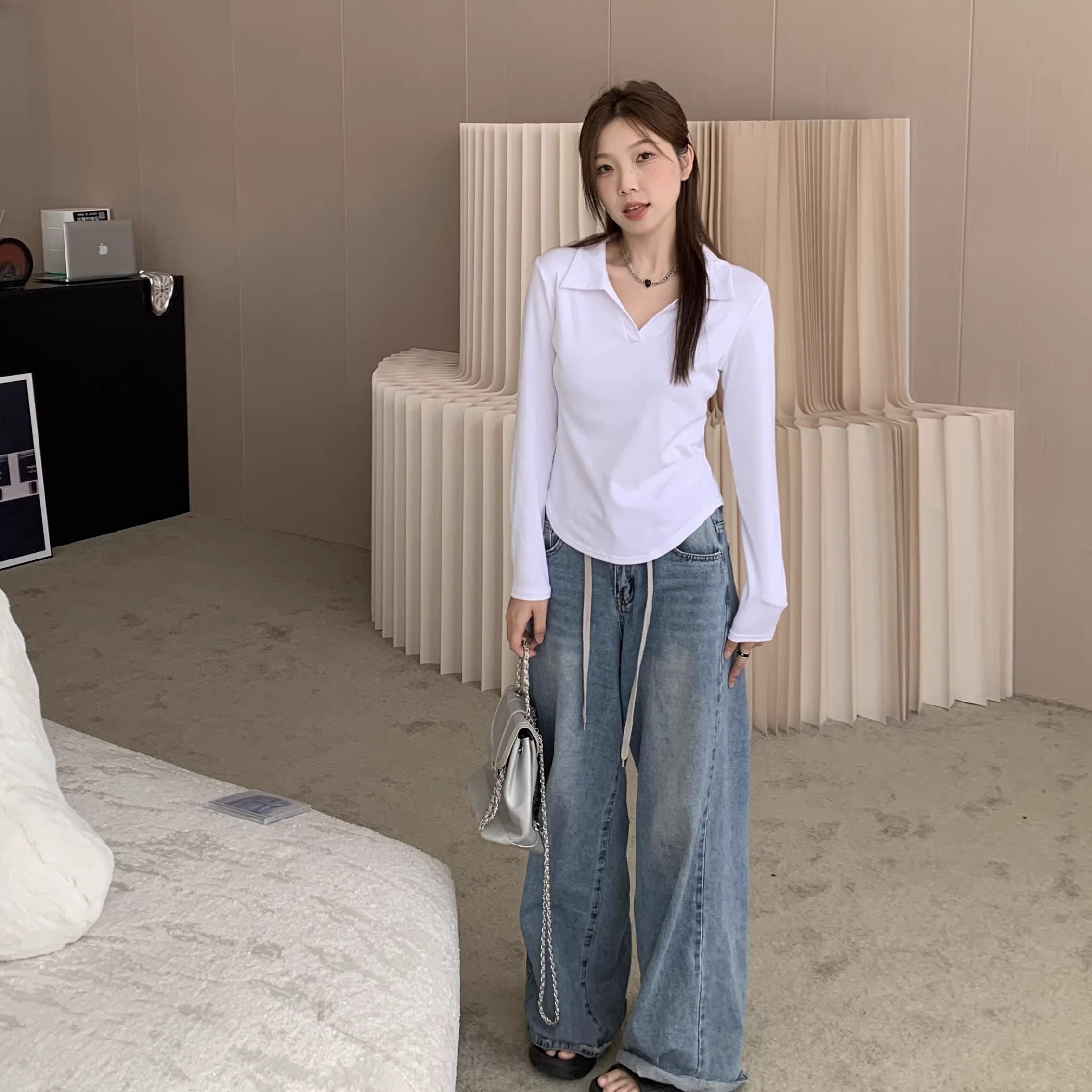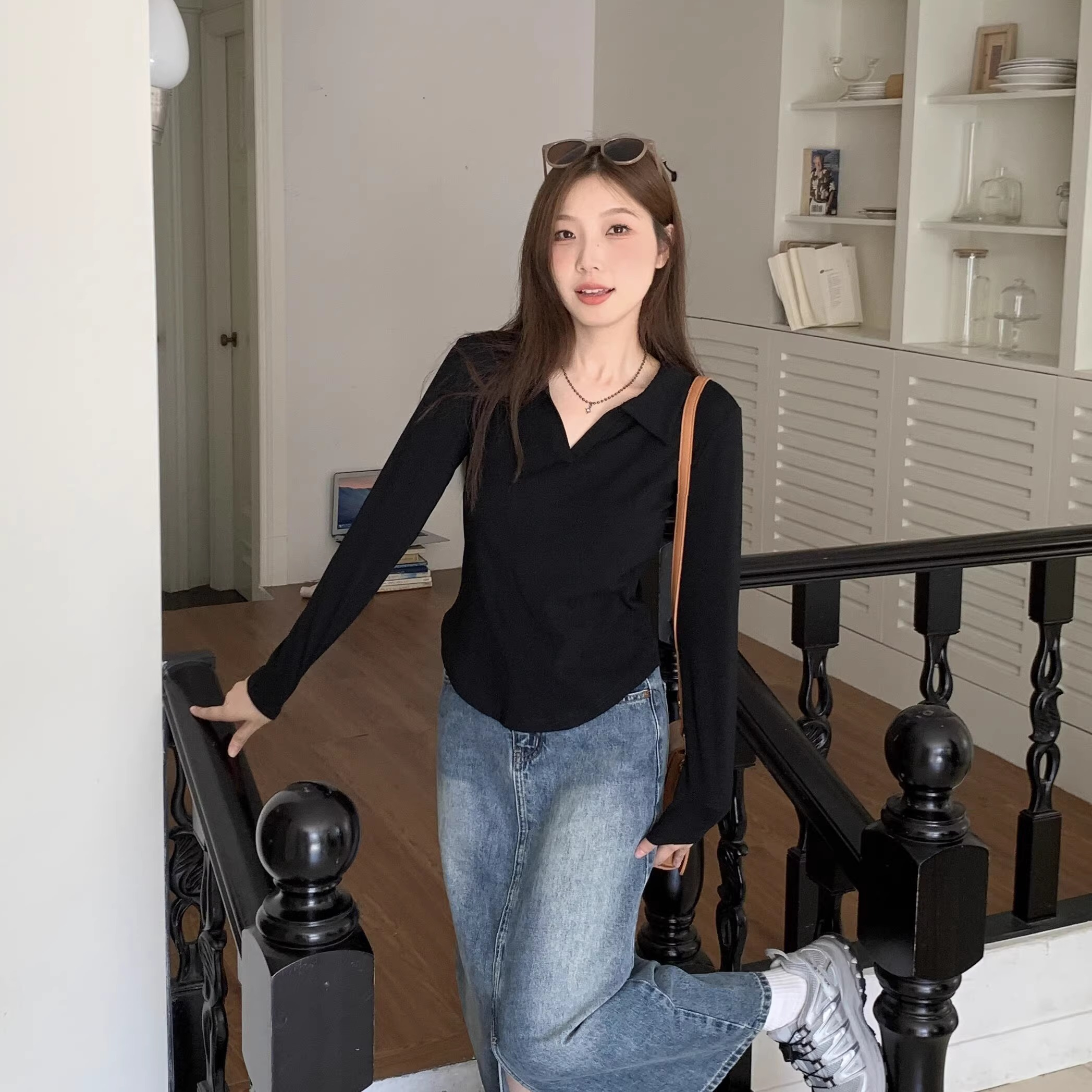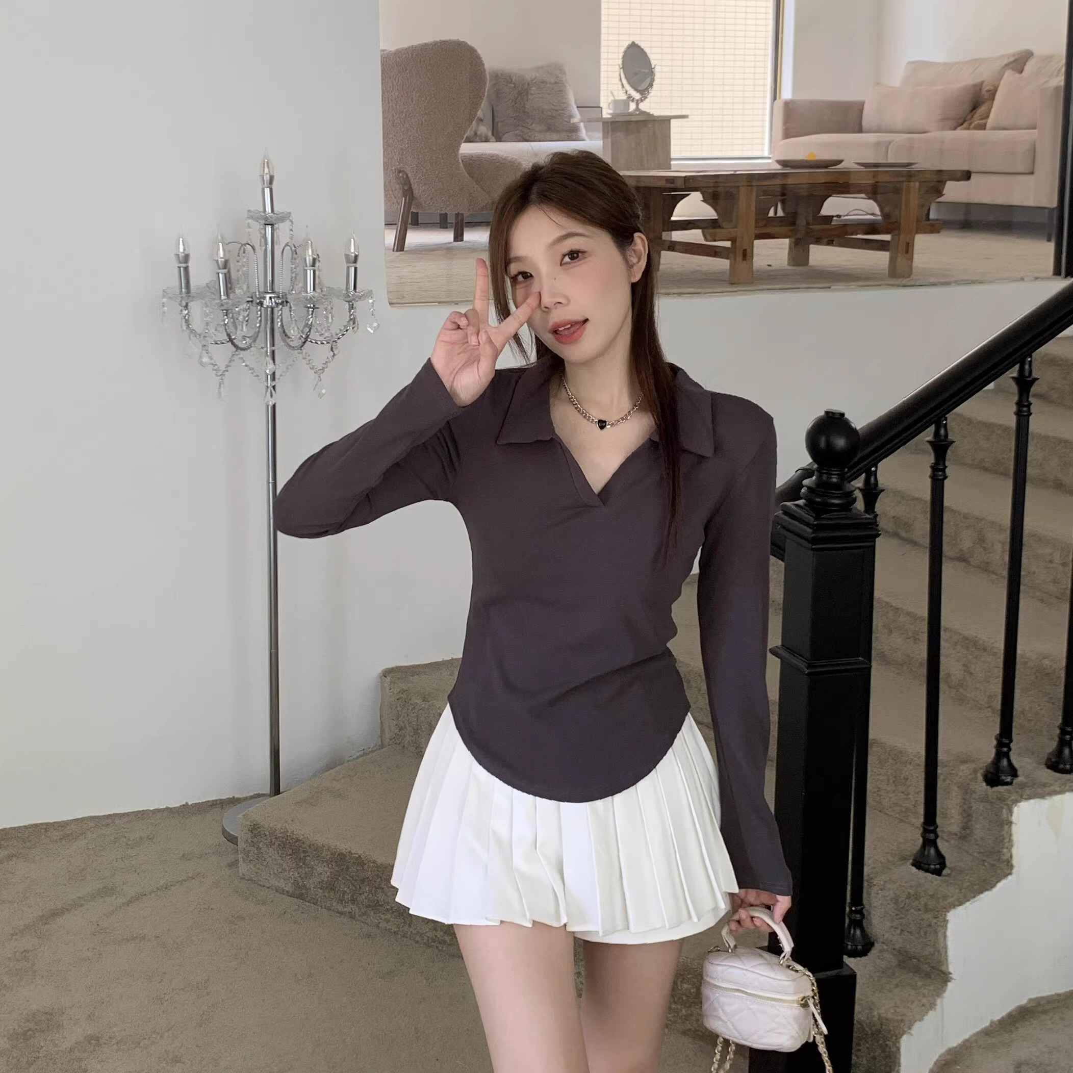 PF1518#大码胖mm 女t恤百搭修身多巴胺正肩打底长袖遮肉显瘦上衣