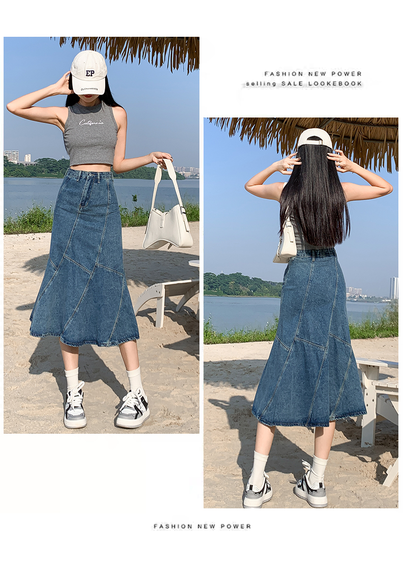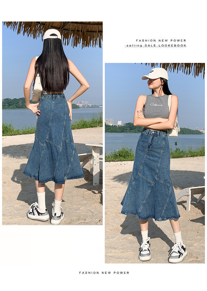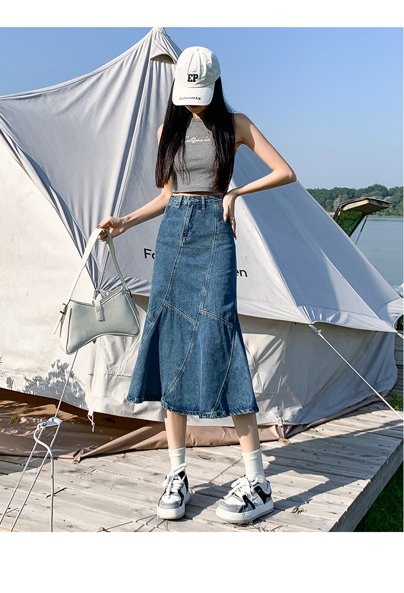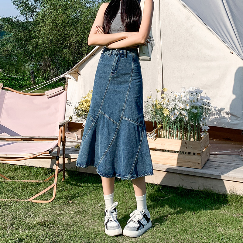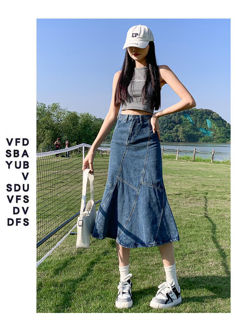 PF1524#牛仔裙 新款伞裙春秋设计感小众包臀裙鱼尾裙中长款半身裙