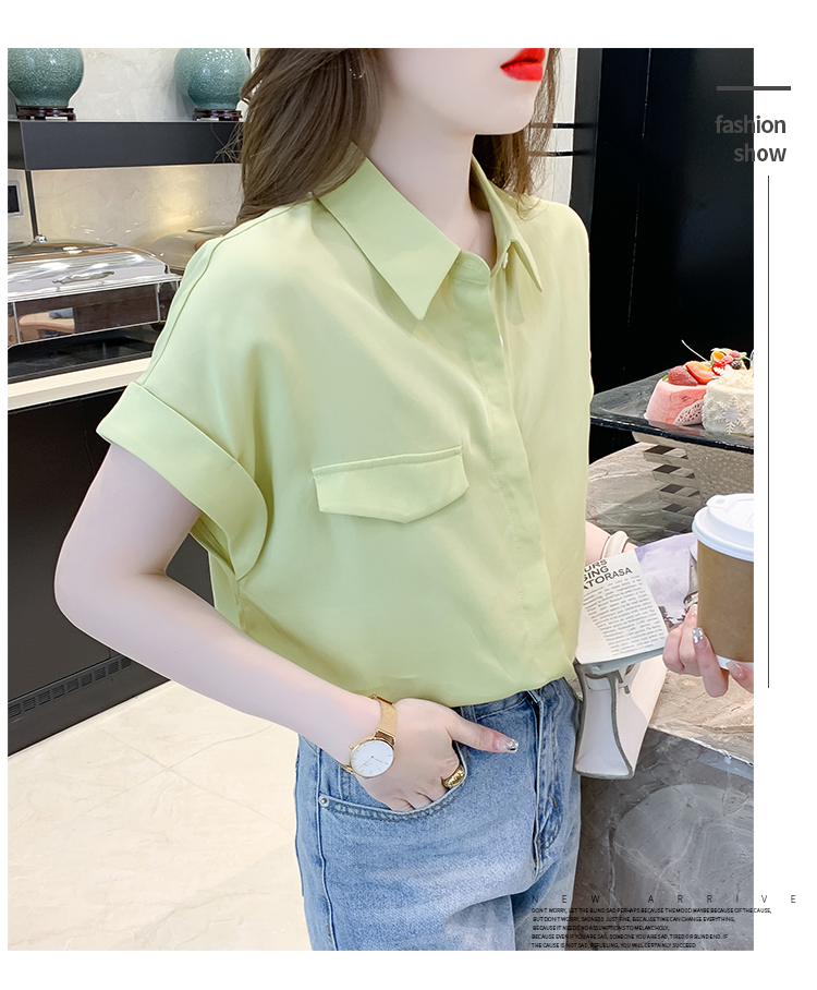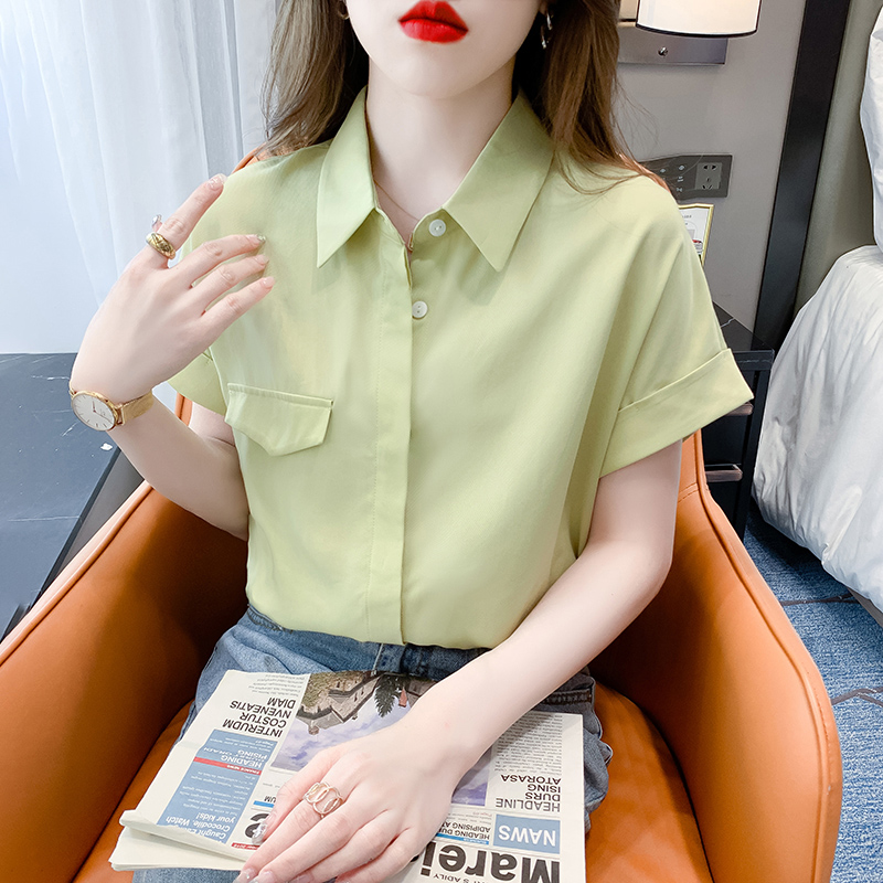 PF1552#天丝短袖衬衫女夏季薄款小翻领垂感衬衣设计感宽松显瘦上衣