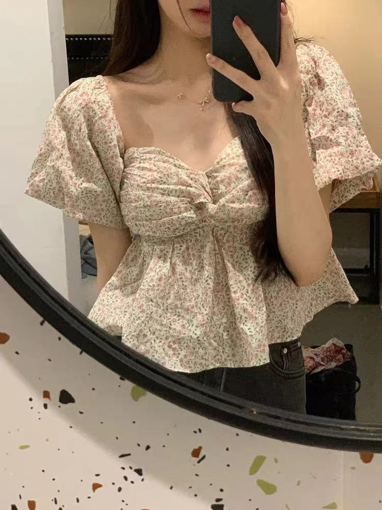 PF1563#一颗甜桃yikett 花与海篇 纯欲天花板 小碎花蓬蓬上衣