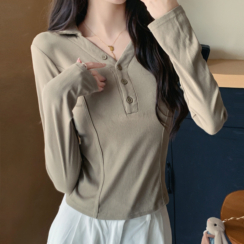 PF1568#大码女装 新款设计感鱼骨收腰显瘦长袖T恤