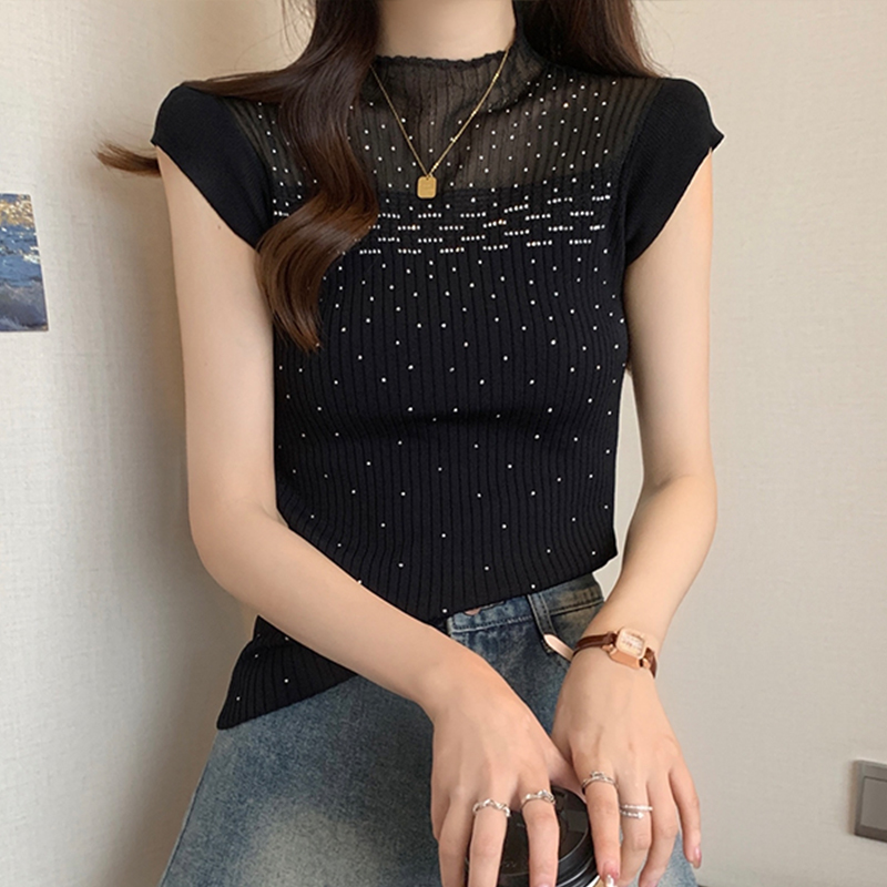 PF1578#大码女装春夏新款设计感外套内搭重工烫钻背心无袖针织衫上衣