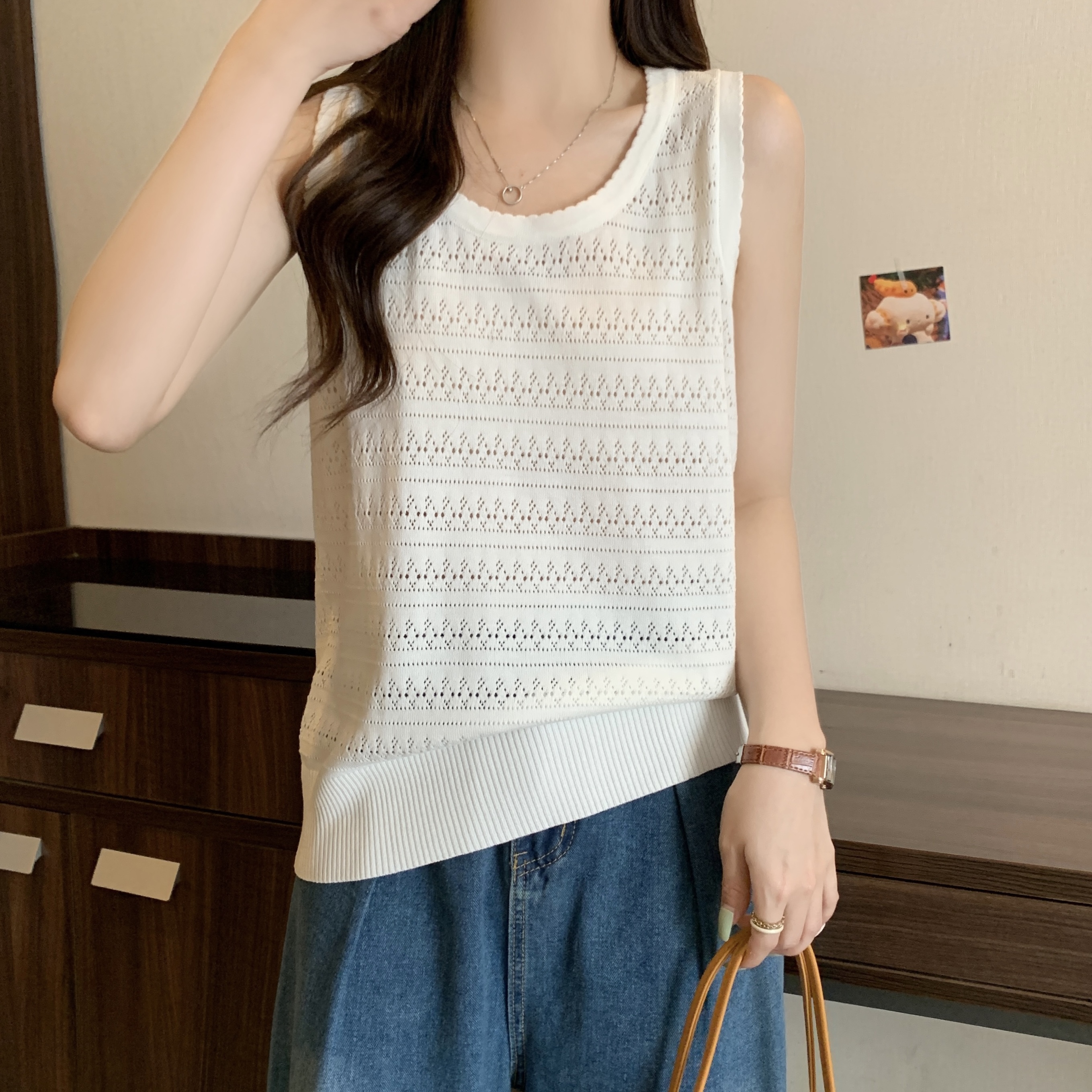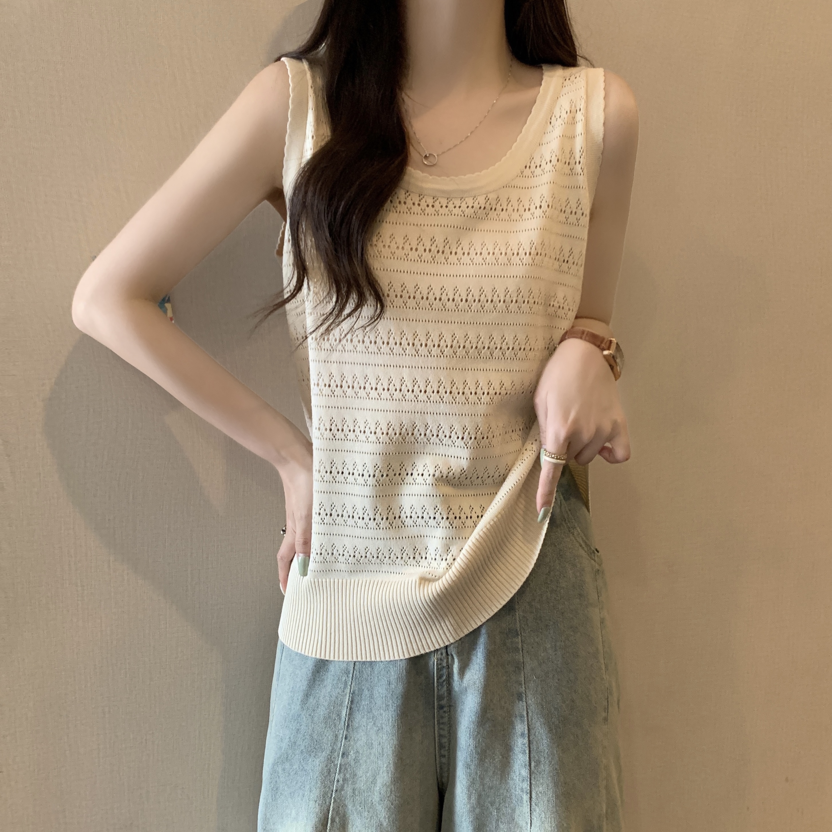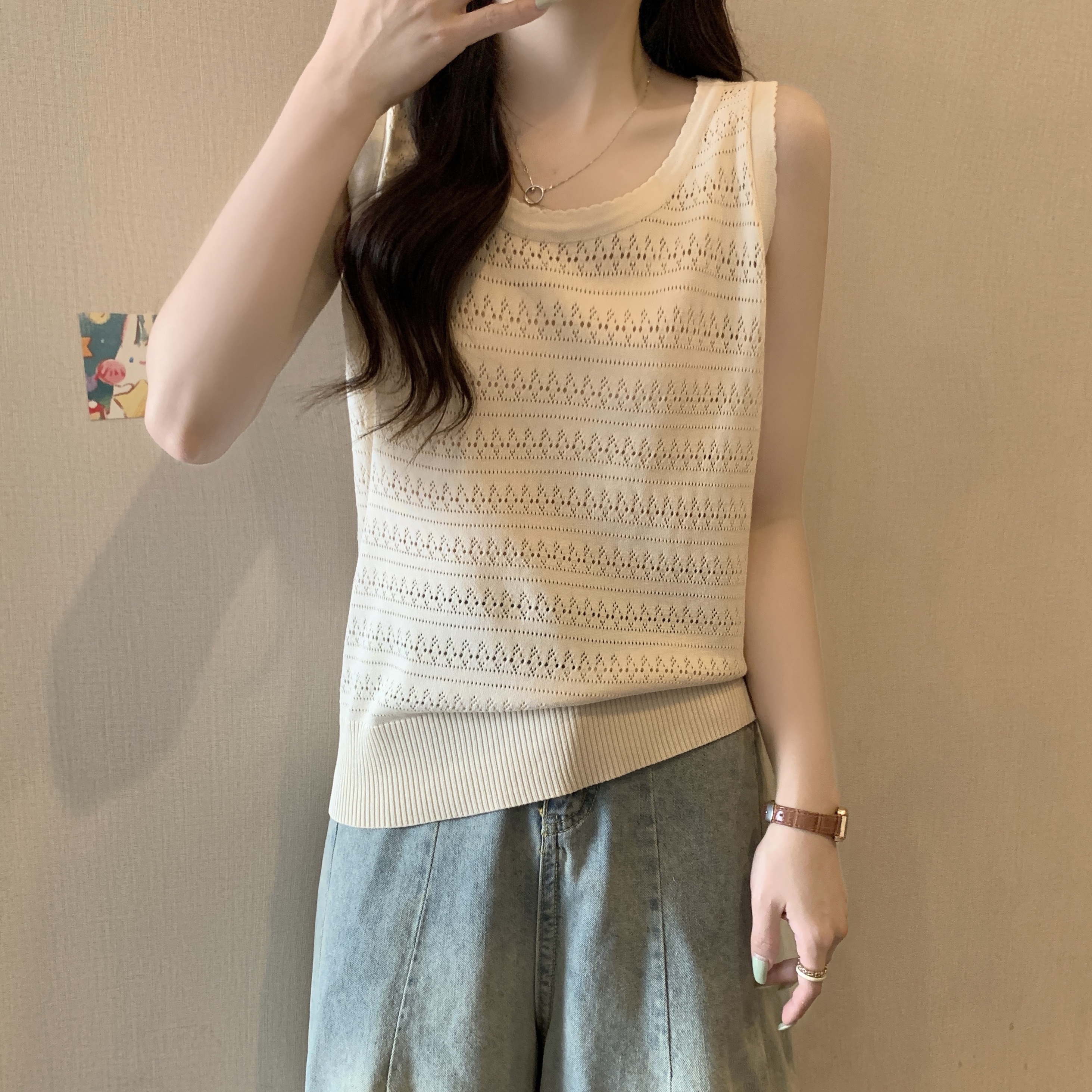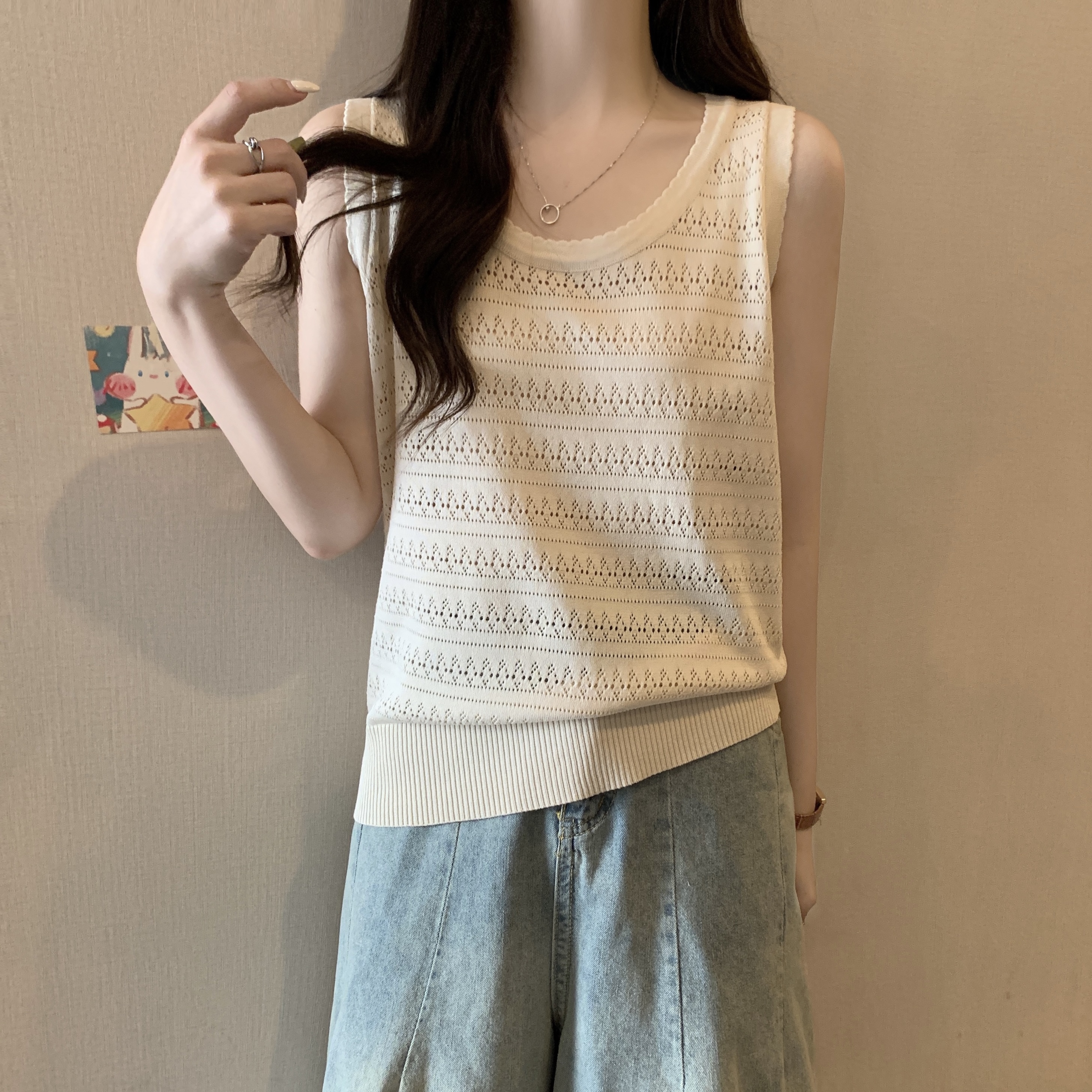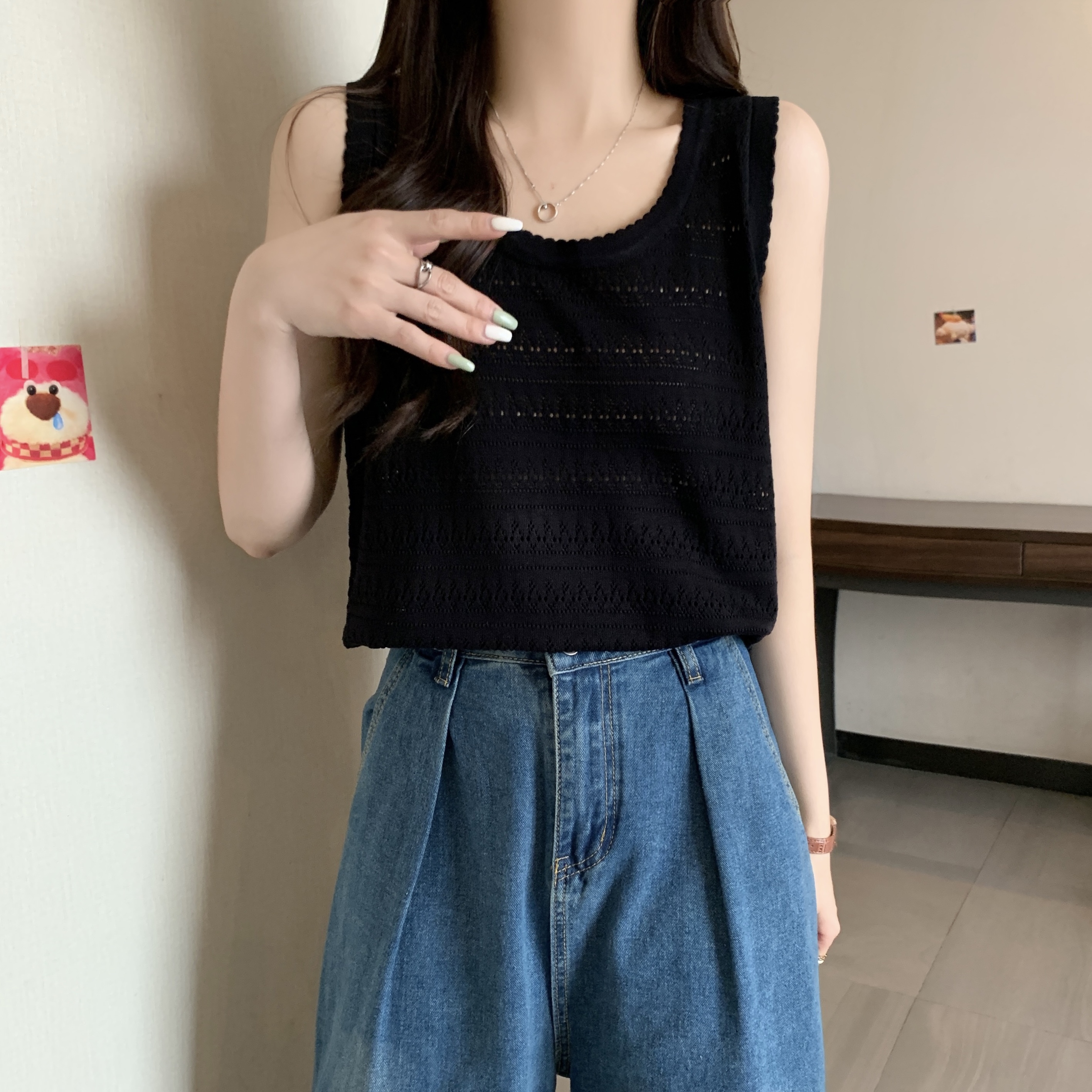 PF1579#大码女装 夏季新款设计感吊带背心打底衫针织镂空无袖上衣