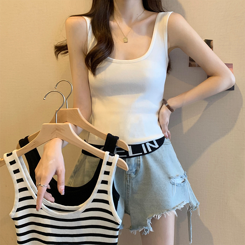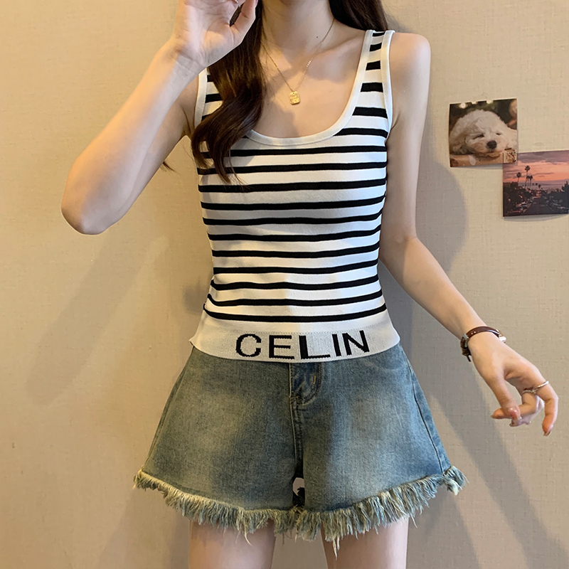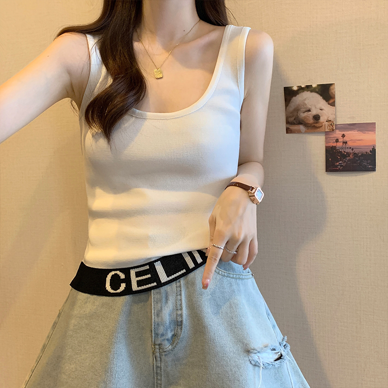 PF1587#大码女装春夏新款设计感外套内搭吊带背心无袖拼接针织衫上衣