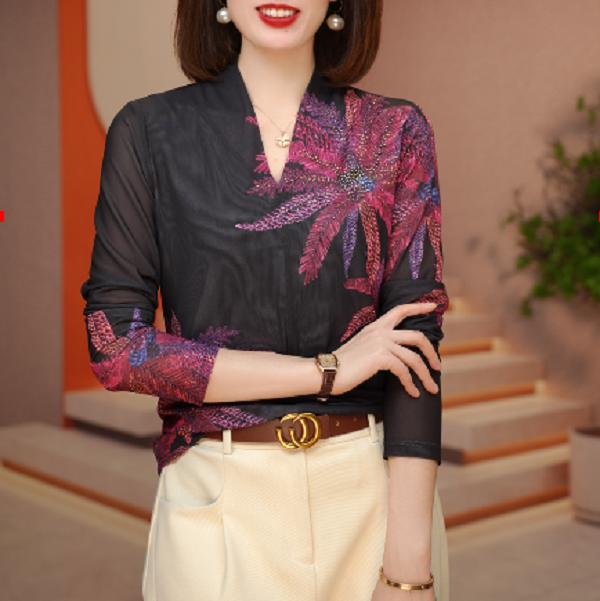 PF1654#新款肌肤纱早春小衫气质时尚百搭修身女士打底洋气上衣