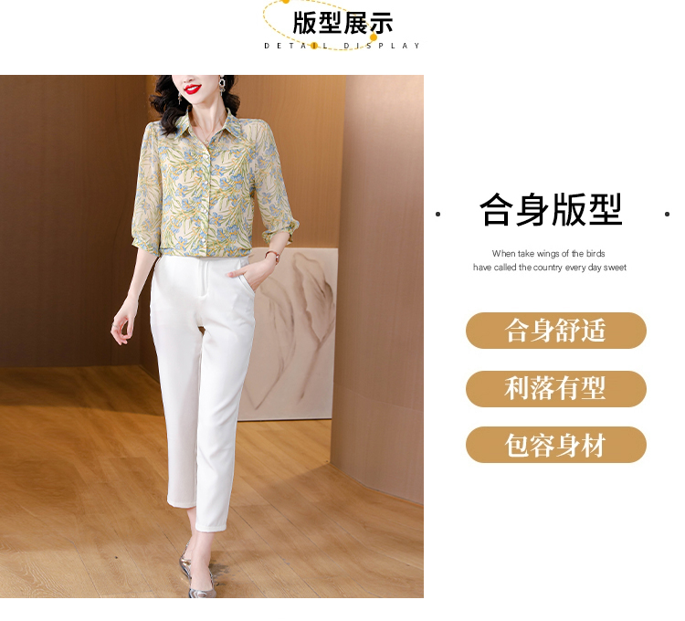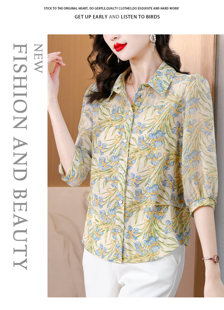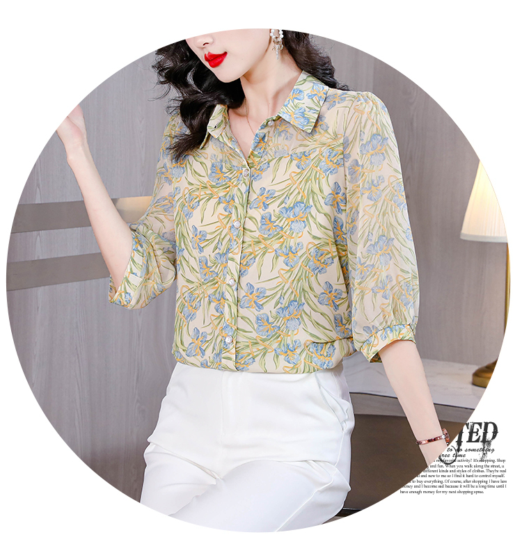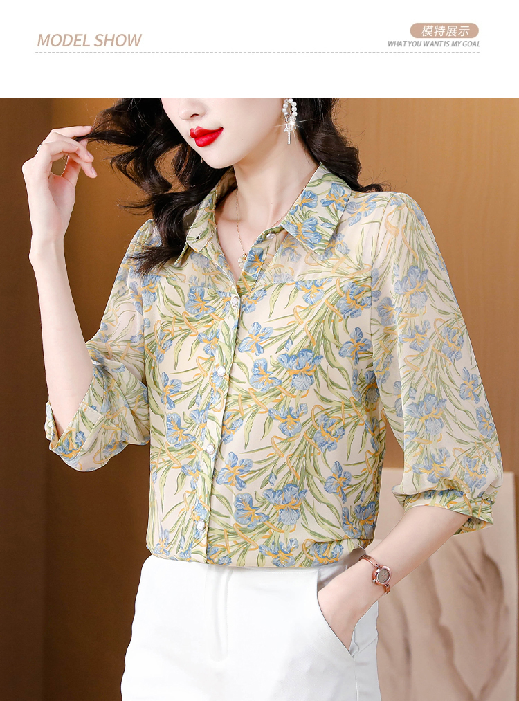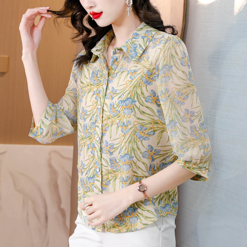 PF1659#夏装新款衬衫七分袖真丝衬衣小衫桑花绉印花上衣