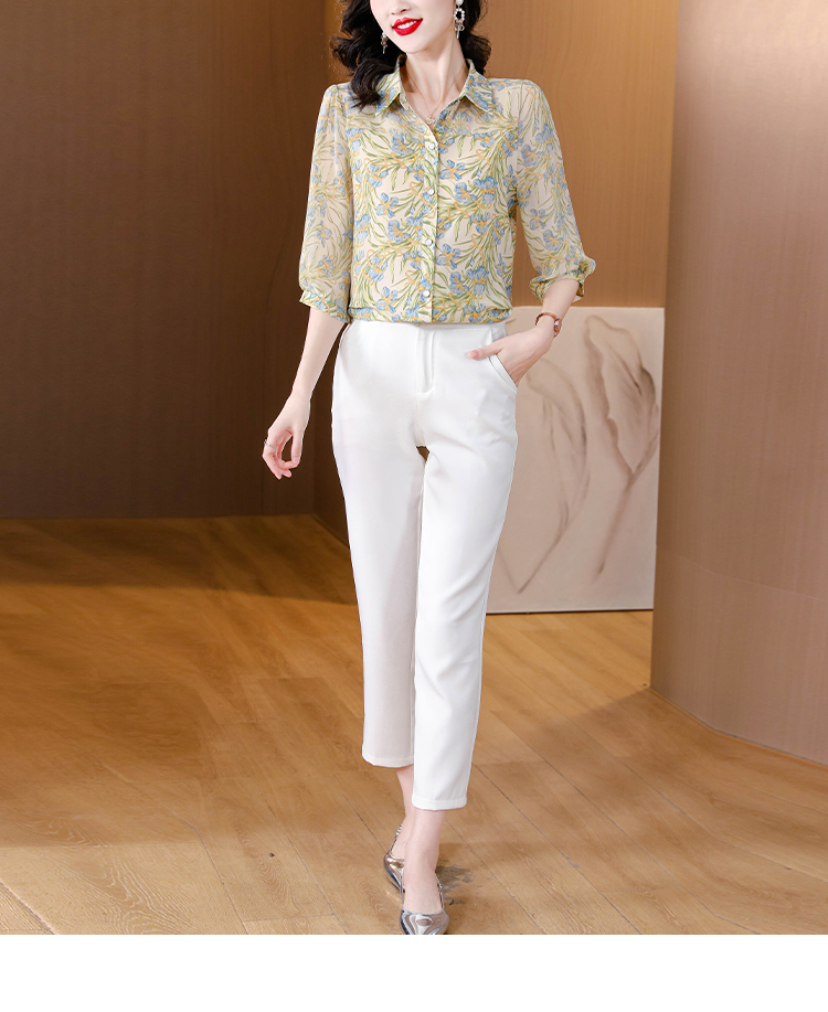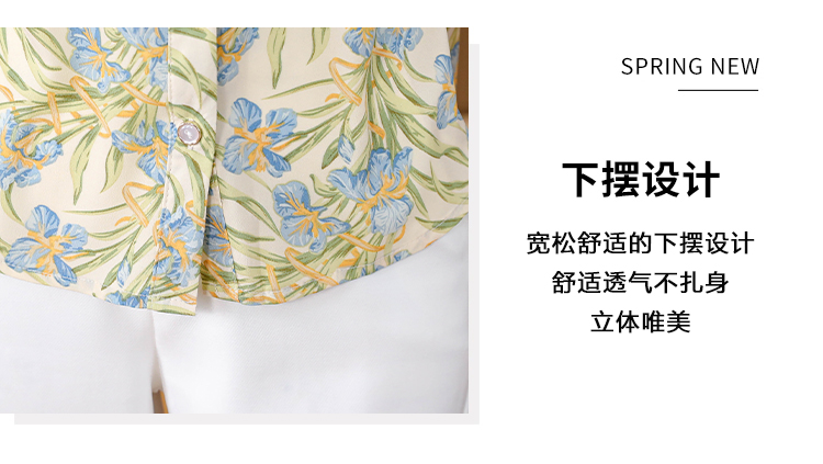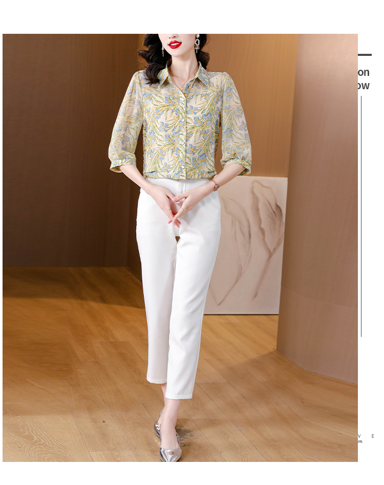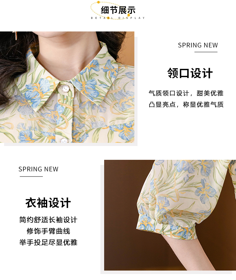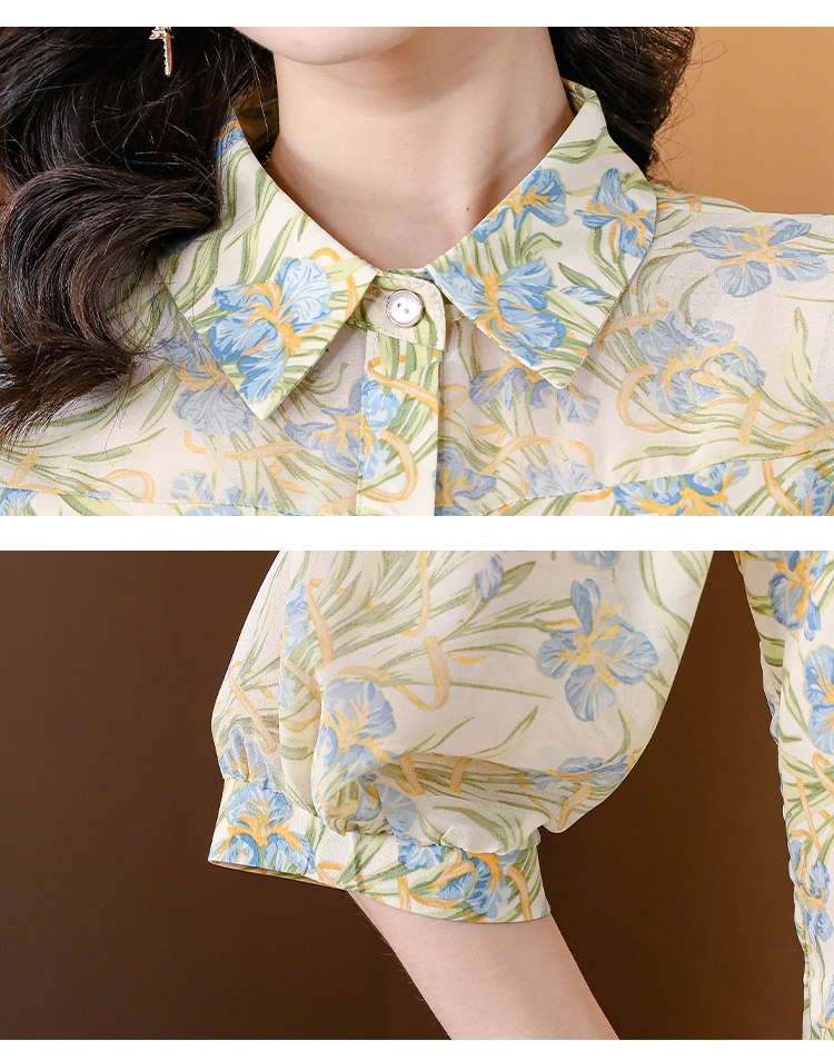 PF1659#夏装新款衬衫七分袖真丝衬衣小衫桑花绉印花上衣