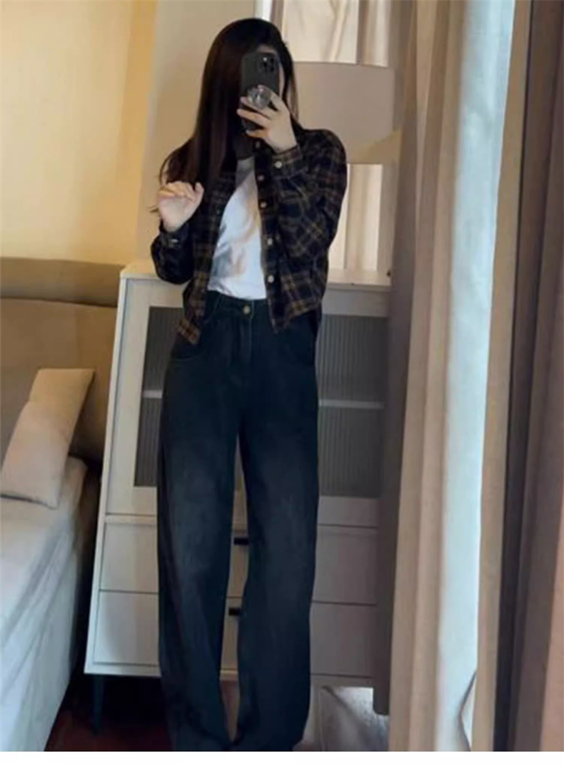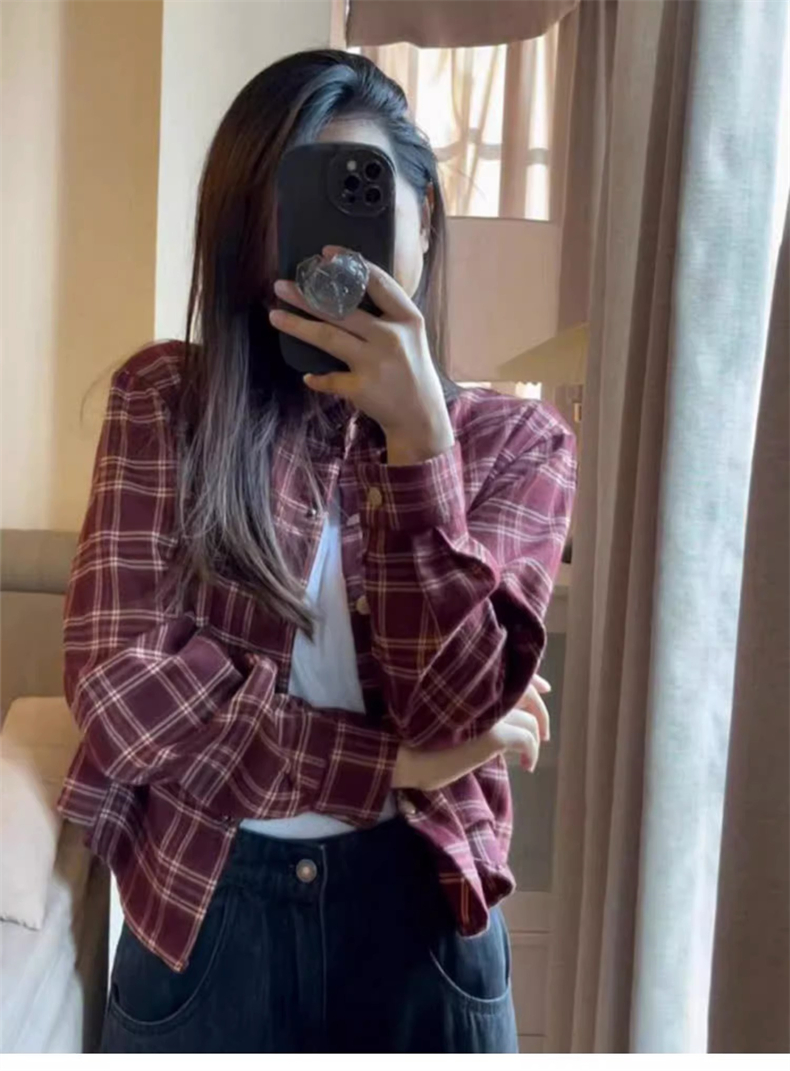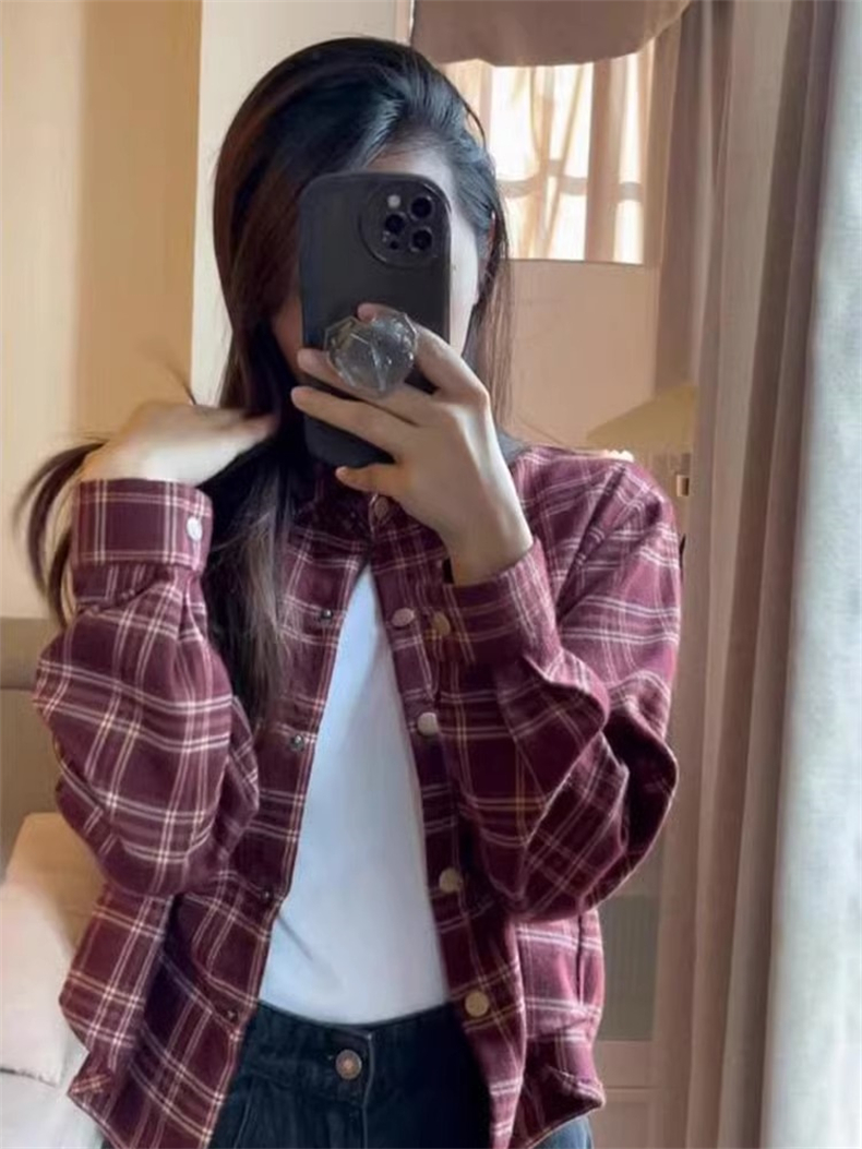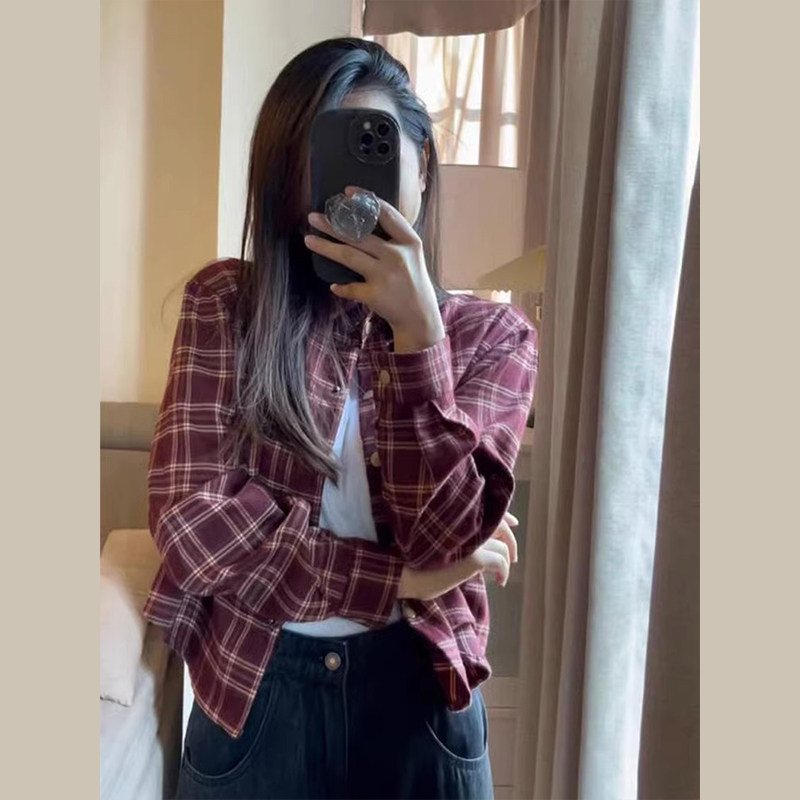 PF1675#法式内搭格子衬衫外套女2024早春新款短款衬衣设计感小众长袖上衣