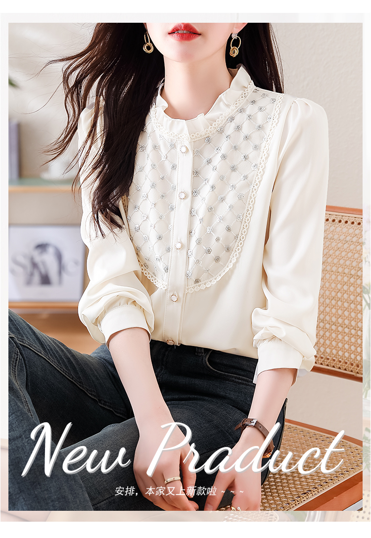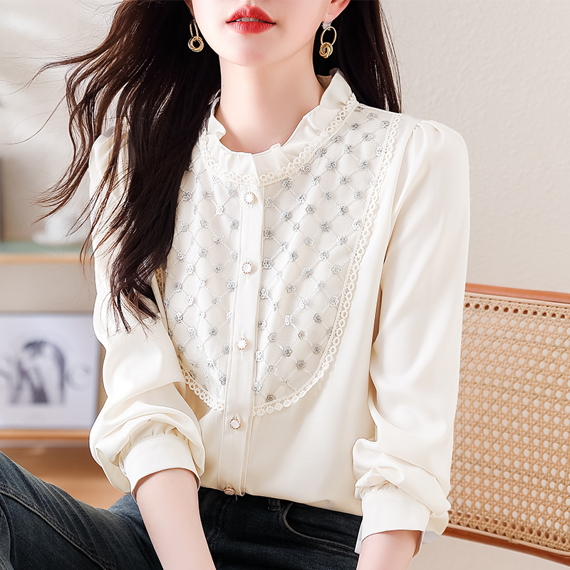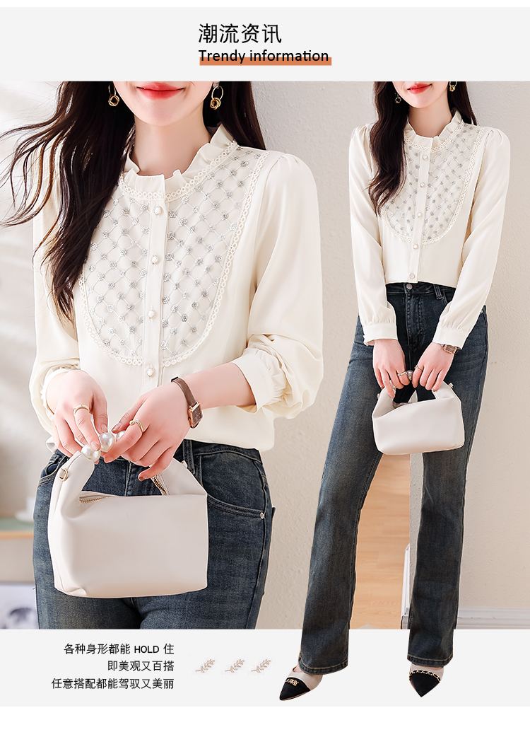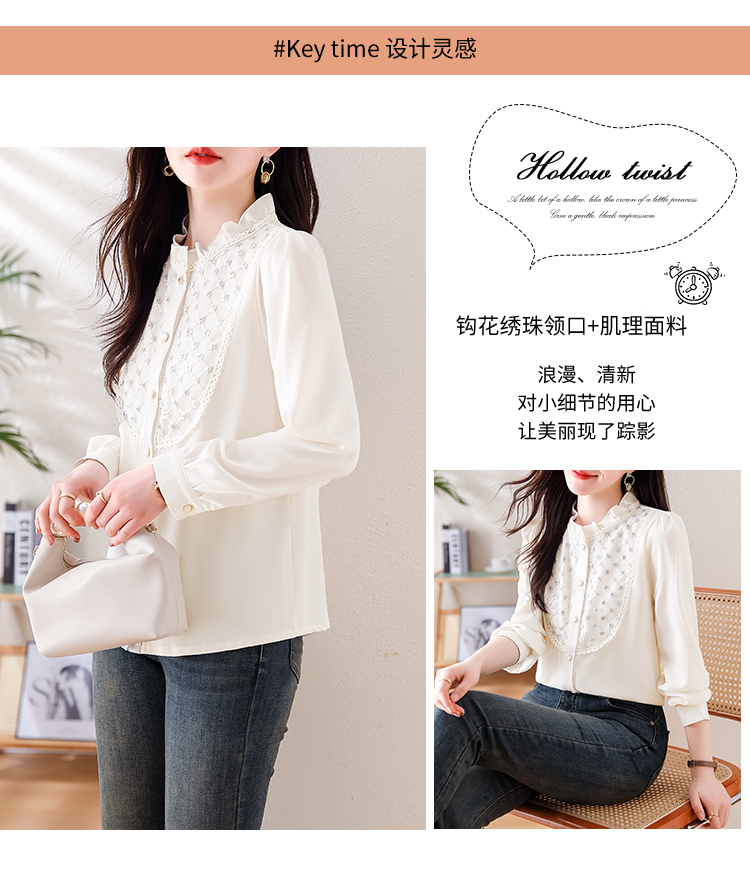 PF1693#高端轻奢定制设计感木耳边重工钉珠气质百搭衬衫小衫女