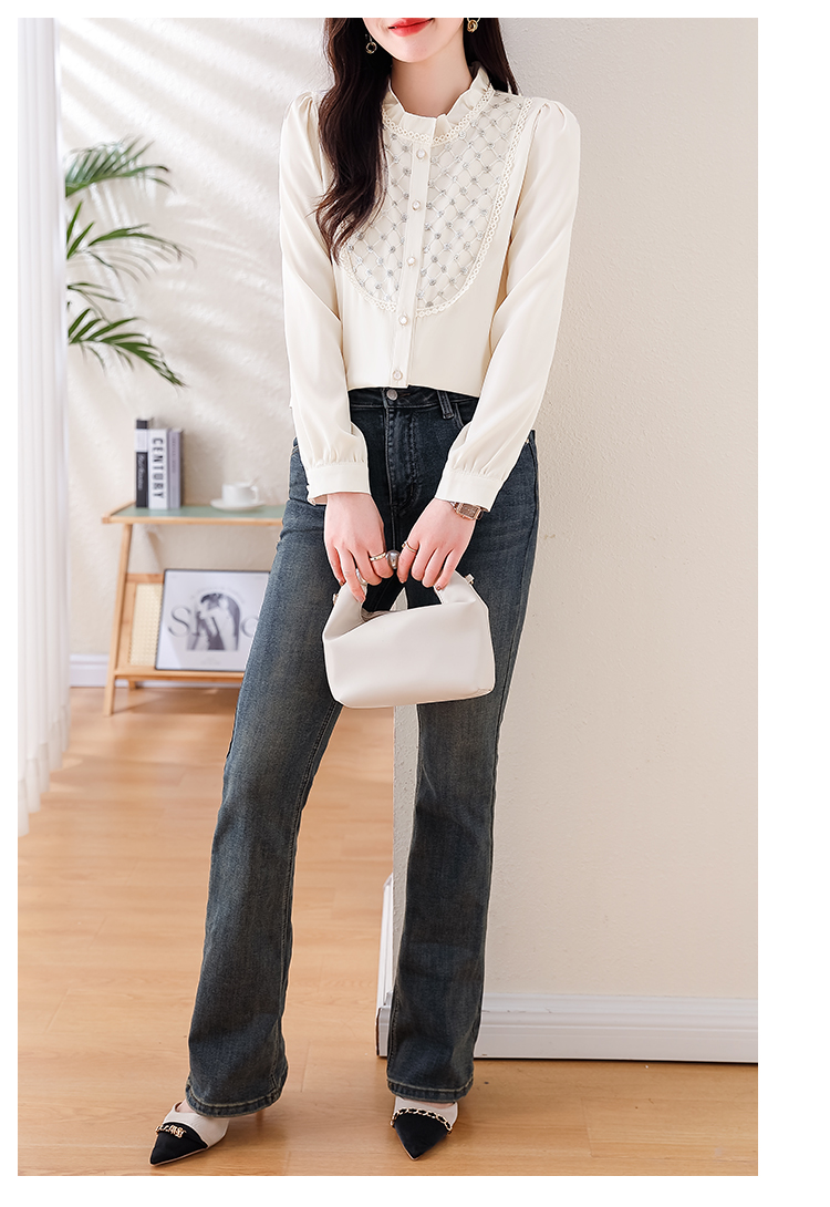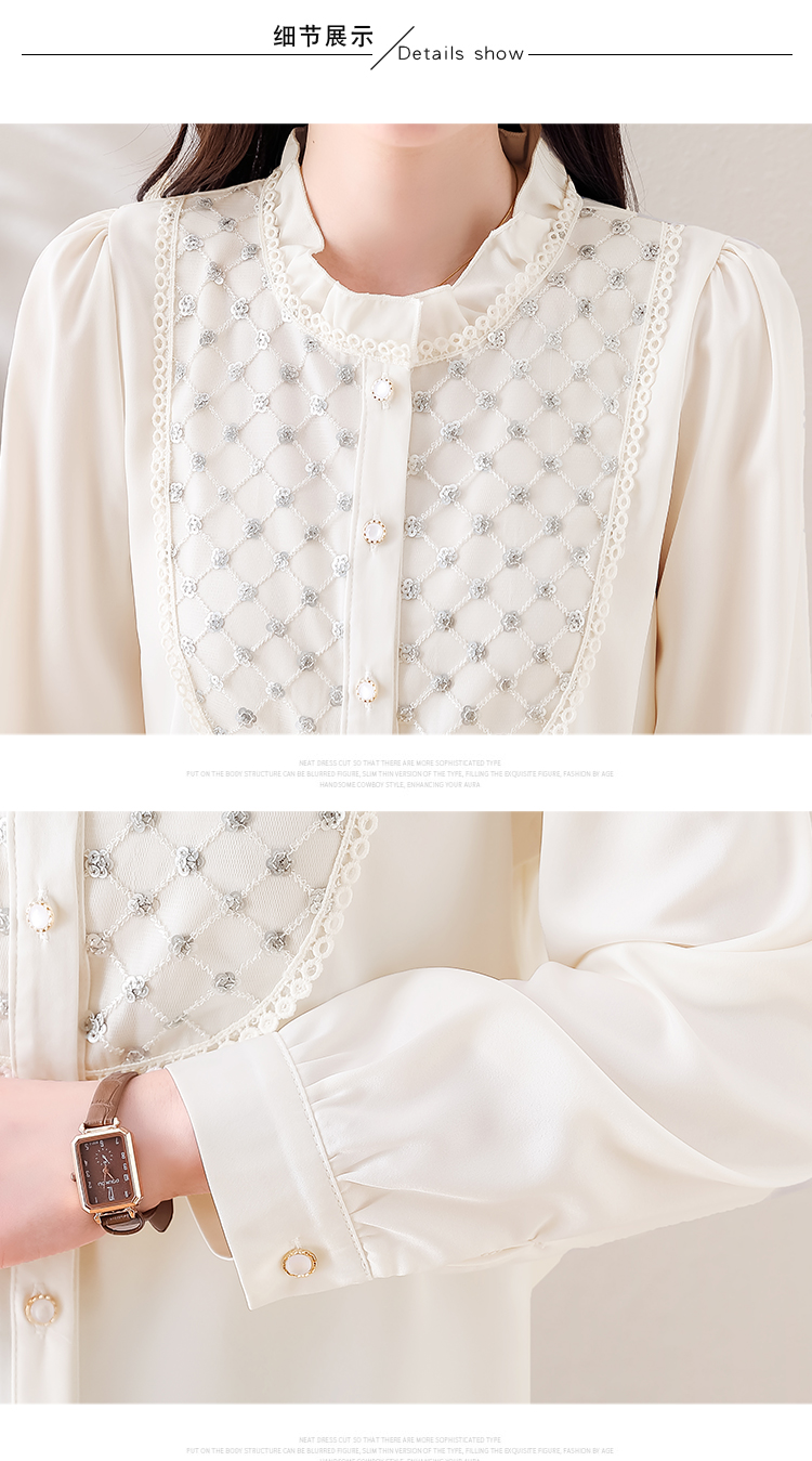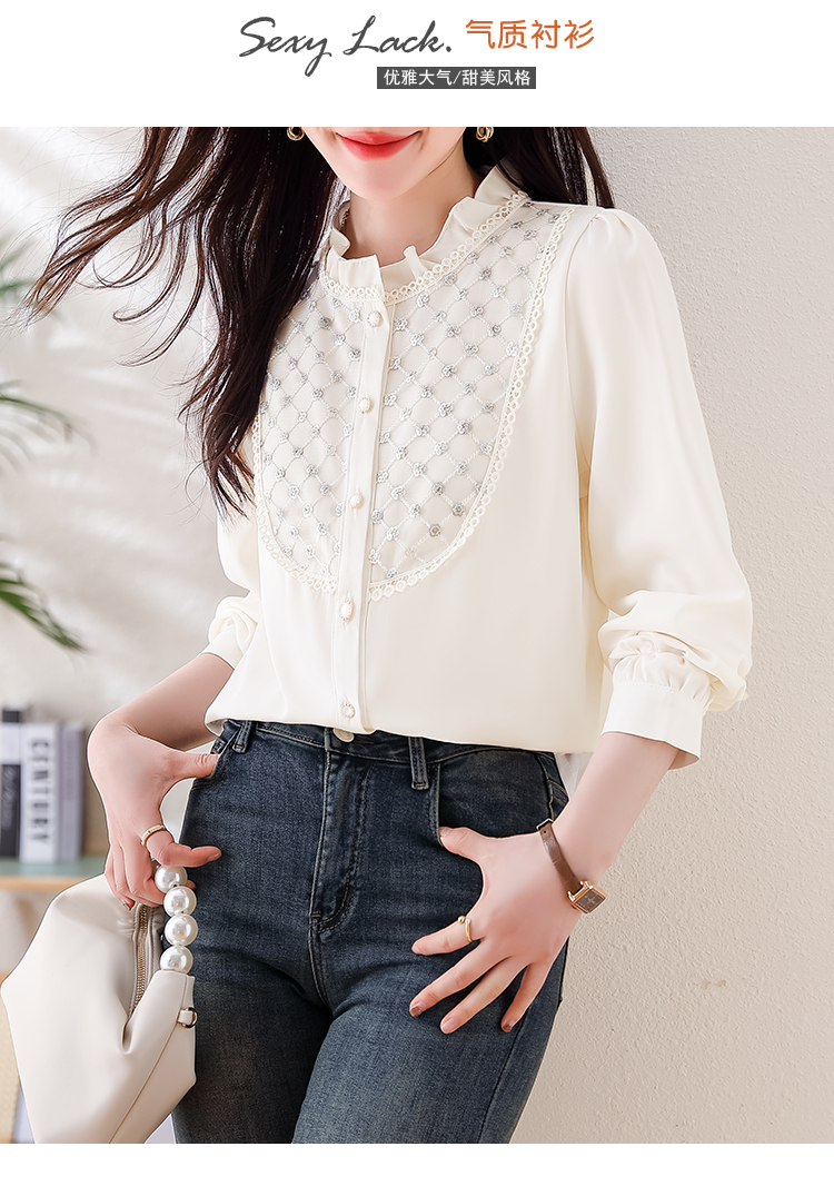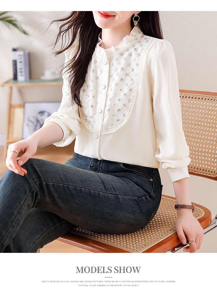 PF1693#高端轻奢定制设计感木耳边重工钉珠气质百搭衬衫小衫女