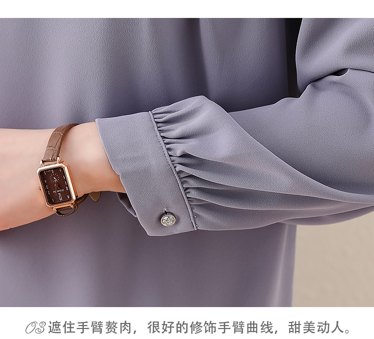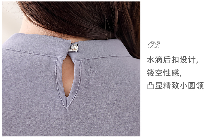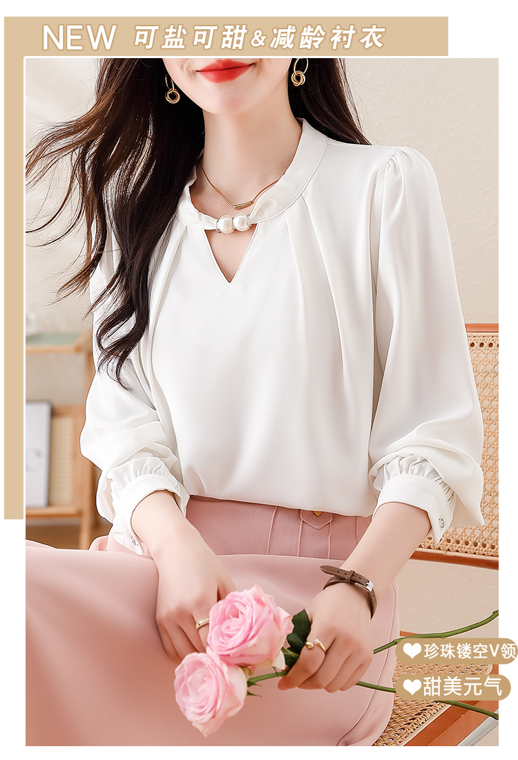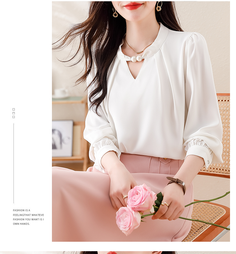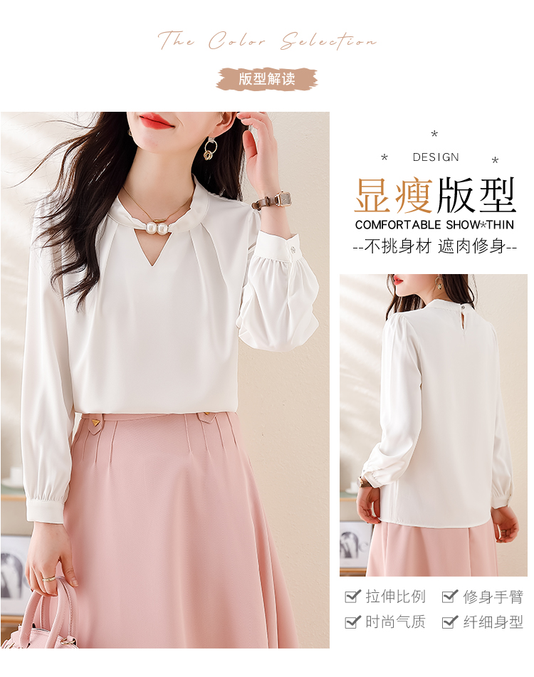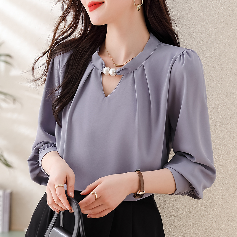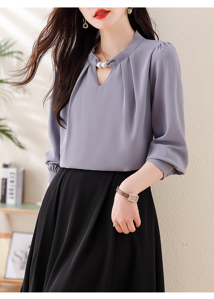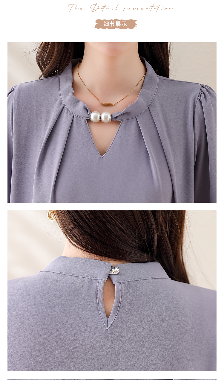 PF1694#法式小众挂脖立领串珠衬衫女 新款套头缎面气质通勤职业上衣