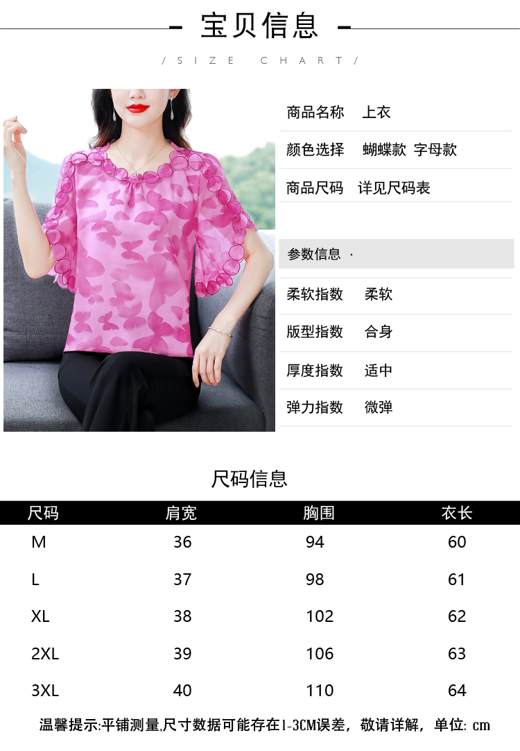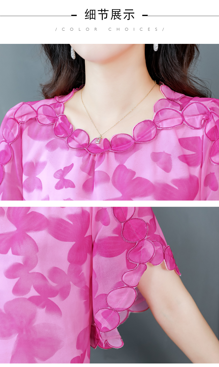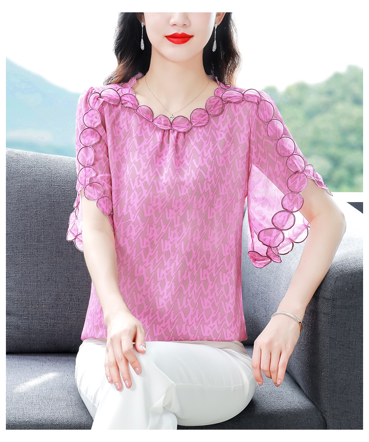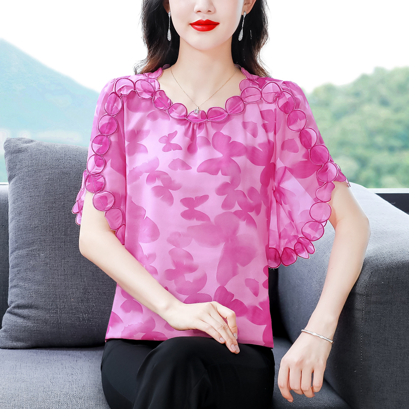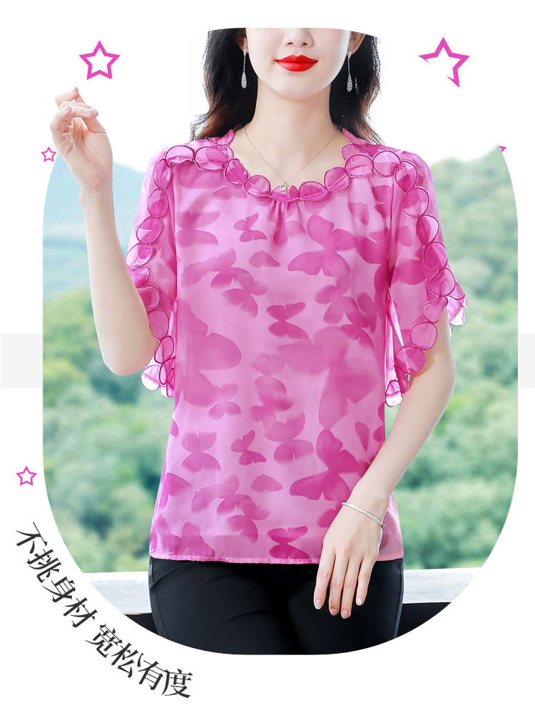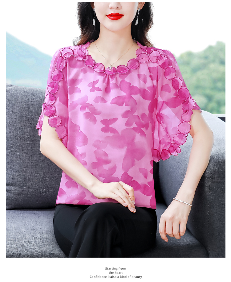 PF1697#夏季新款时尚减龄刺绣飞飞袖碎花上衣短袖雪纺衫女