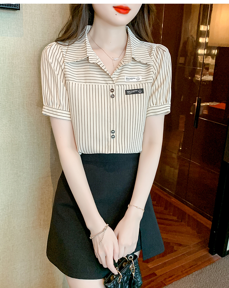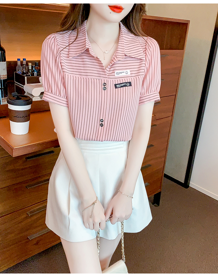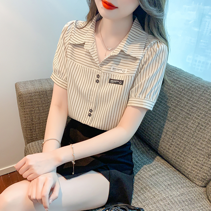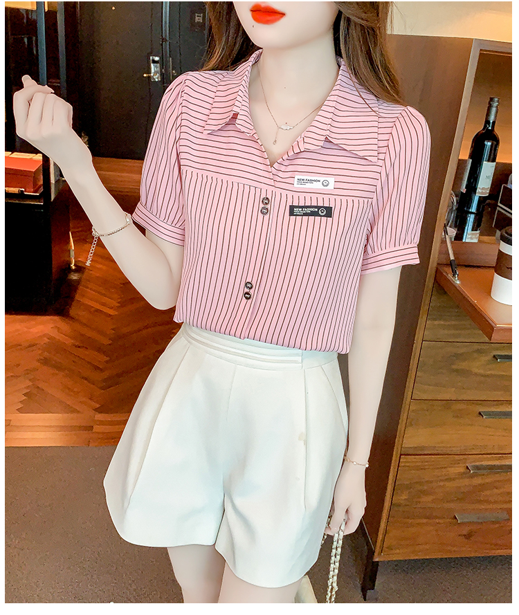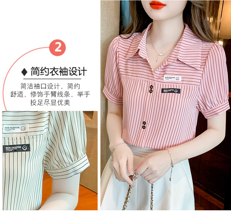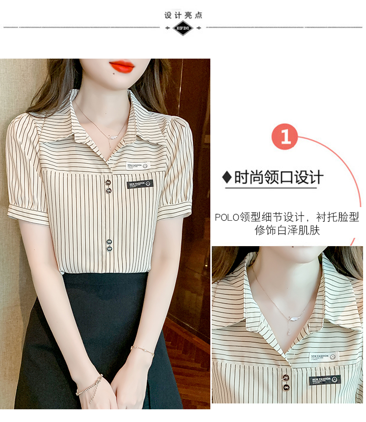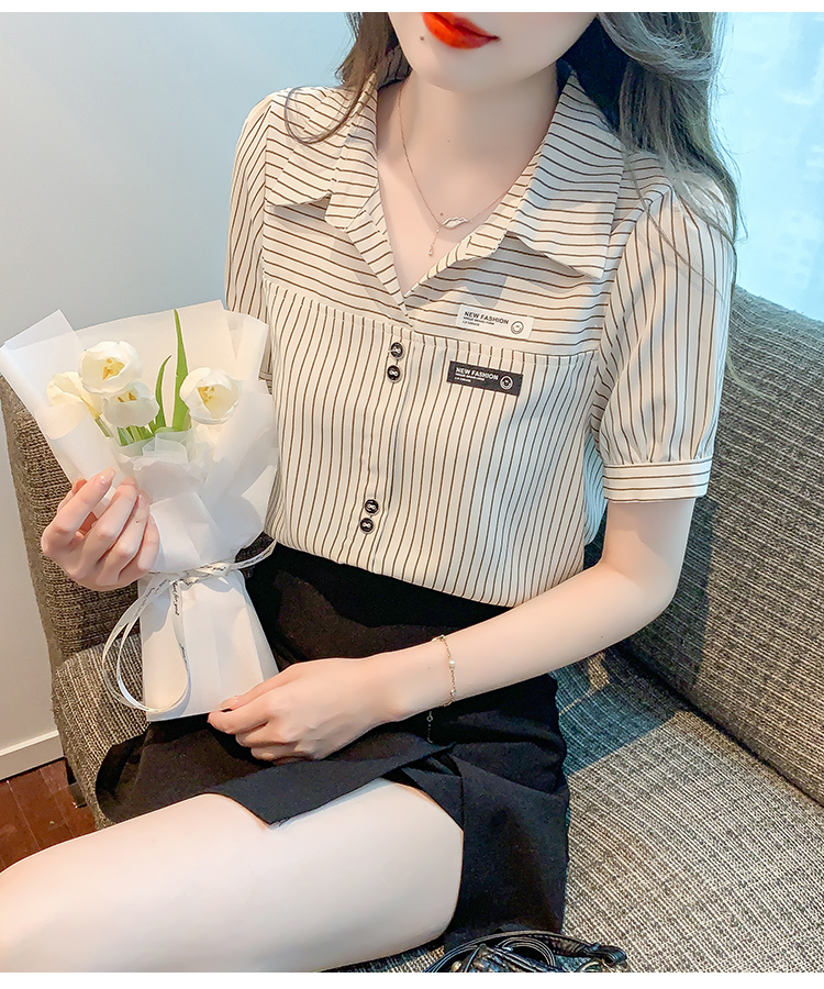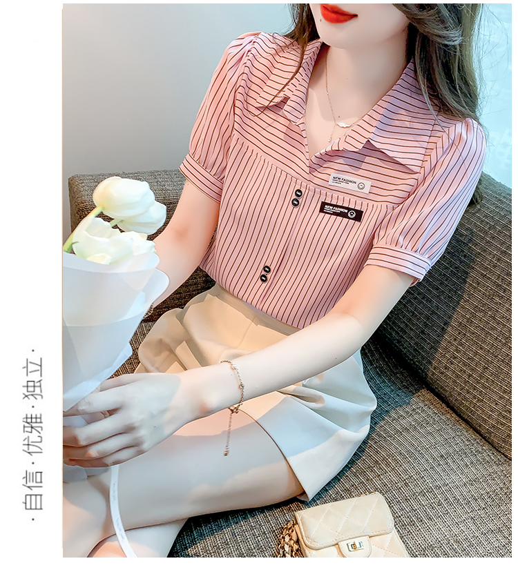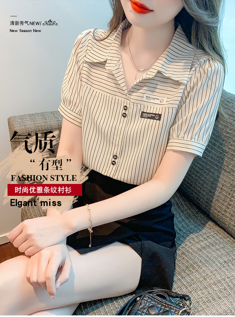PF1714#夏季短袖条纹衬衫女 新款洋气时尚气质百搭韩版显瘦上衣