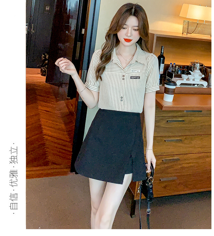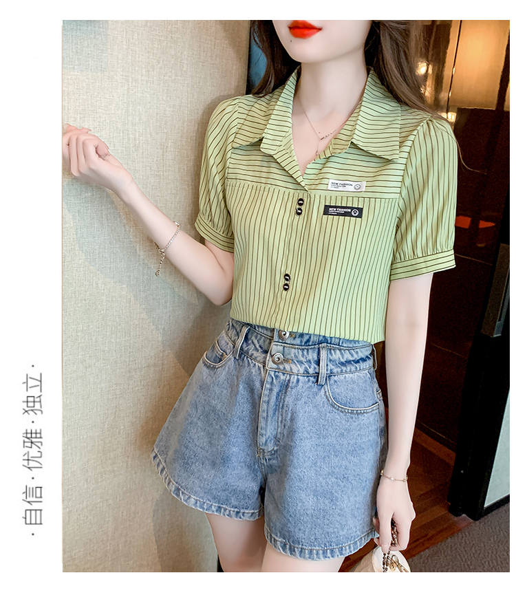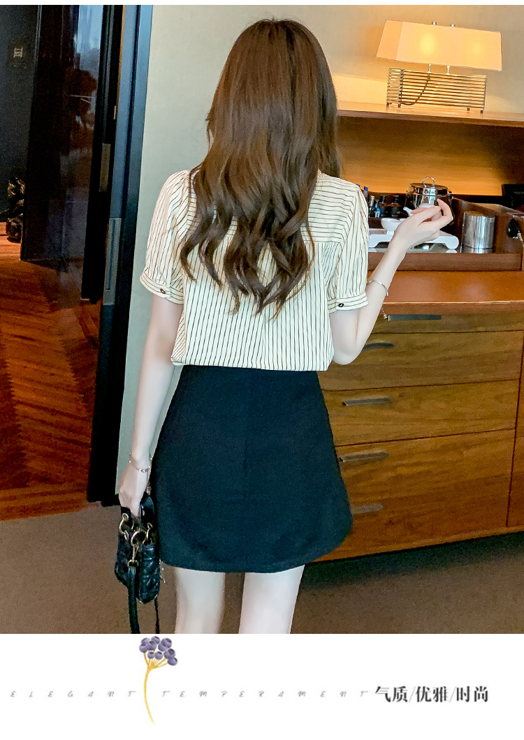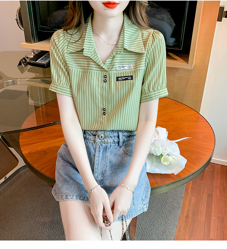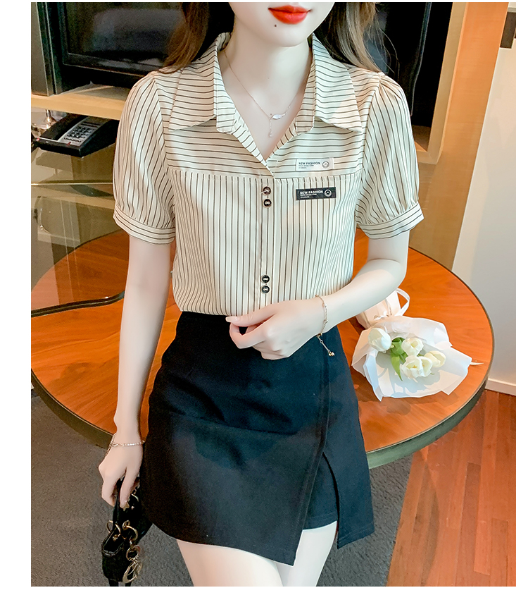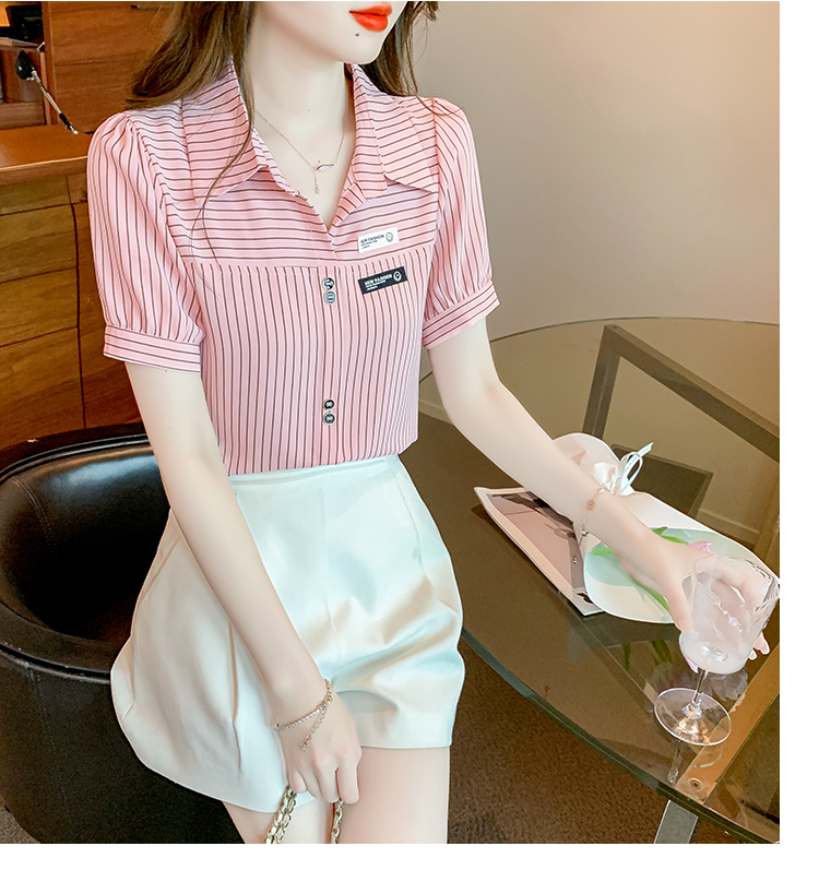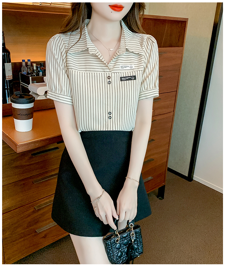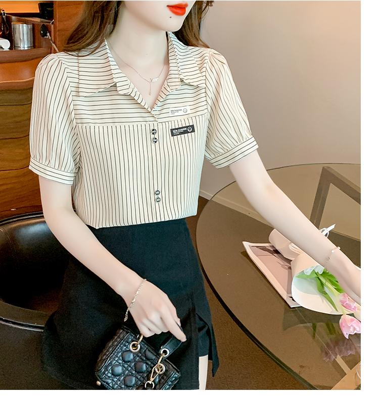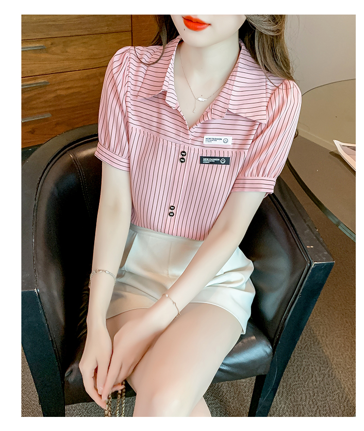 PF1714#夏季短袖条纹衬衫女 新款洋气时尚气质百搭韩版显瘦上衣
