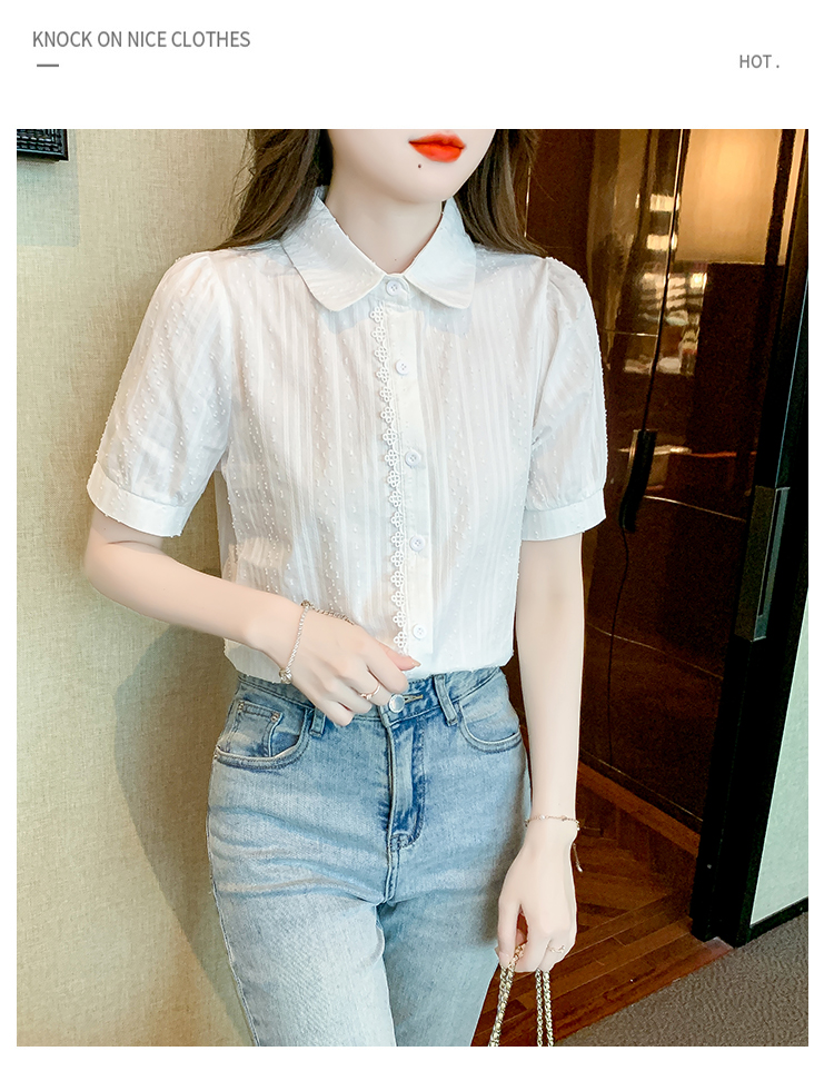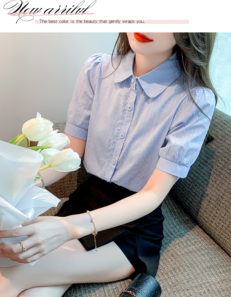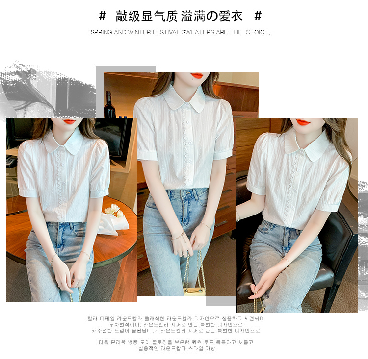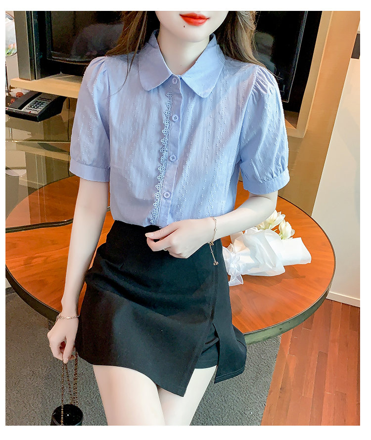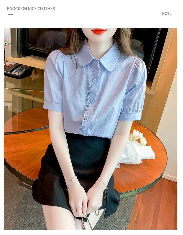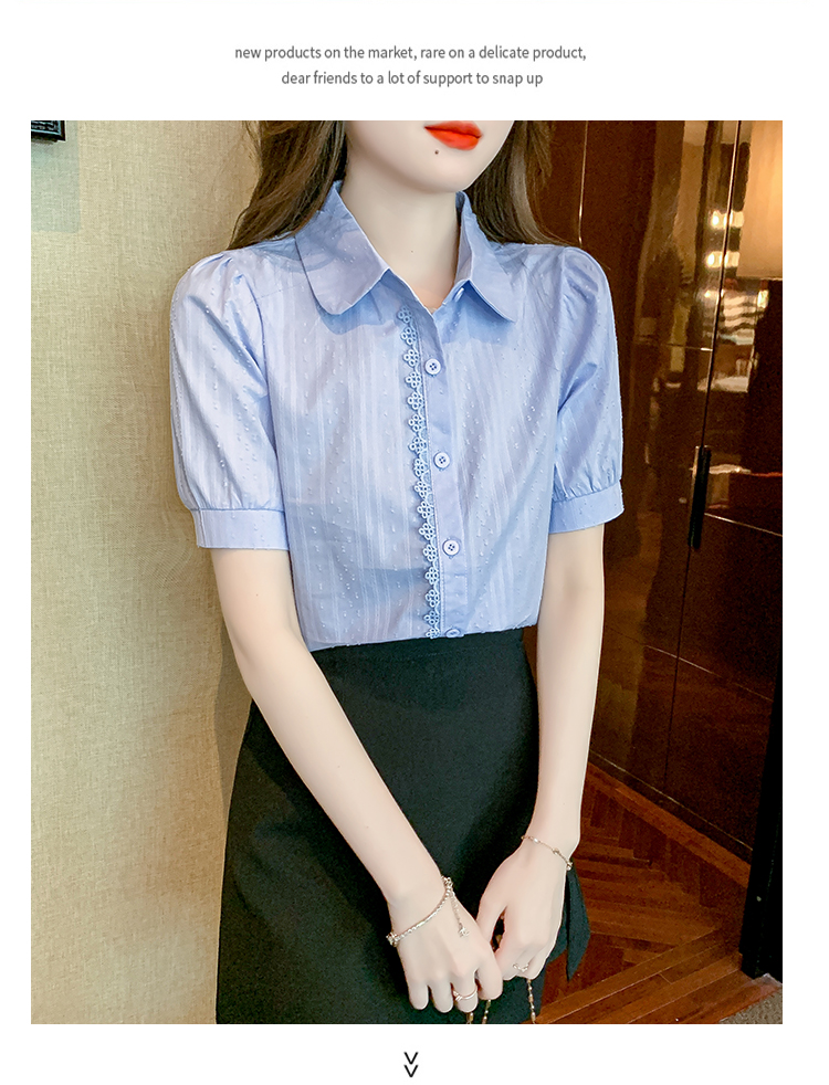 PF1715#新款上衣女夏季薄款短袖气质拼接花边法式衬衫