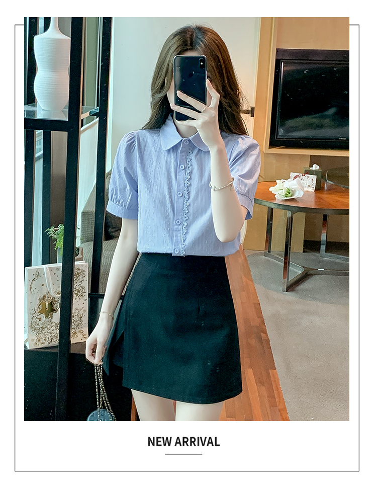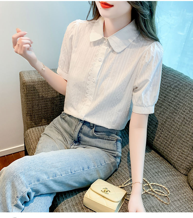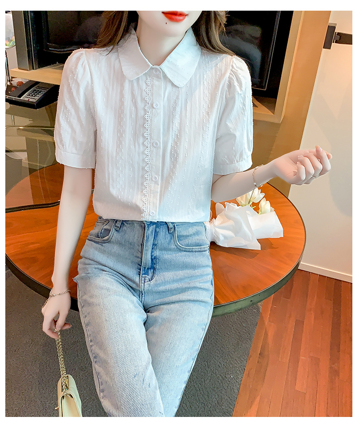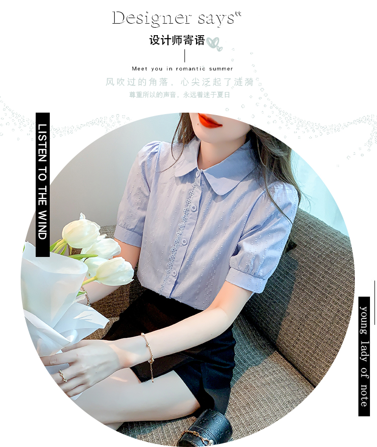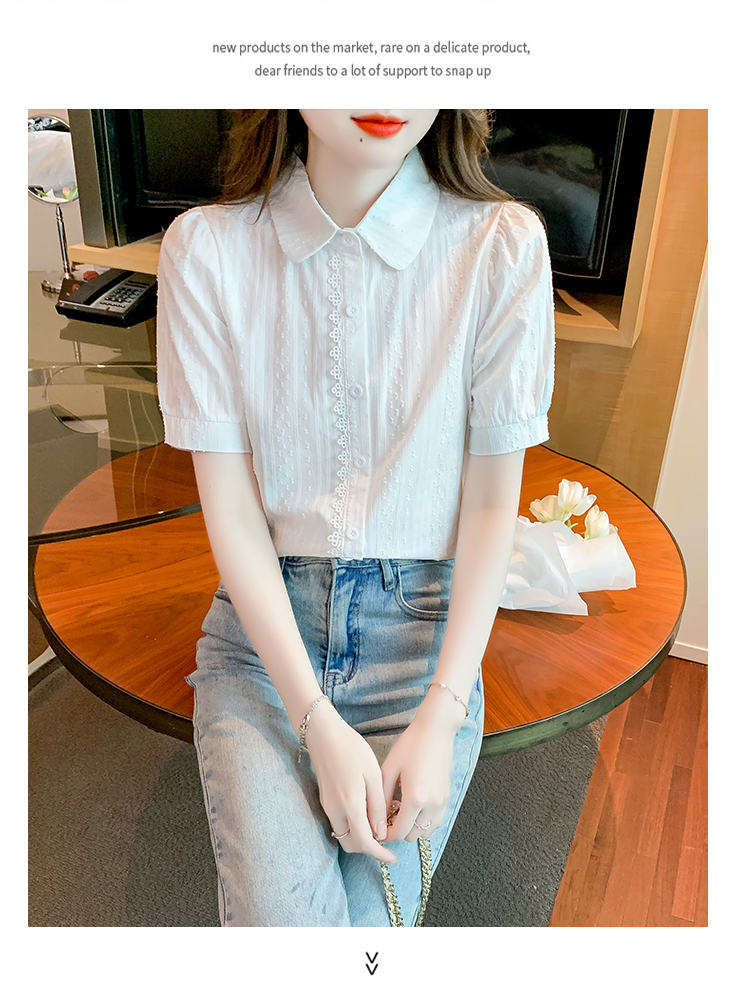 PF1715#新款上衣女夏季薄款短袖气质拼接花边法式衬衫