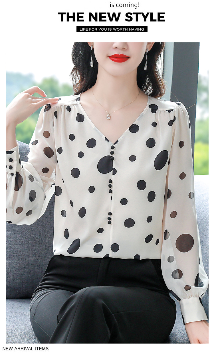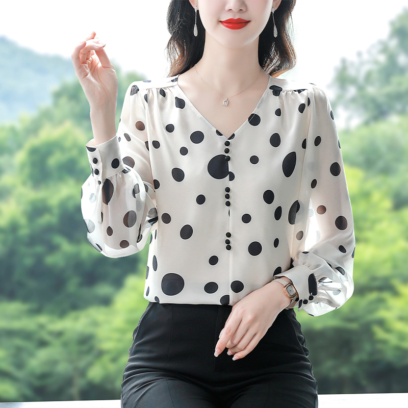 PF1744#波点雪纺衬衫女设计感小众 新款高端长袖V领法式别致上衣
