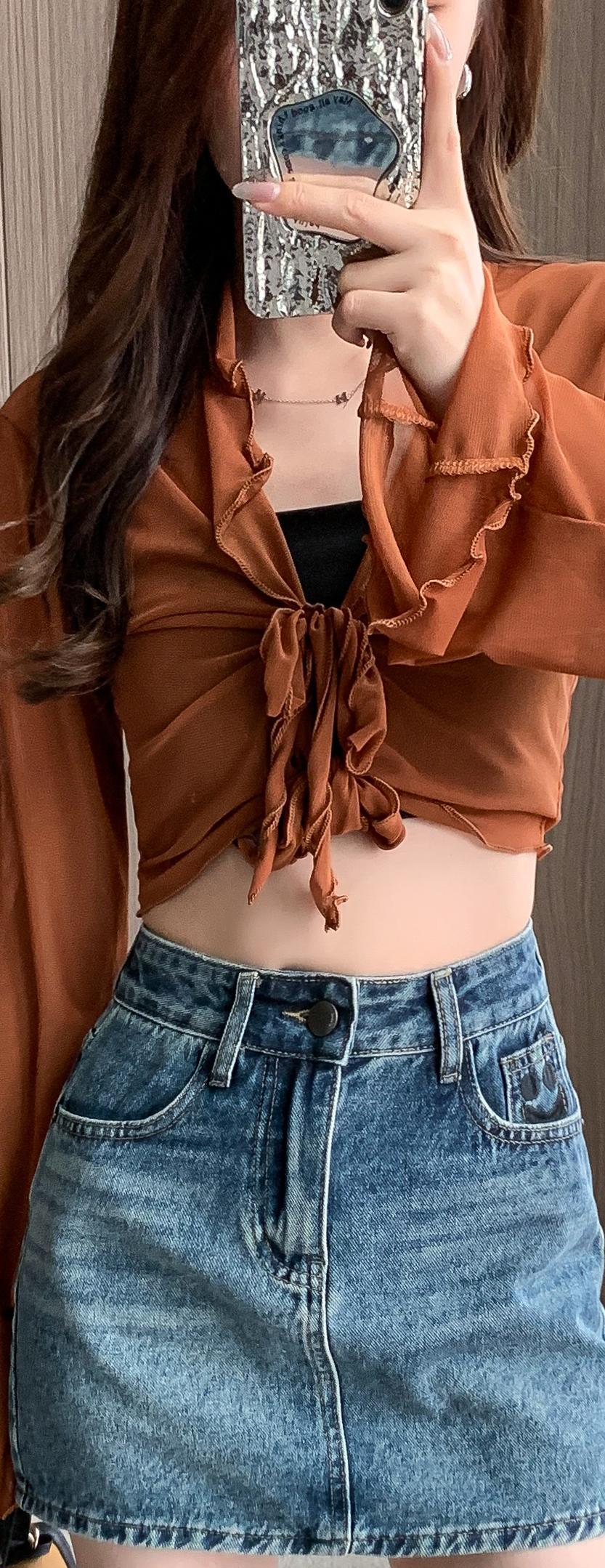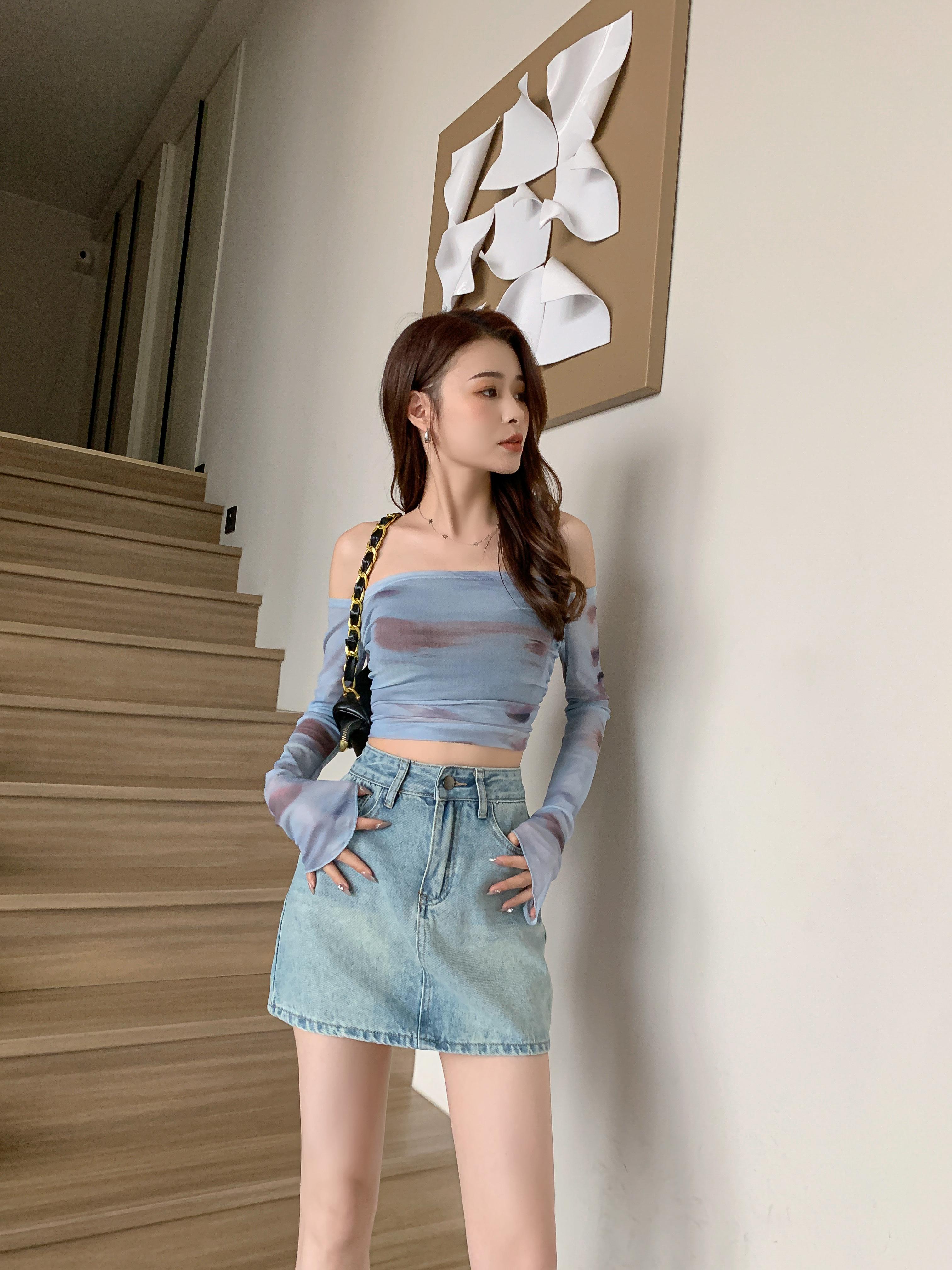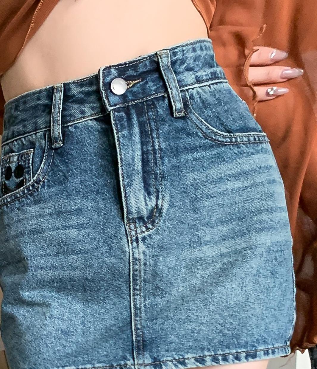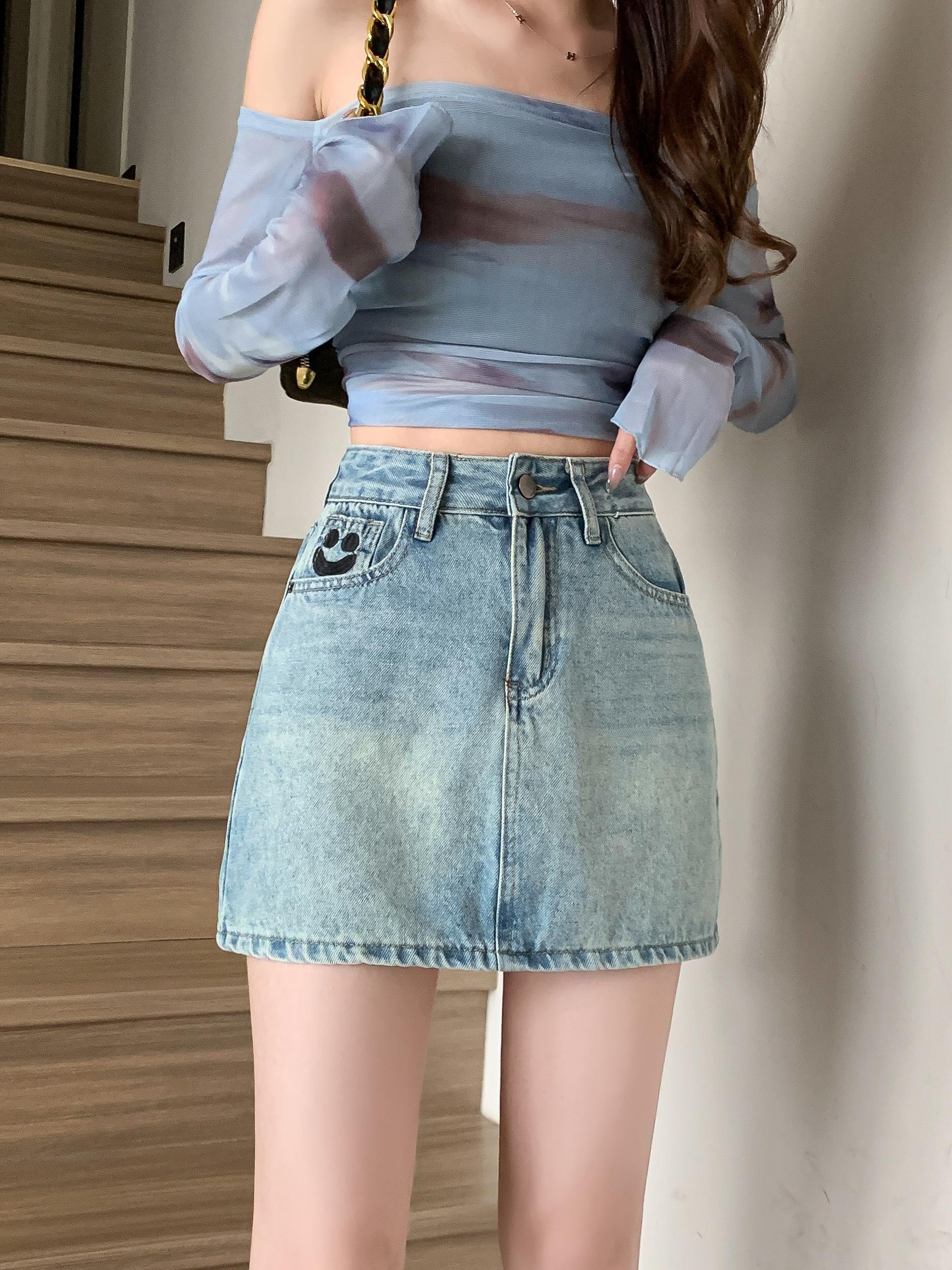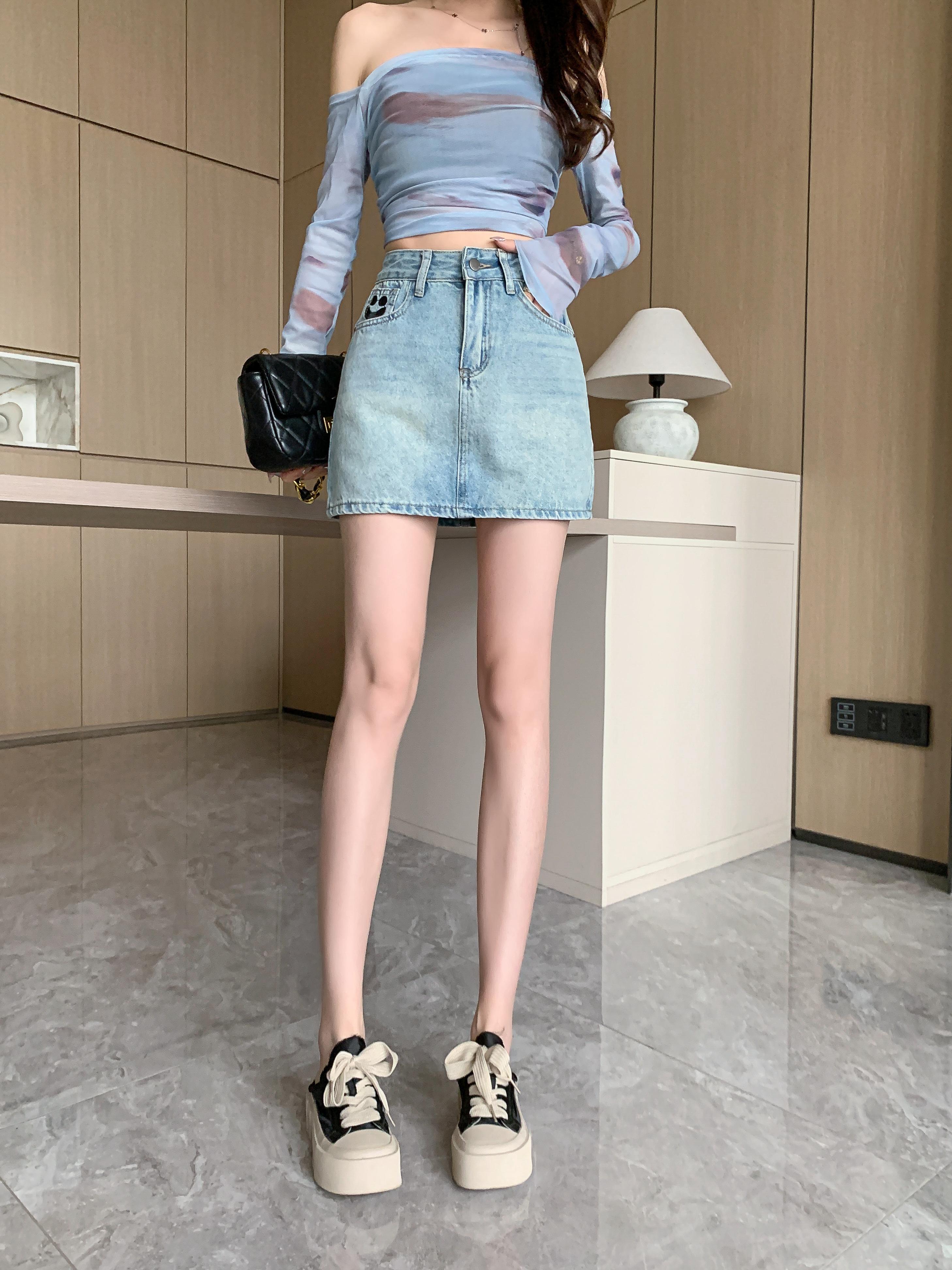 PF1748#设计半身牛仔短裙女春夏复古高腰显瘦a字防走光包臀裙子