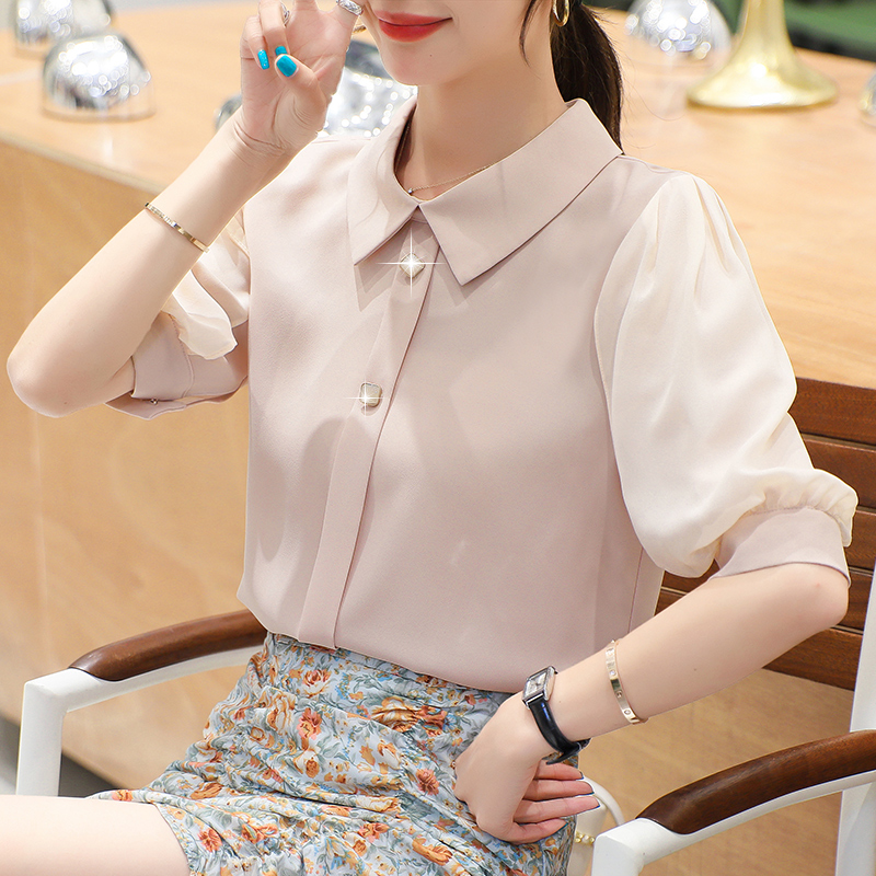 PF1771#OL职业衬衫女夏季 新款泡泡袖上衣时尚五分袖衬衣潮