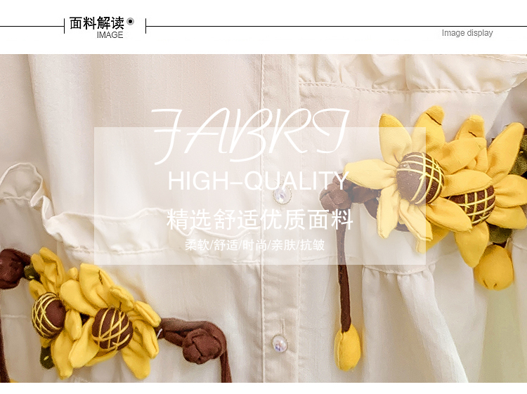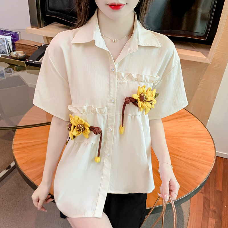 PF1775#森系雏菊扎花短袖衬衫女夏新洋气小众不对称设计别致上衣