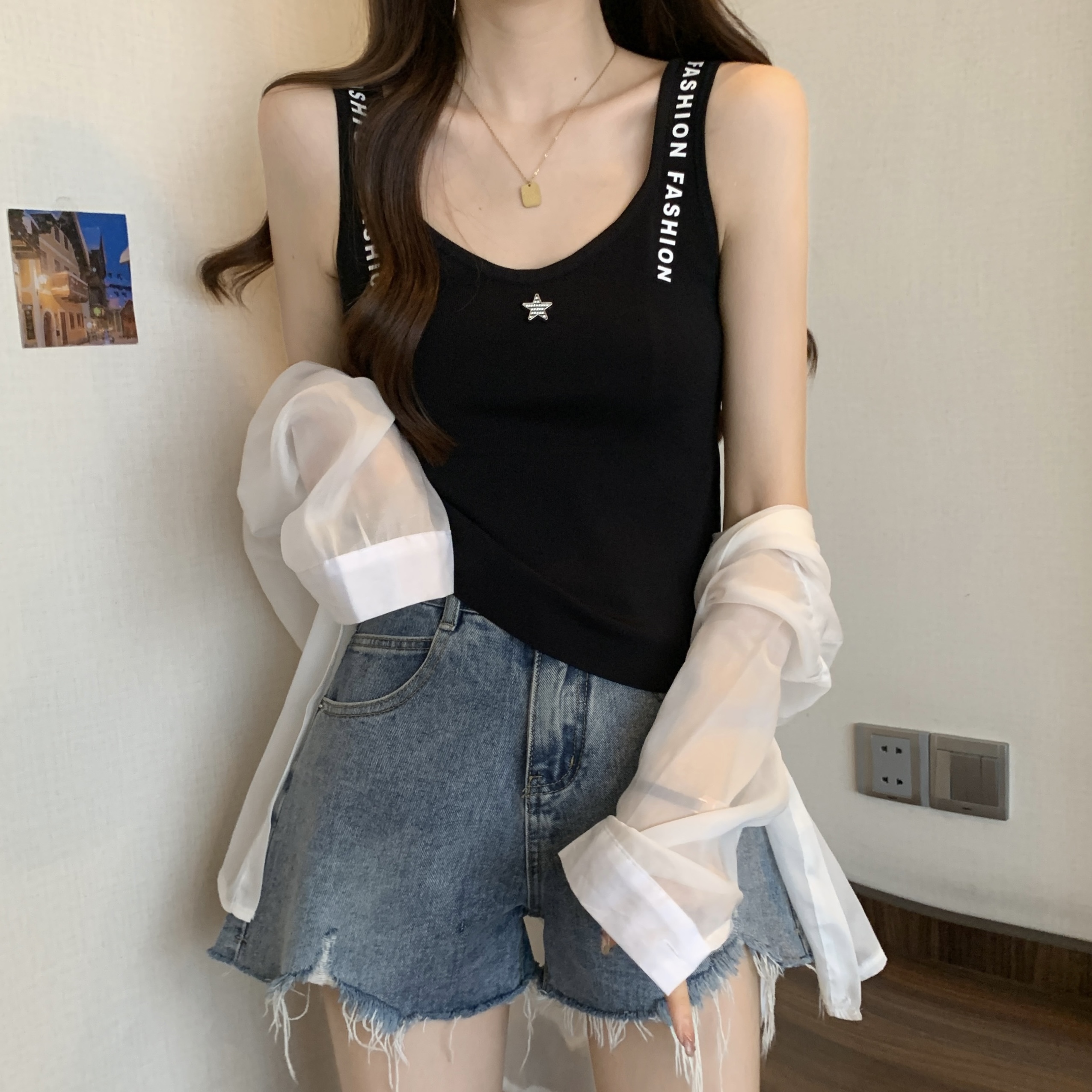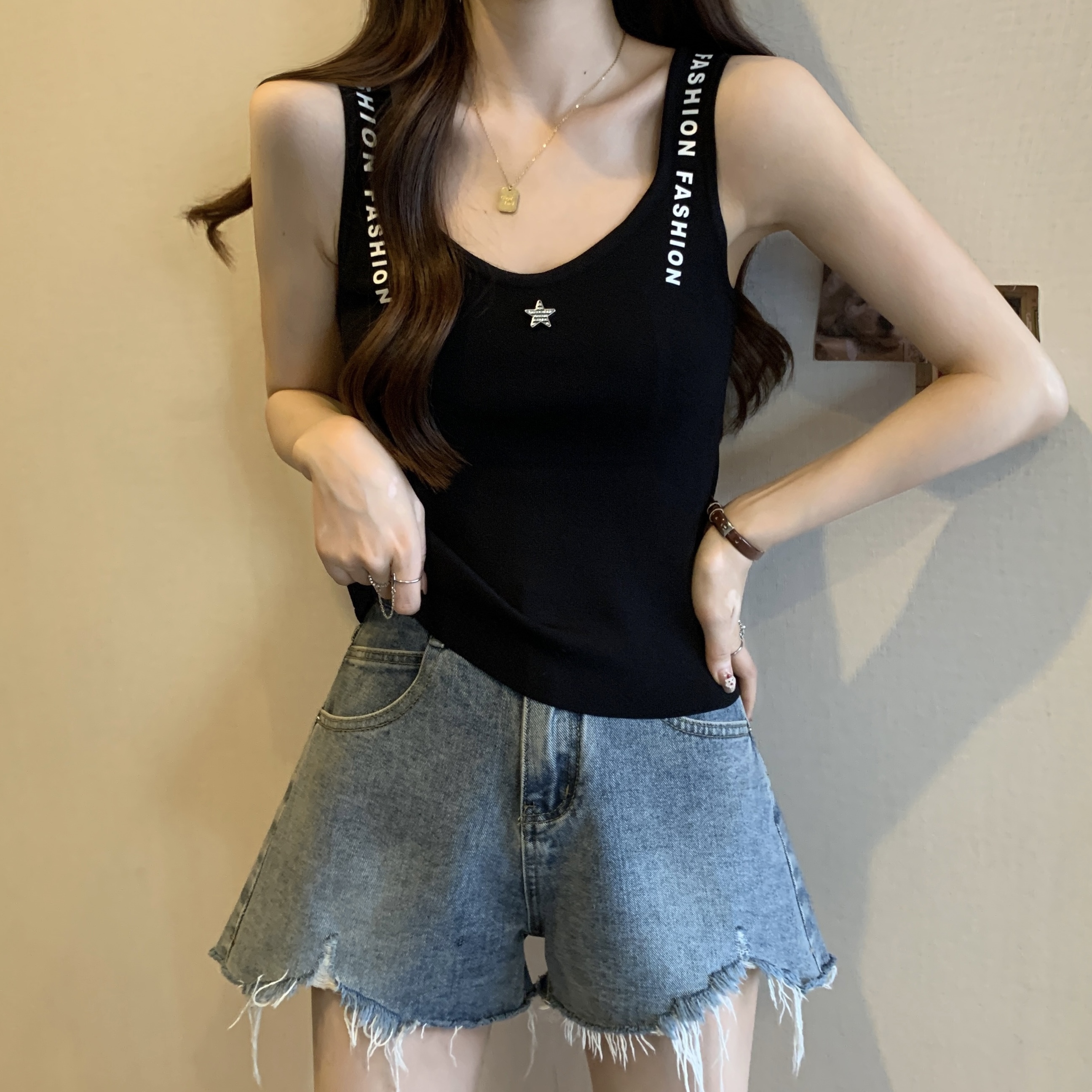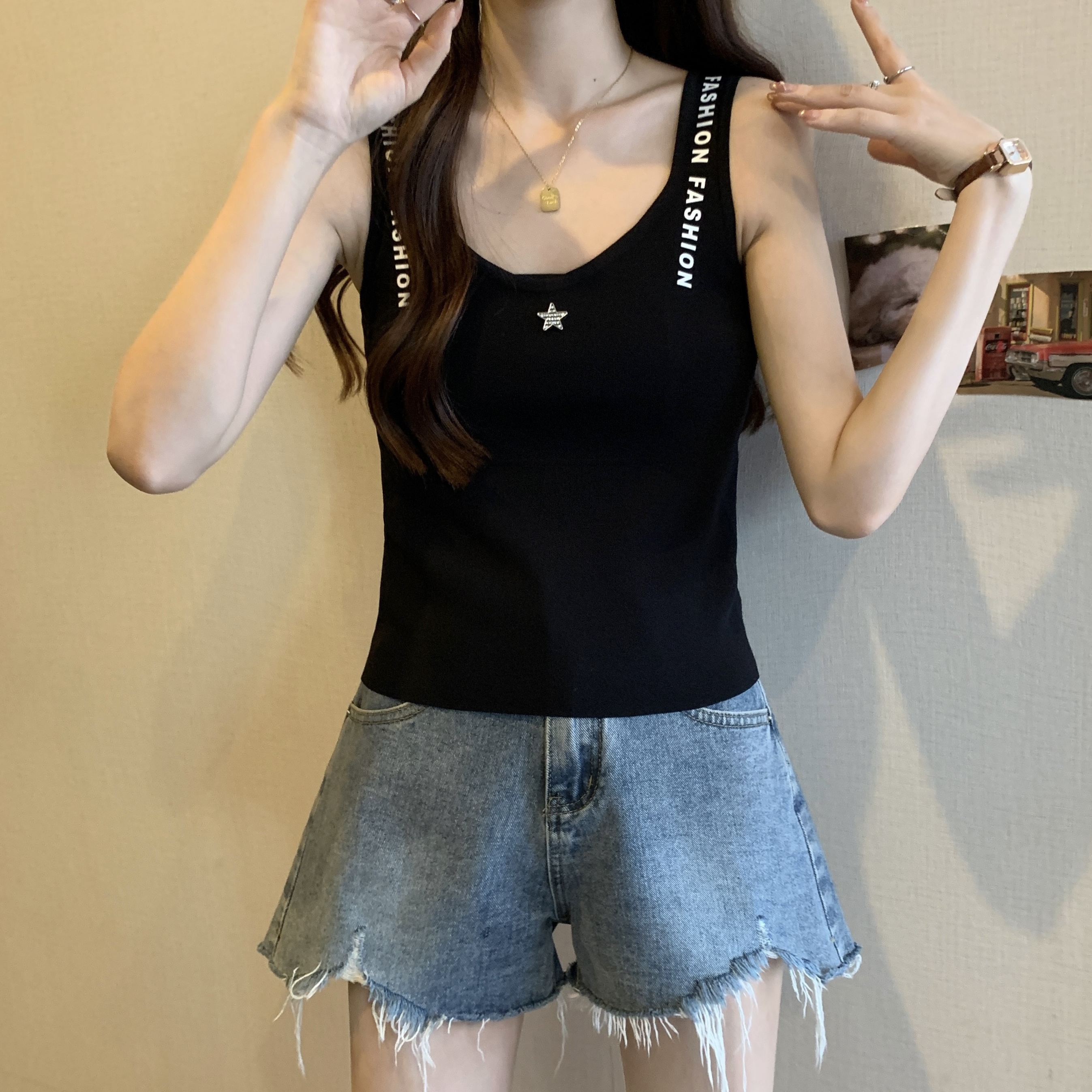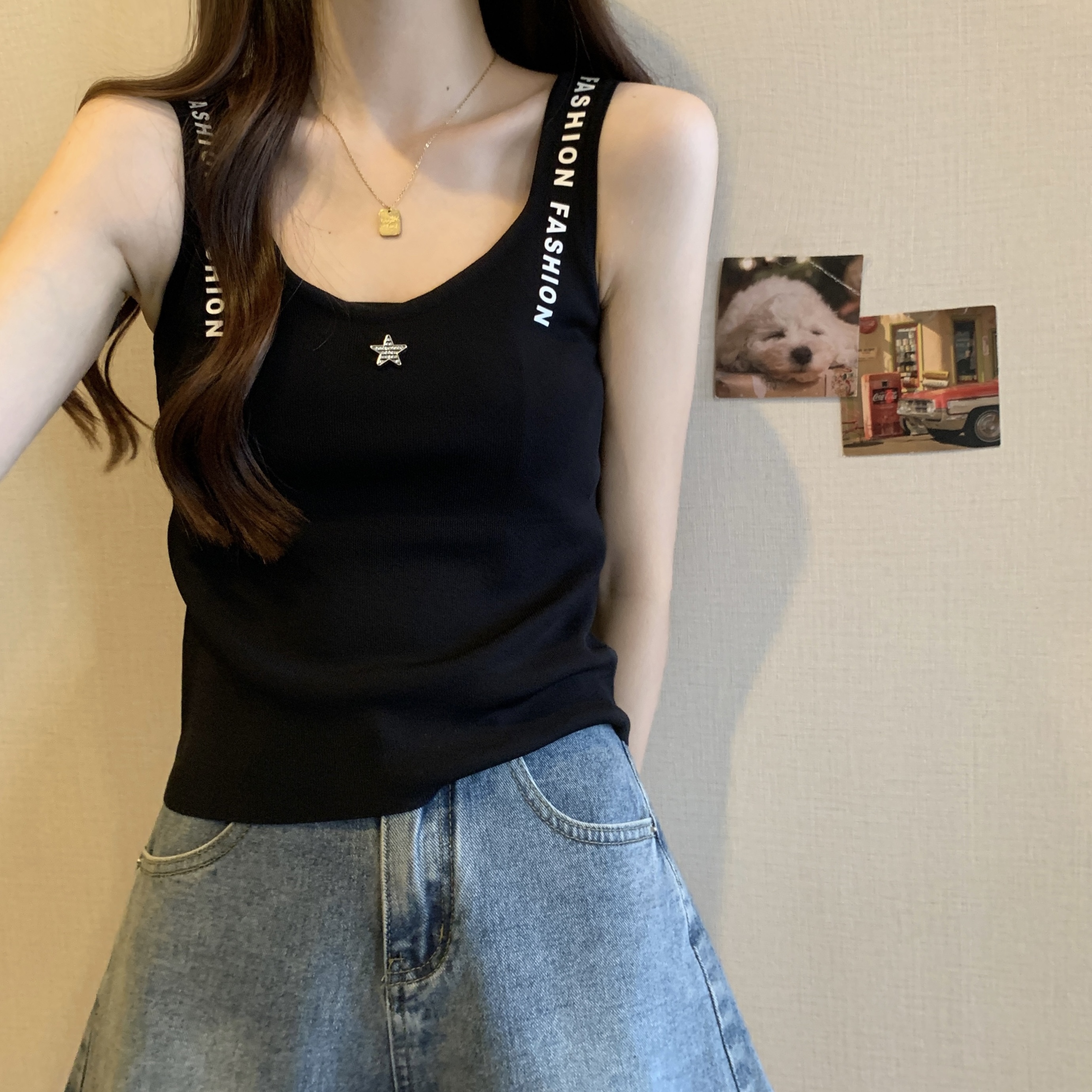PF1810#大码胖mm字母背心内搭针织打底吊带女外穿2024春夏新款