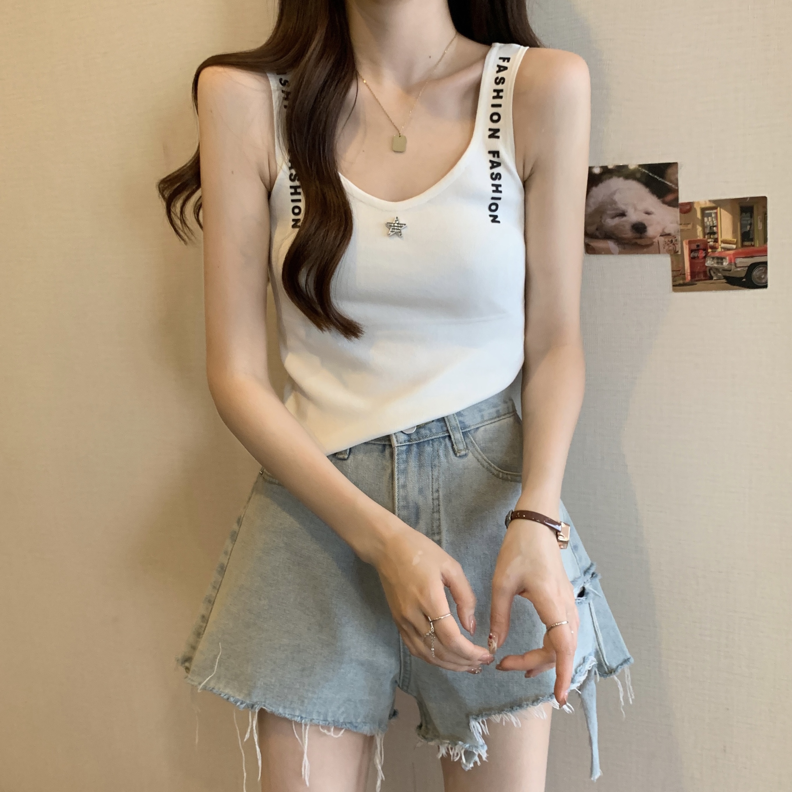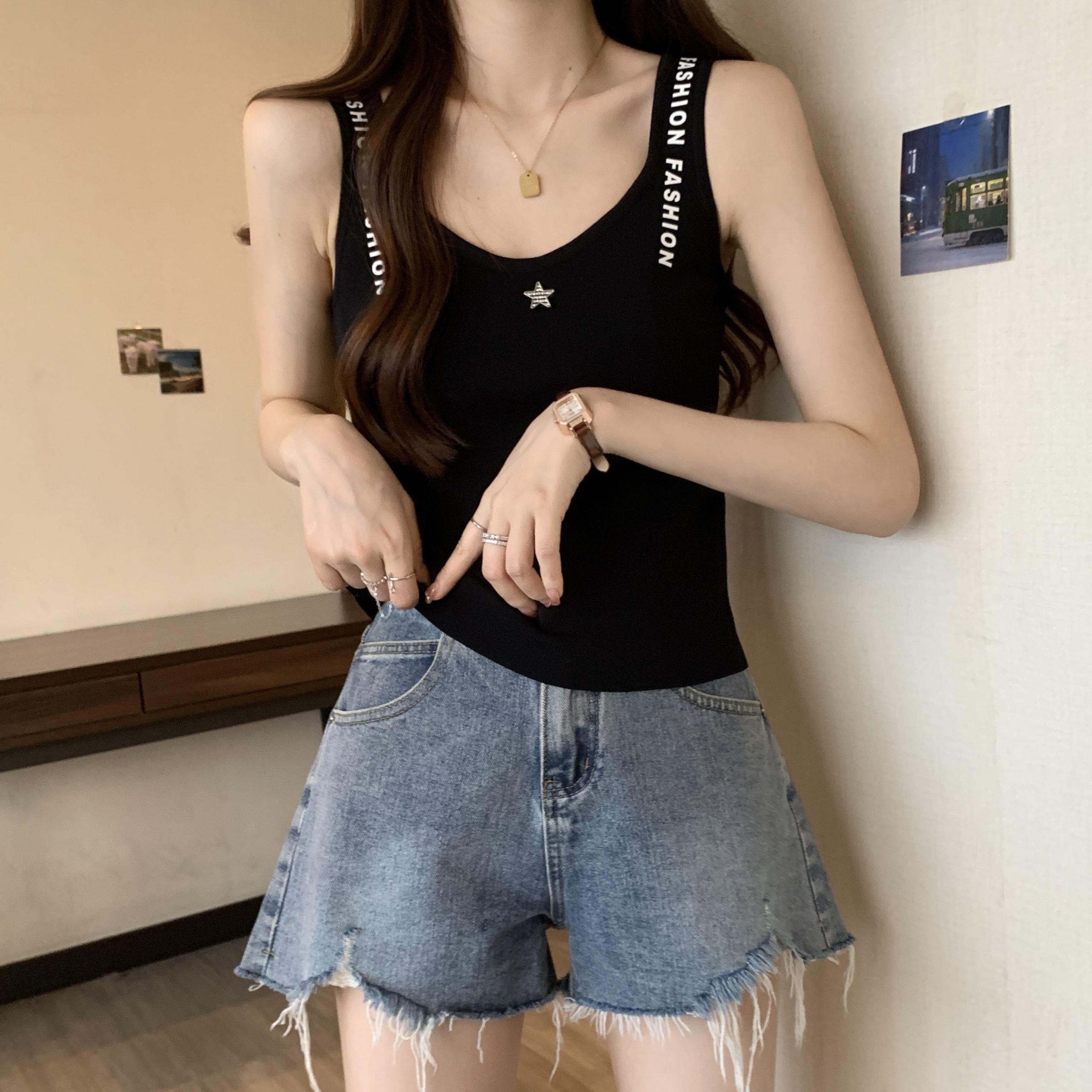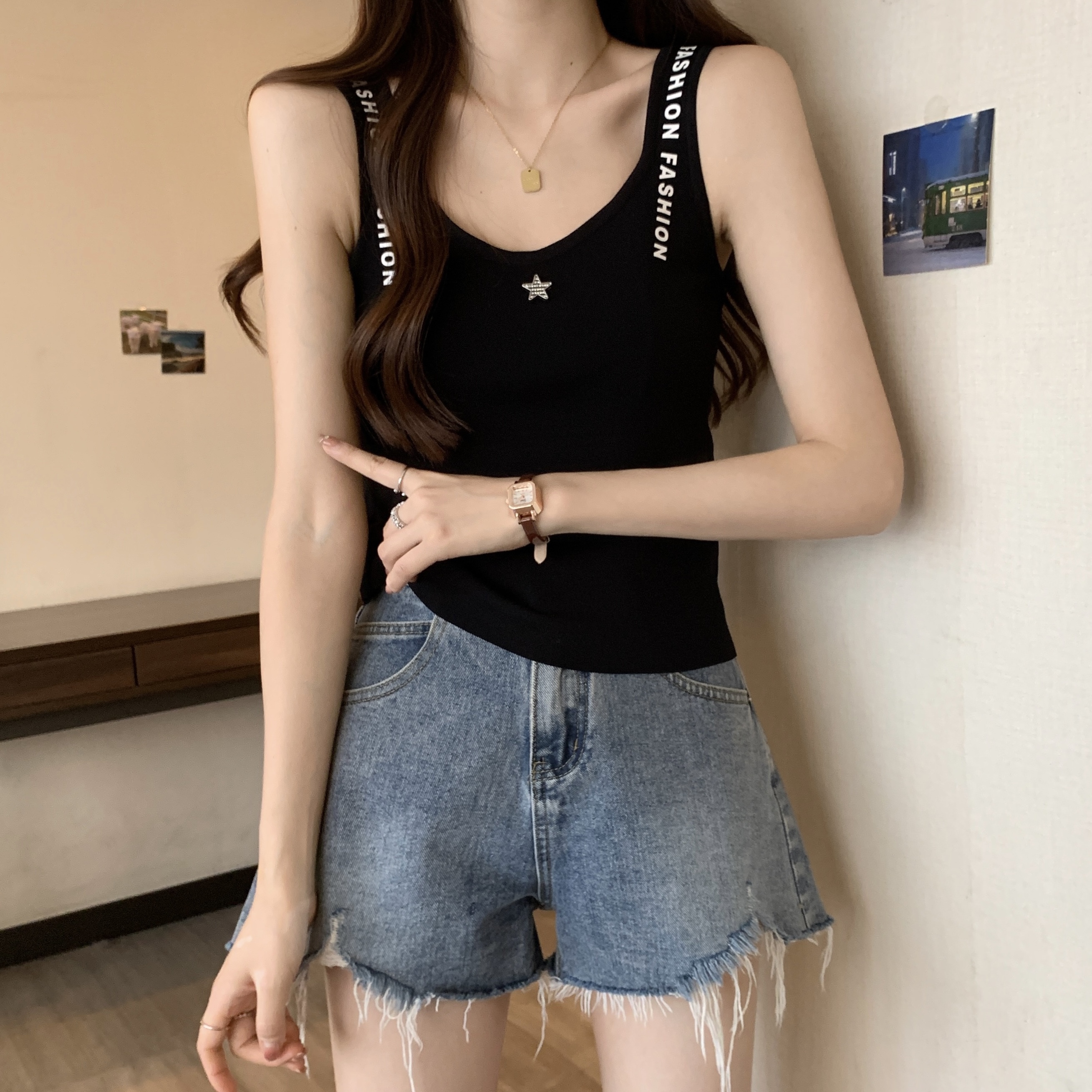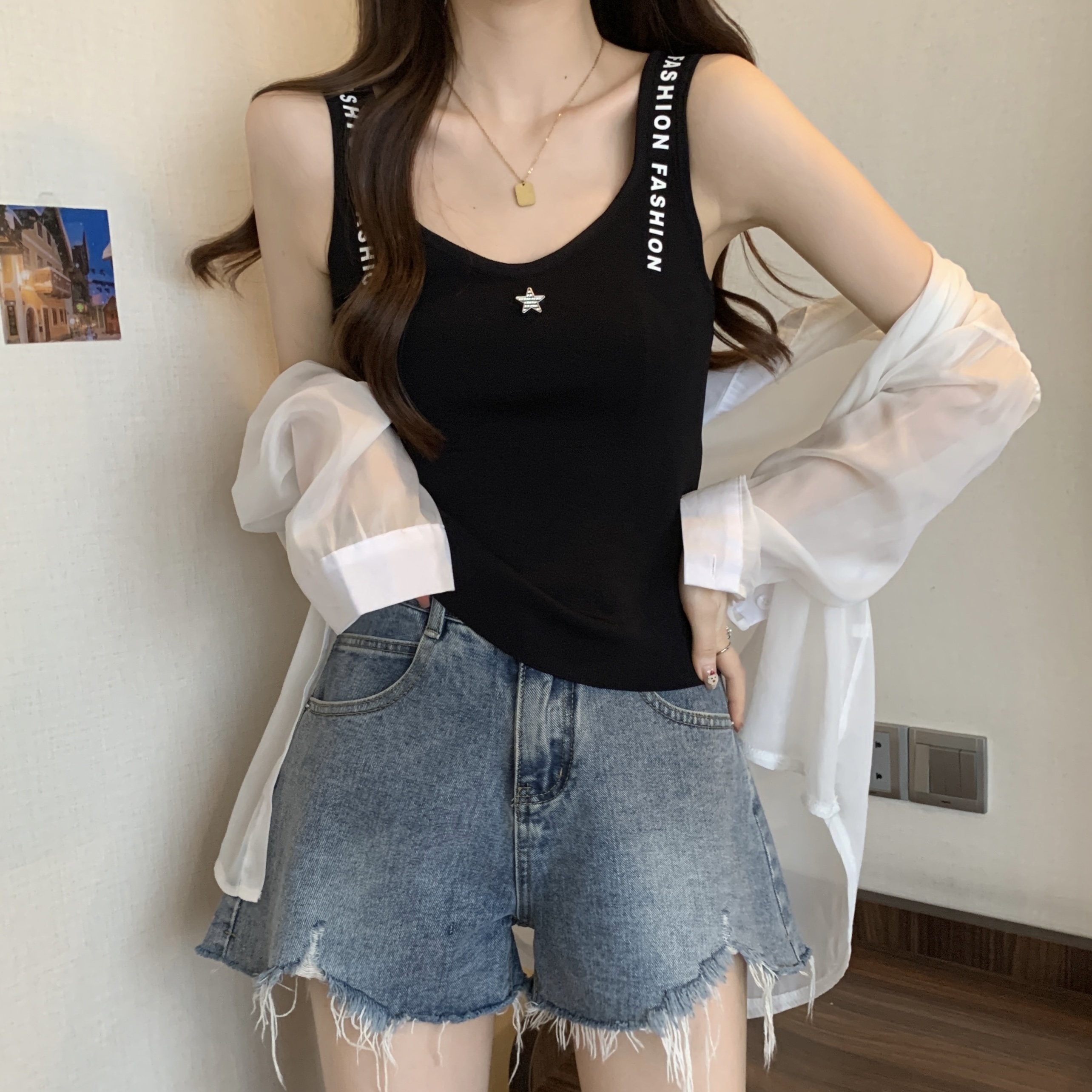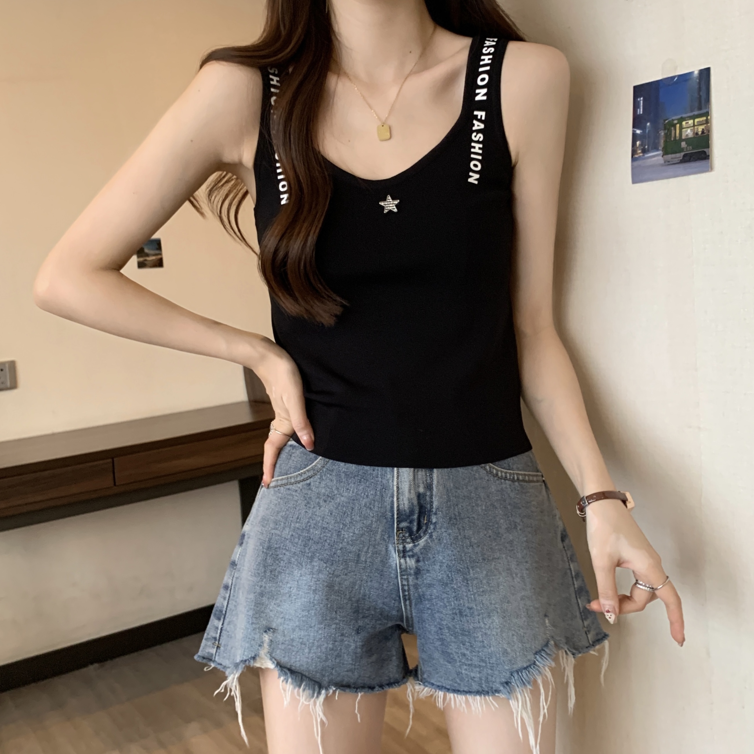 PF1810#大码胖mm字母背心内搭针织打底吊带女外穿2024春夏新款