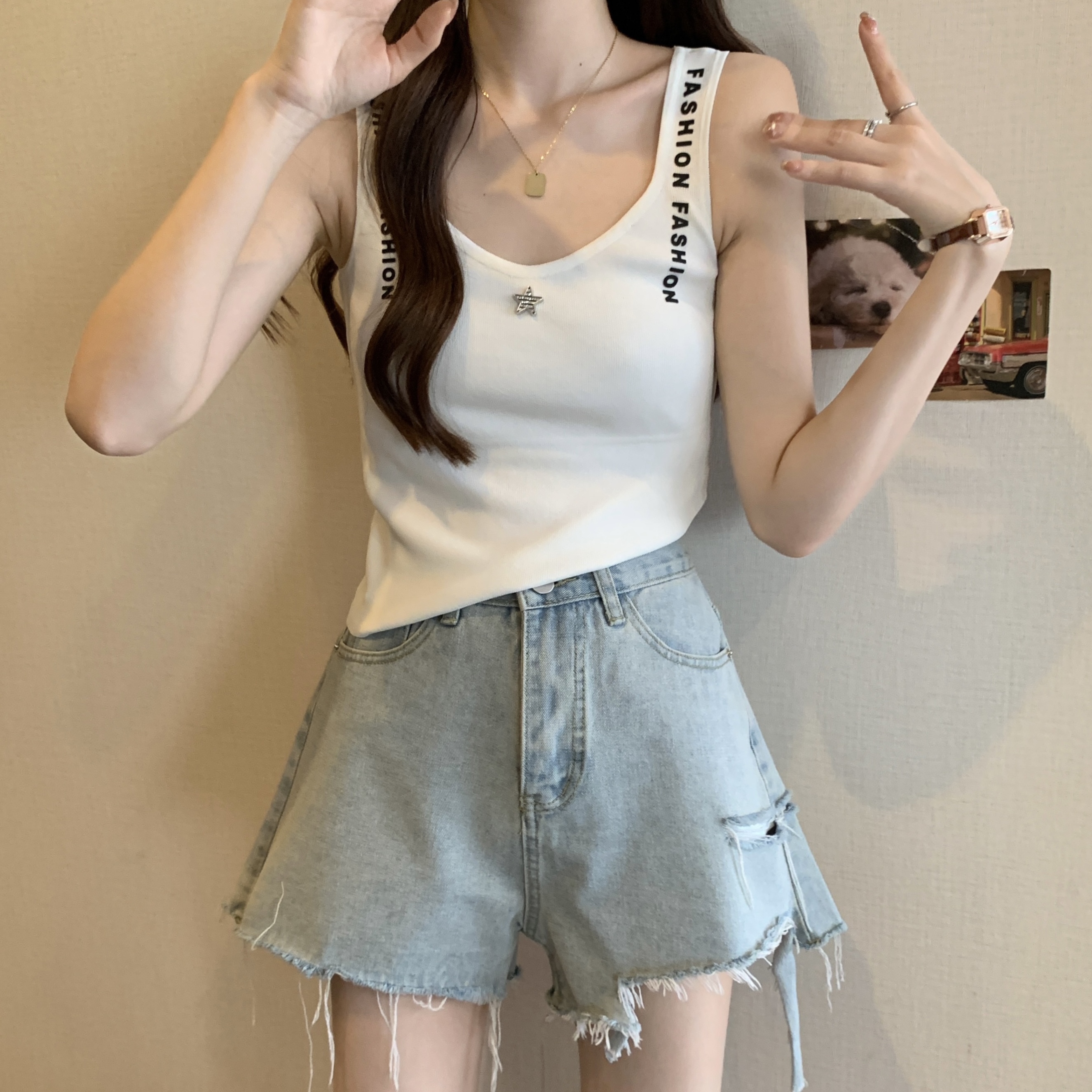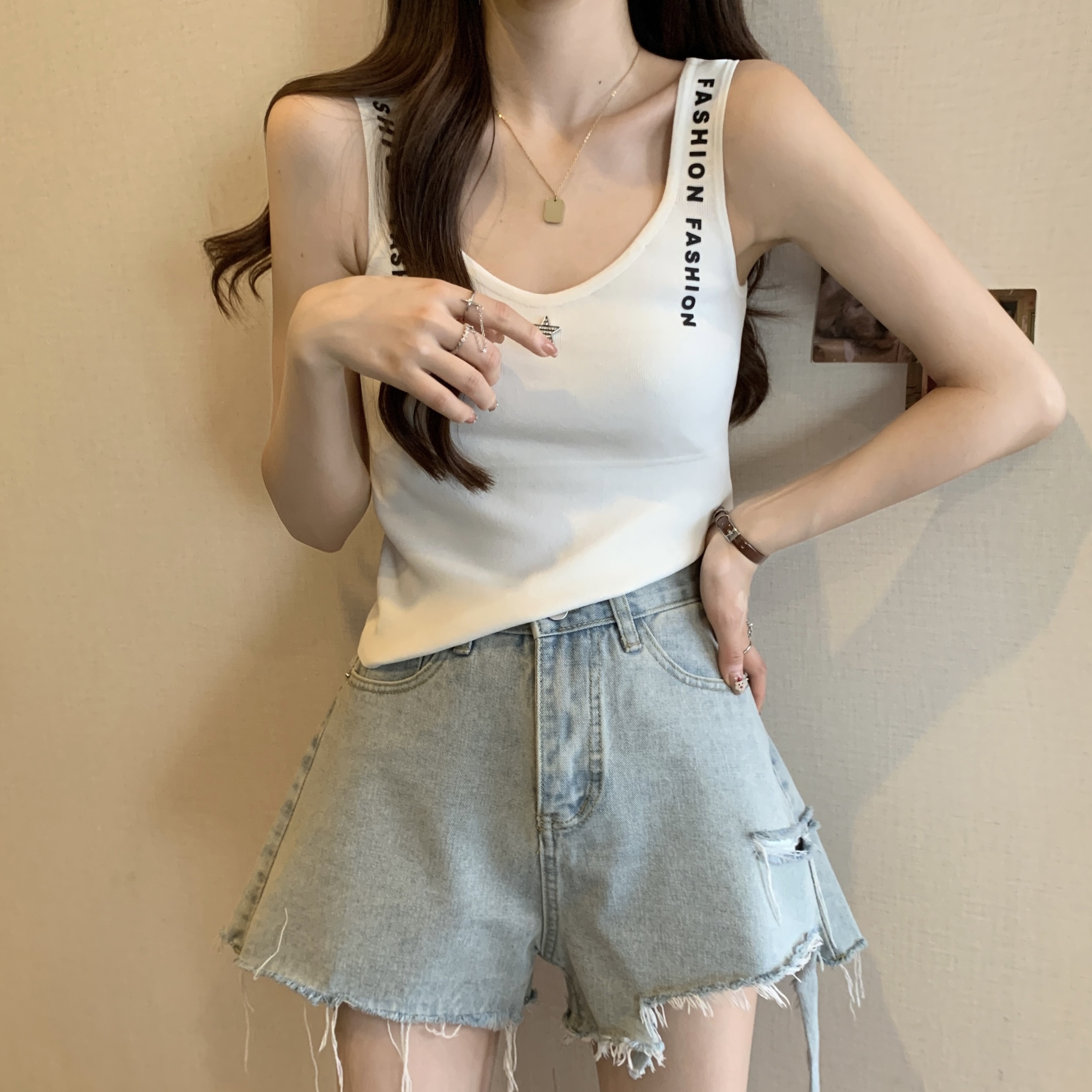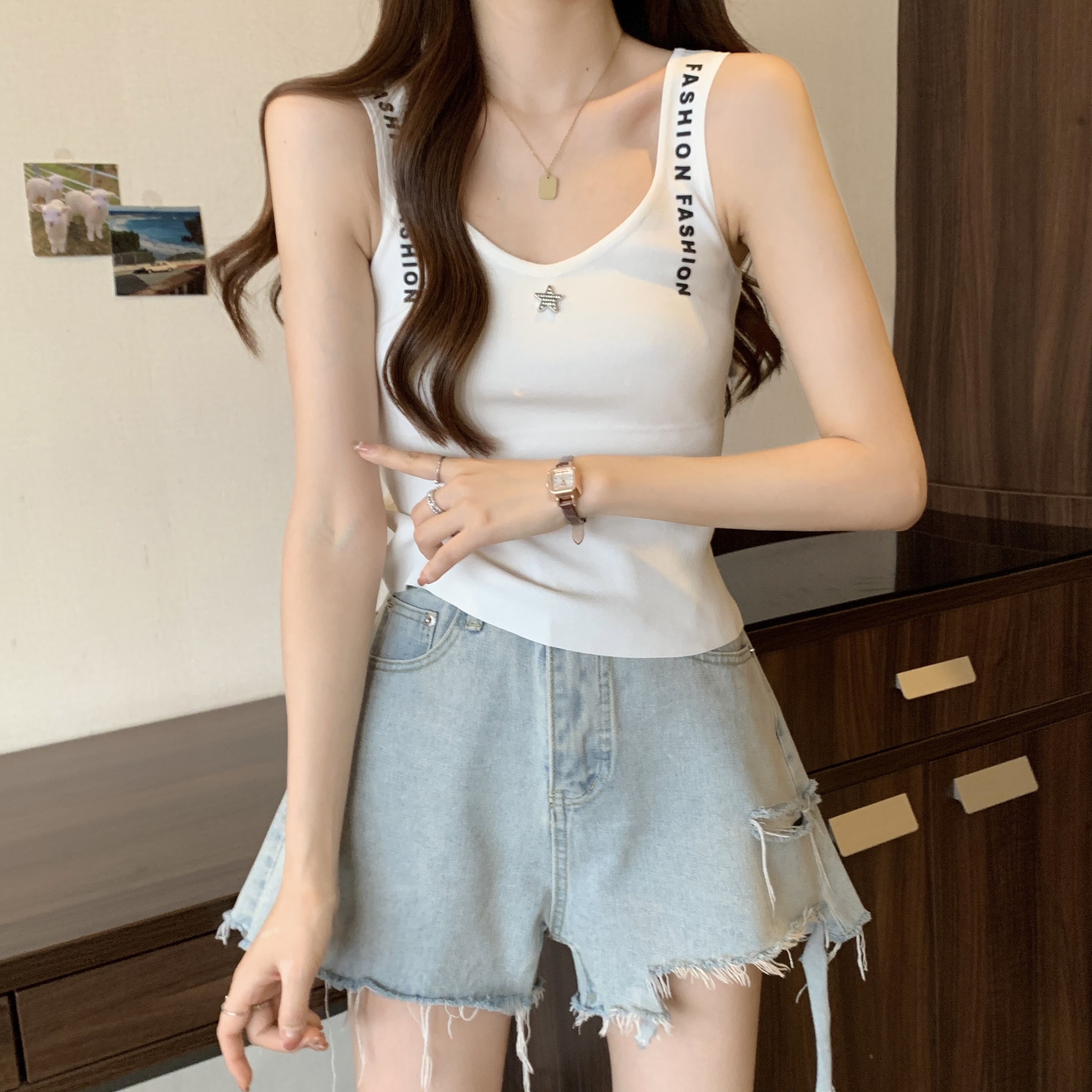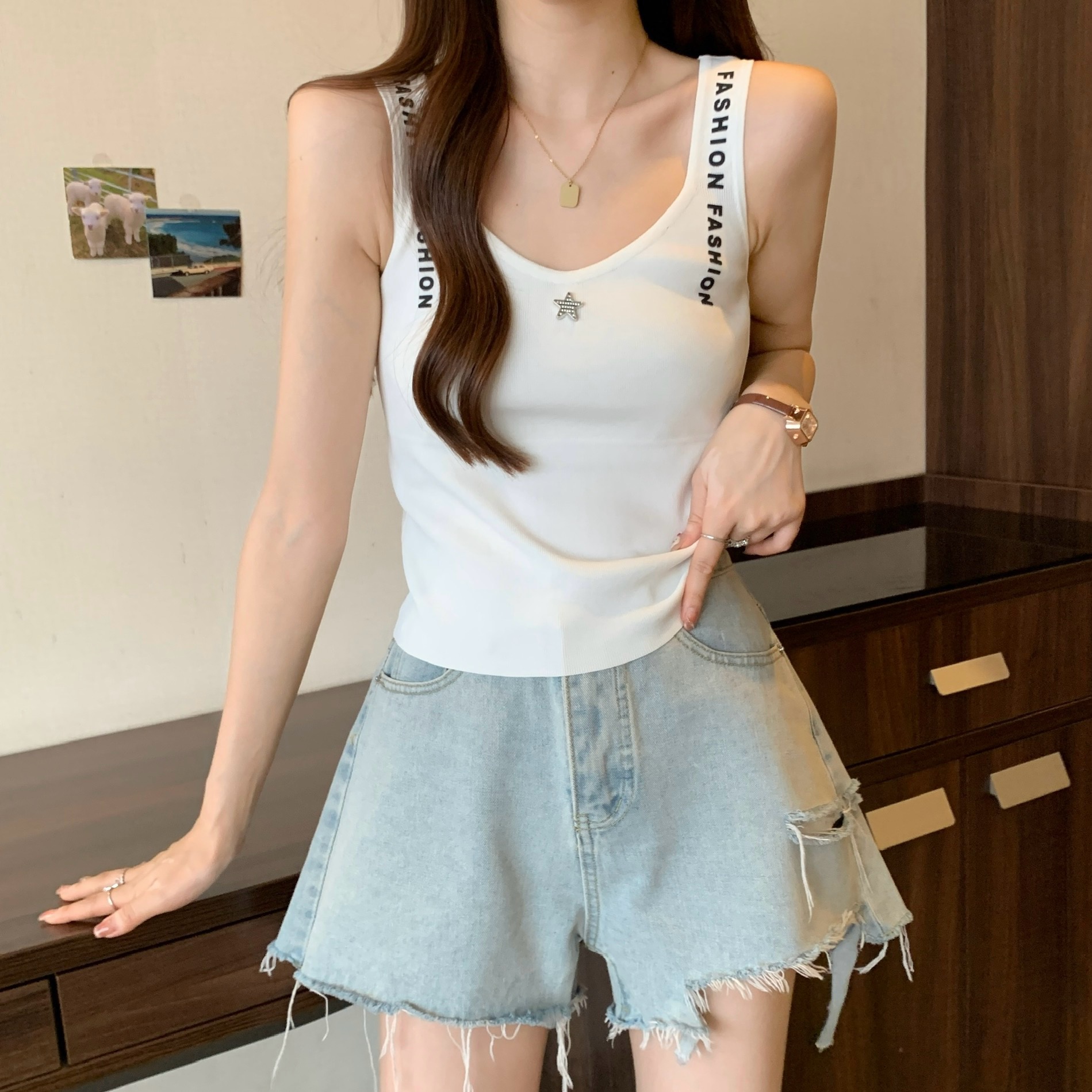 PF1810#大码胖mm字母背心内搭针织打底吊带女外穿2024春夏新款